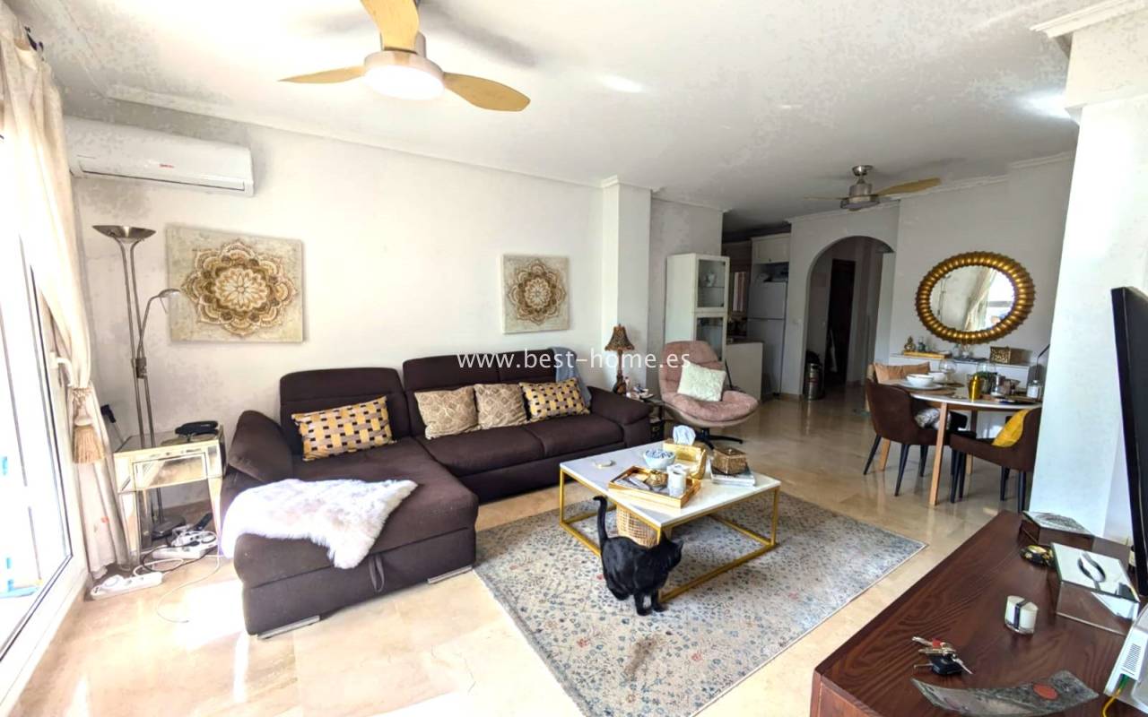 A spacious apartment for sale located in the attractive area of Playa Flamenca, within a very well-maintained residential complex featuring a large communal swimming pool for residents. The apartment offers a functional and comfortable layout consisting of two bedrooms and two bathrooms, one of which is an en-suite connected directly to the master bedroom. The property also features a spacious glazed balcony with the possibility of fully opening it, allowing it to be enjoyed both in winter and summer. The apartment was built to a good standard and includes double-glazed PVC windows, elegant marble floors, and a practical layout that ensures comfortable everyday living. Within a short distance from the property is one of the largest shopping centres in the Alicante region – La Zenia Boulevard – offering a wide selection of shops, restaurants, and entertainment. This is an excellent opportunity both as a holiday home and as an investment for rental in one of the most popular locations on the Costa Blanca. ????☀️????