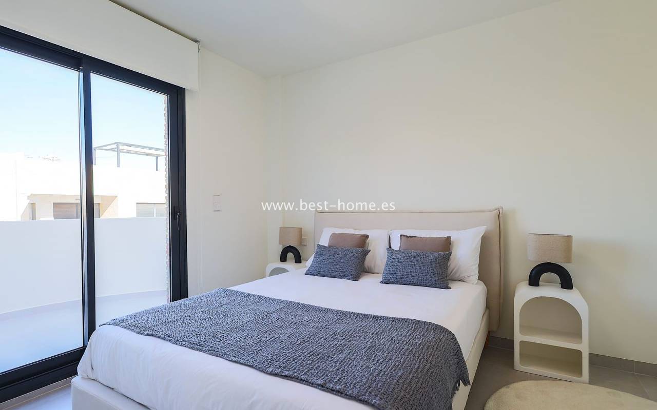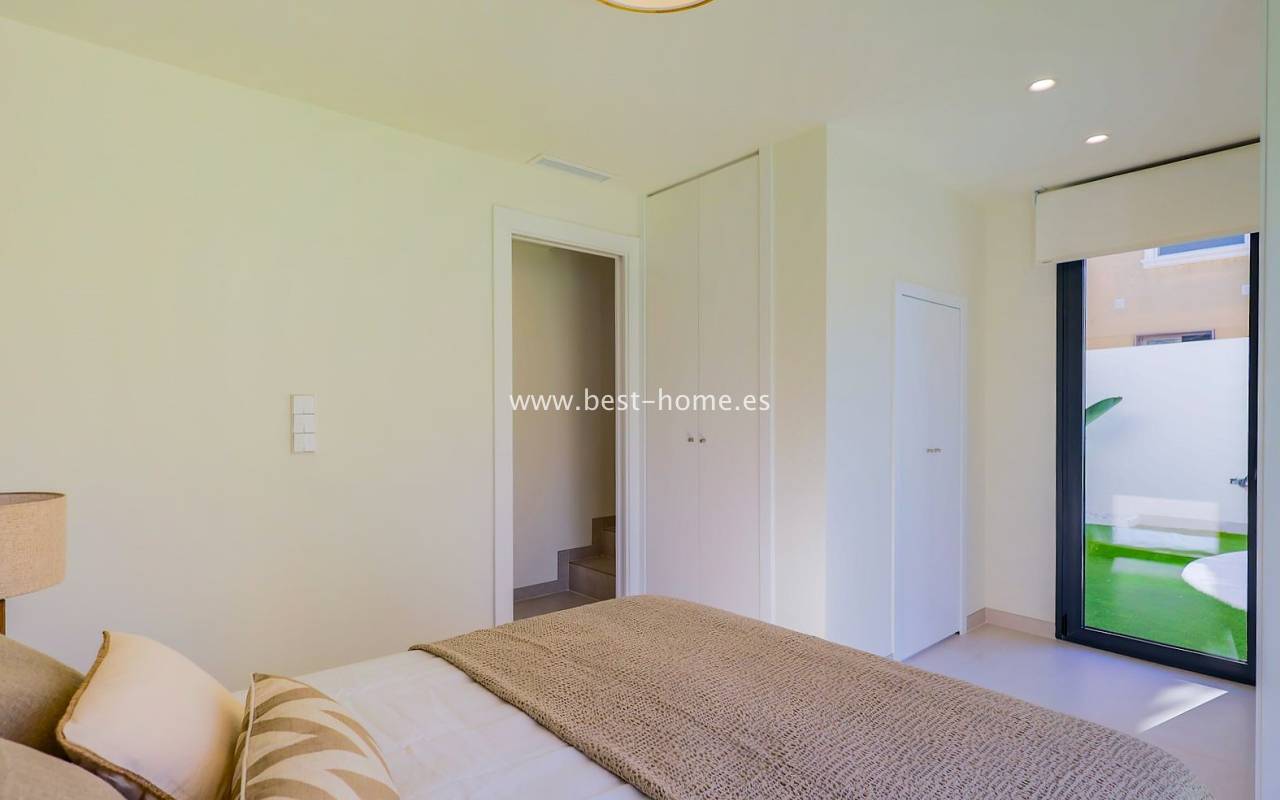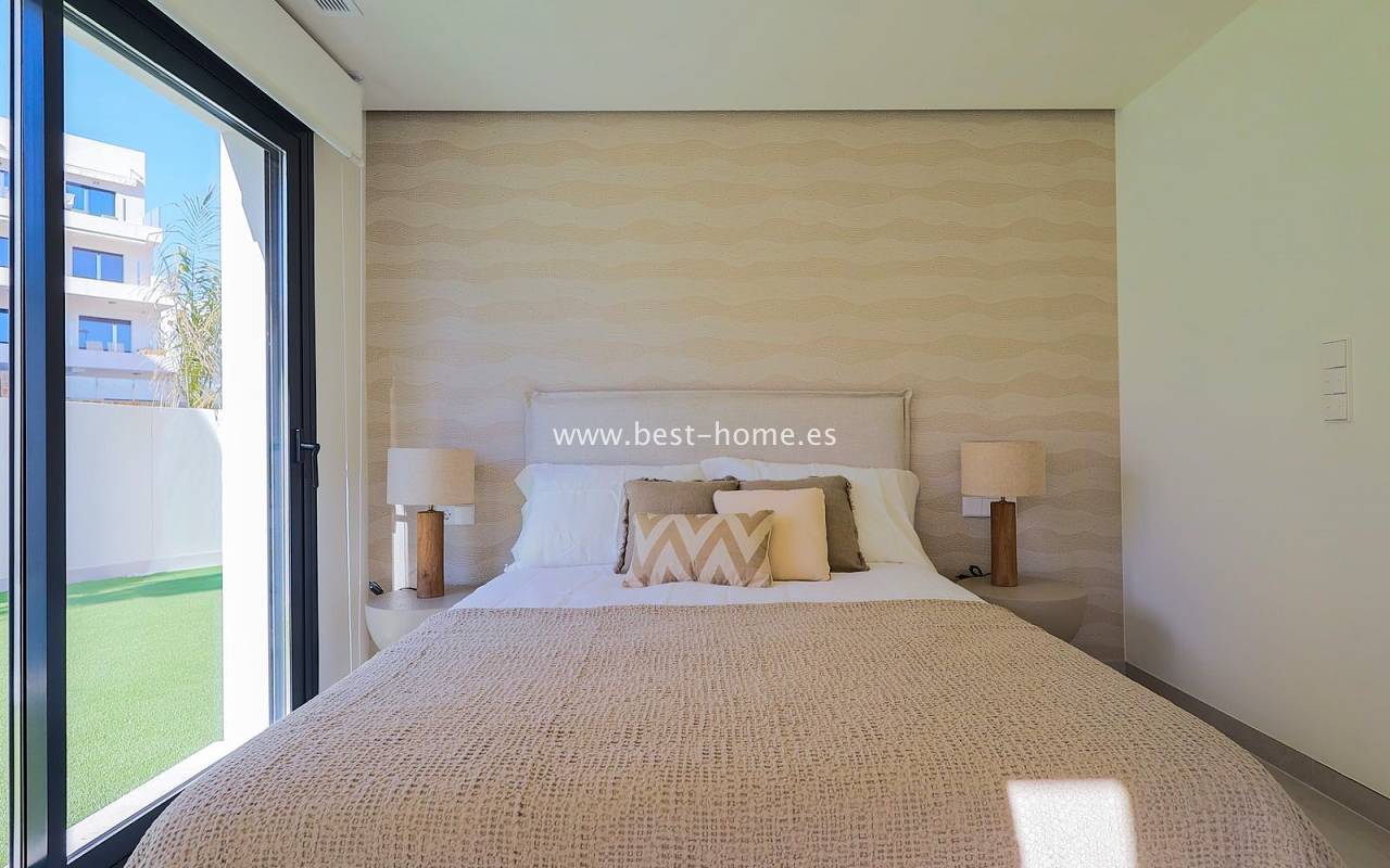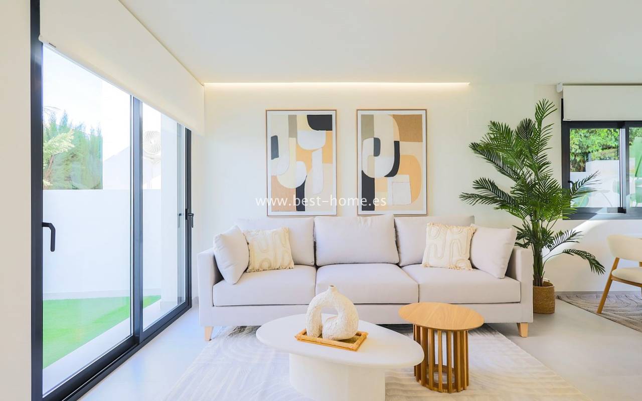 This renovated villa is located near the quiet Villamartin neighborhood. The property comprises three bedrooms, two bathrooms, and a furnished kitchen with a dining area and living room. The price includes furniture, appliances, central air conditioning, electric blinds, and a private pool.