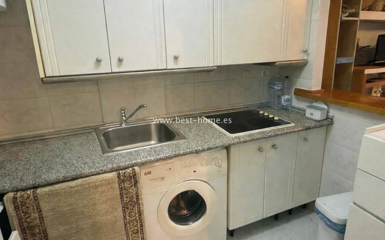 A cozy studio in one of the most desirable locations – La Mata in Torrevieja. It's an ideal option for both a vacation getaway and a secure rental investment. The property offers a 26 m² living area, a kitchen, a bathroom, and an 8 m² terrace, where you can enjoy the sun and the Mediterranean climate every day. The apartment has been preserved in its original condition, giving you complete freedom to arrange it to create exactly the space you desire. Residents have access to two well-maintained swimming pools surrounded by greenery, ensuring relaxation and respite even on the hottest days. The location is a real advantage of this offer; just a few minutes' walk away are wide, sandy beaches. In the immediate vicinity, you'll find everything you need: shops, restaurants, a clinic, and atmospheric places where you can sample local specialties. This is the perfect place to enjoy the Spanish lifestyle – sun, sea, and complete comfort at your fingertips.