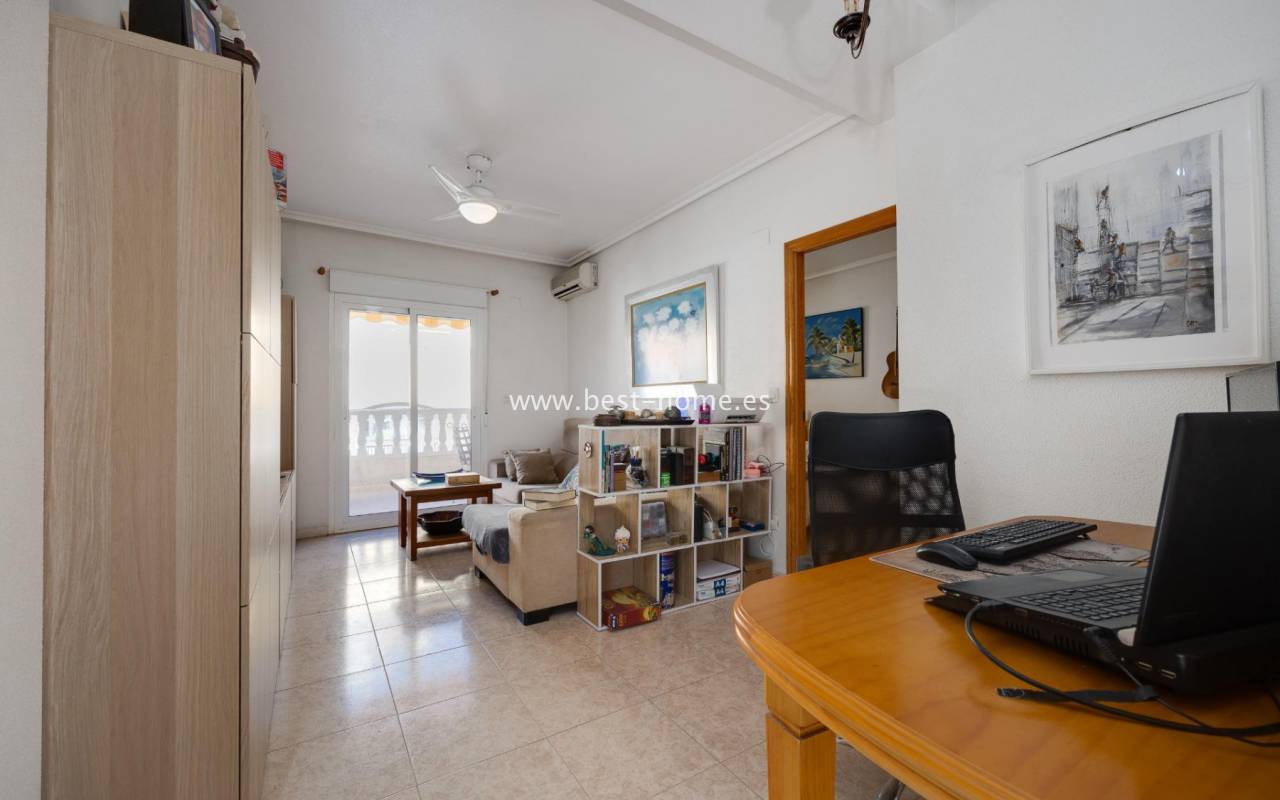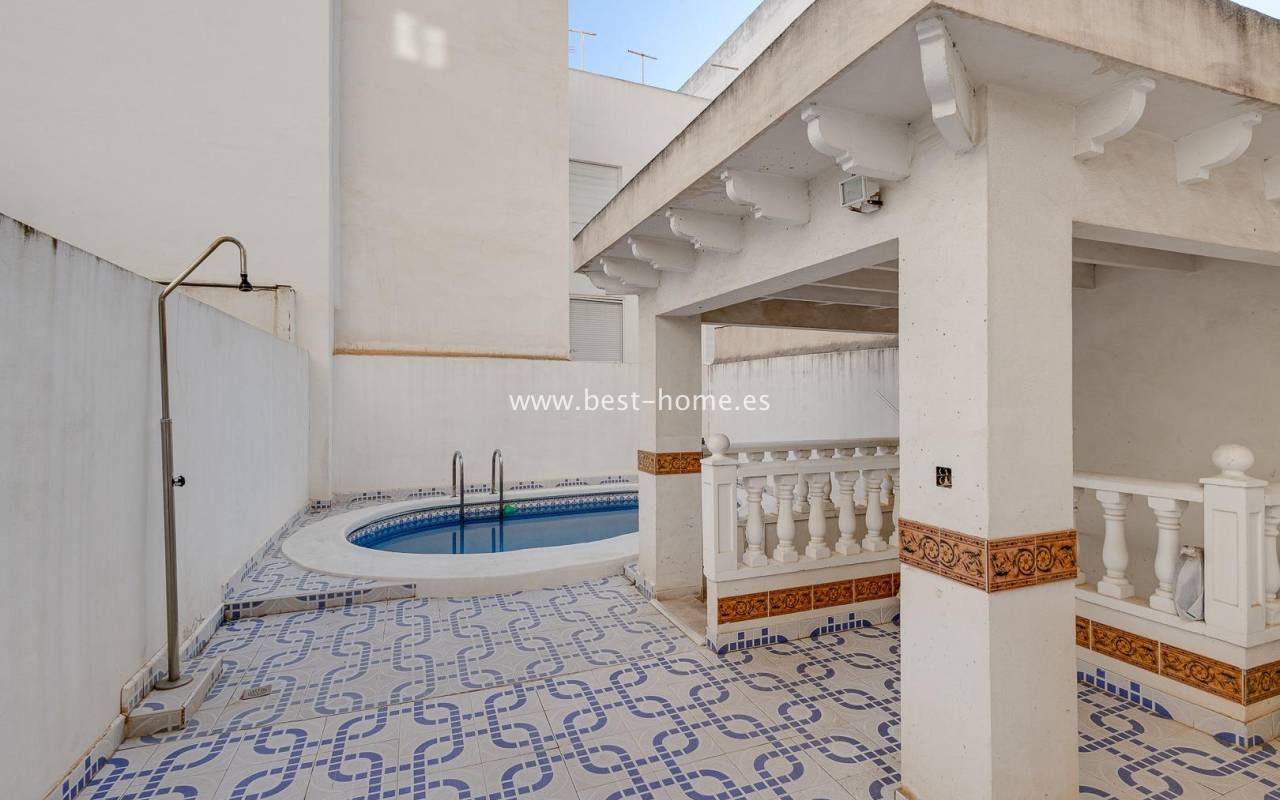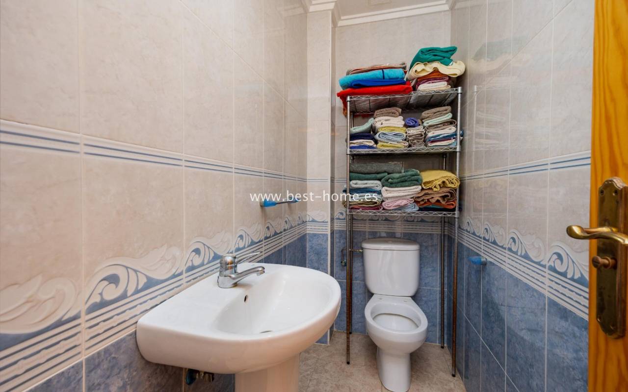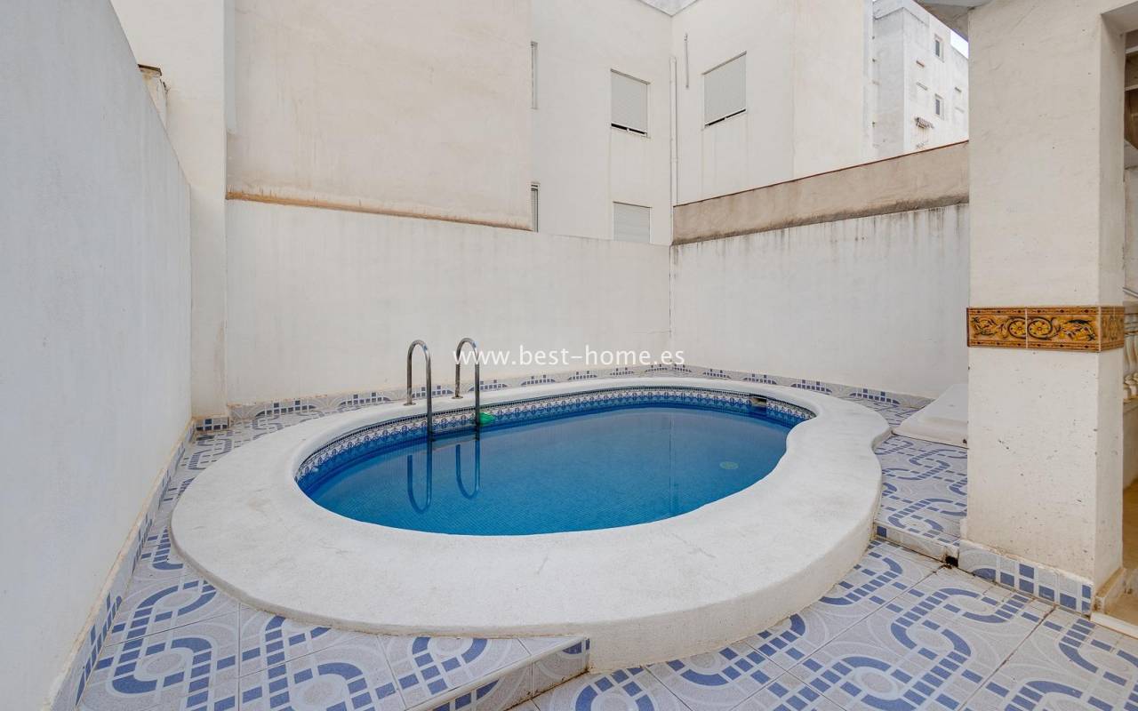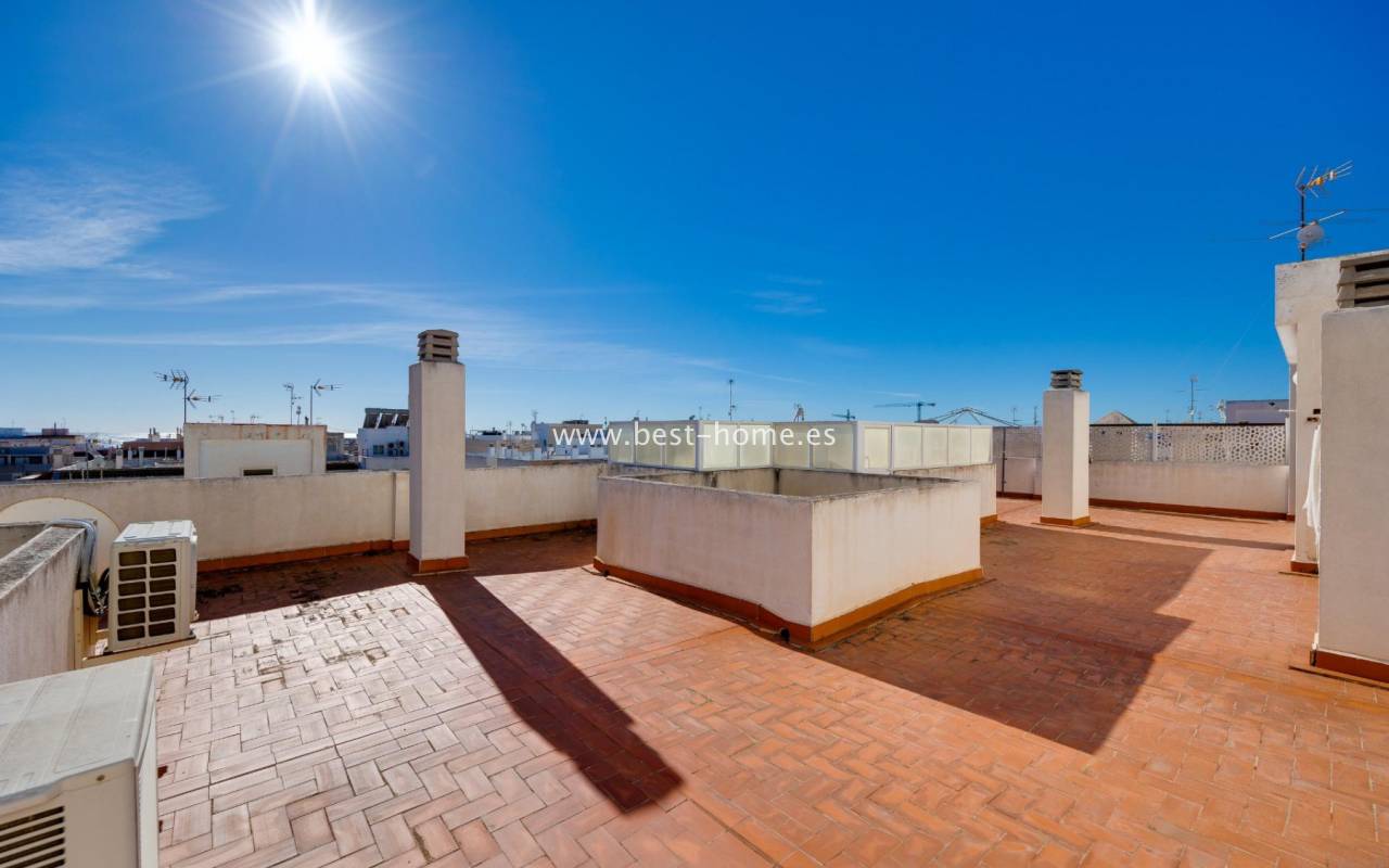 A unique, bright penthouse apartment located in the Playa del Cura area, which impresses with its functional layout and comfort. The 65 m² property offers two cosy bedrooms, a spacious living-dining room flooded with natural light, and a separate, fully equipped kitchen. Residents also have access to a modern bathroom and an additional toilet, which significantly enhances the convenience of daily life. The flat features two terraces, one of which is ideal for sunbathing. The main terrace measures approximately 15 m², whilst the second, facing south, offers an additional 4 m² of space for relaxing outdoors. A major highlight is the 26 m² private solarium, which is the perfect place to spend time with family and friends. The building also features a communal swimming pool, ideal for hot days.