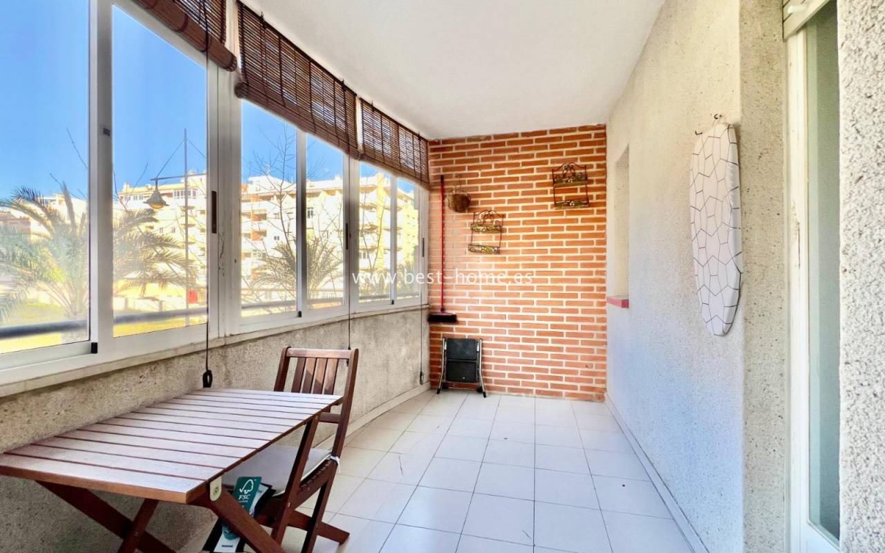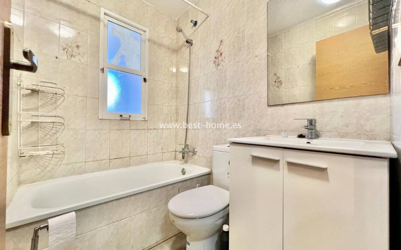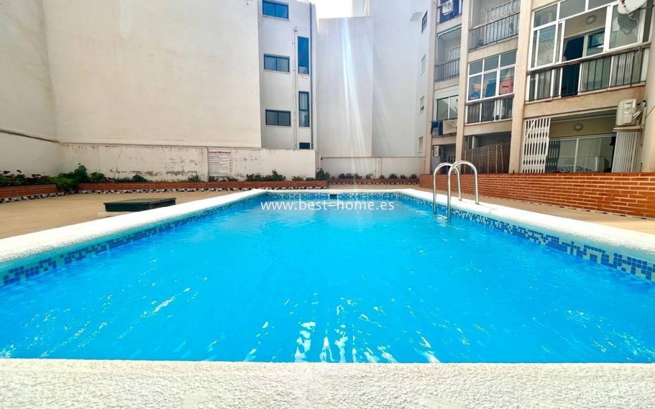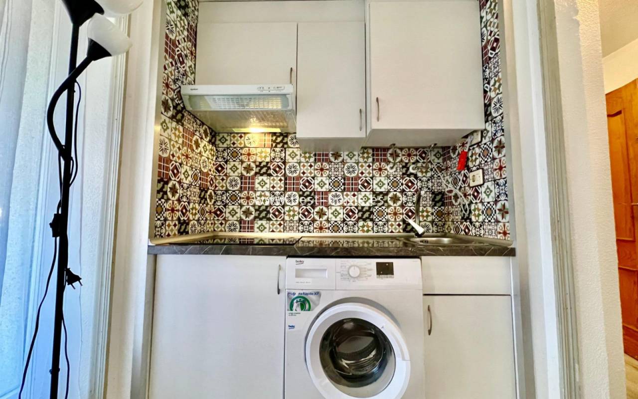 A unique, charming studio in the heart of the bustling Habaneras Avenue in Torrevieja. The property is in excellent condition and is ready to move into immediately, with no further work required. The north-facing aspect ensures a pleasant coolness on hot days, whilst guaranteeing bright, comfortable interiors and relaxing views of the surrounding greenery. The greatest asset of this flat is its location. It features a living room opening onto a terrace, a small kitchen and a bathroom. The property is just 390 metres from the Mediterranean Sea, with its beautiful golden sand and picturesque promenade stretching along the coast. What’s more, everything is close at hand: shops, schools, public transport and shopping centres. Residents also have access to a communal swimming pool, the perfect place to relax, sunbathe and socialise in a pleasant atmosphere. It is an excellent option both as a rental investment and as a holiday home or a cosy place to live all year round.