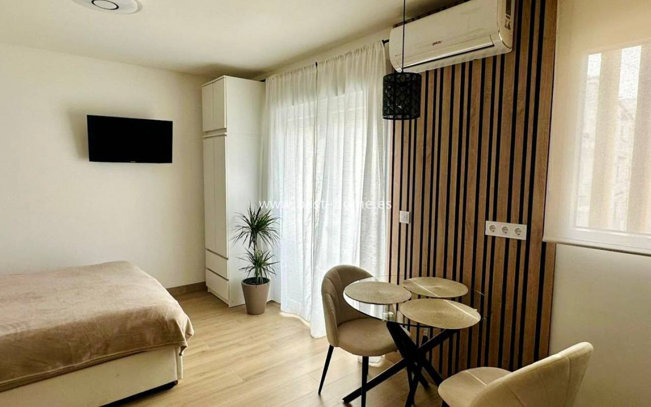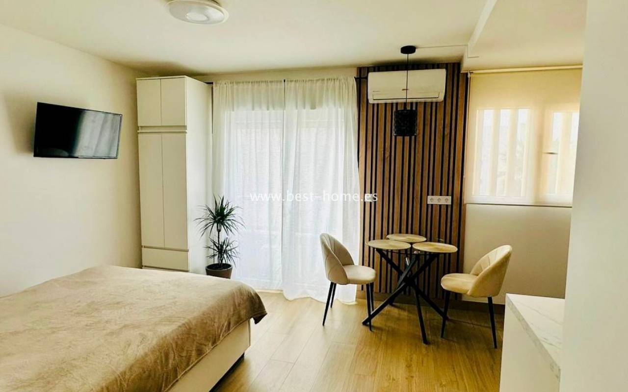 The property is situated in an exceptionally attractive location, right next to the promenade, which is perfect for evening strolls, outdoor activities or simply relaxing to the soothing sound of the sea. Importantly, the area has significant development potential. Plans are in place to modernise the promenade and the beach in front of the complex, which will undoubtedly further enhance the prestige and value of this property. The balcony is the perfect spot to enjoy the Mediterranean climate and the sea breeze, whether over a morning coffee or whilst relaxing in the evening. The interior offers a fully refurbished space, designed with comfort and functionality in mind. The property is sold fully equipped and furnished, allowing you to move in immediately without any additional outlay. Air conditioning is also available, ensuring comfort all year round. The well-thought-out layout and fresh finish create a welcoming, contemporary atmosphere, ideal both for permanent residence and as a holiday home. The balcony, air conditioning and the fact that it is ready to move into are the undoubted advantages of this property.
