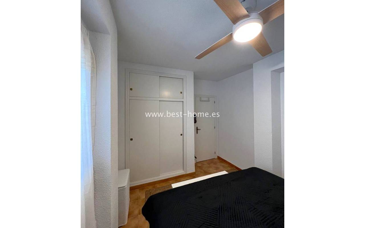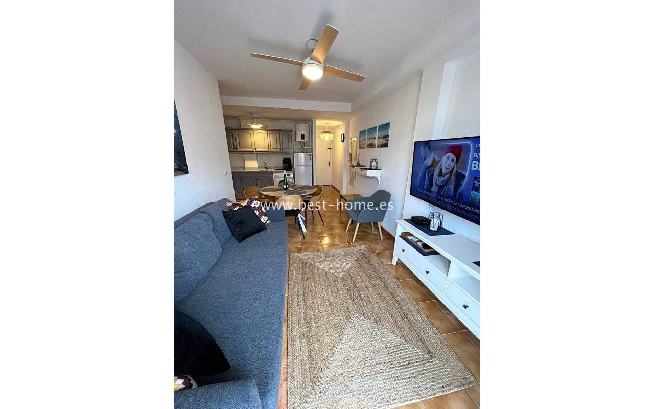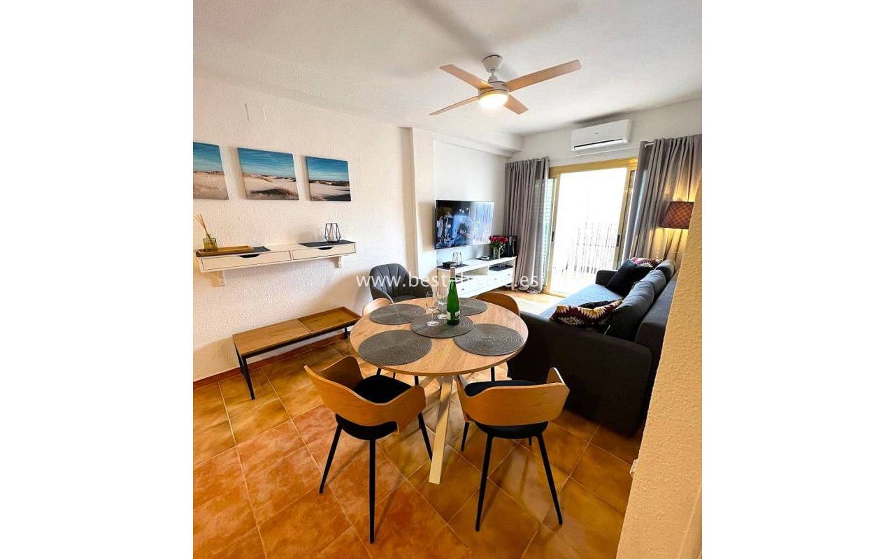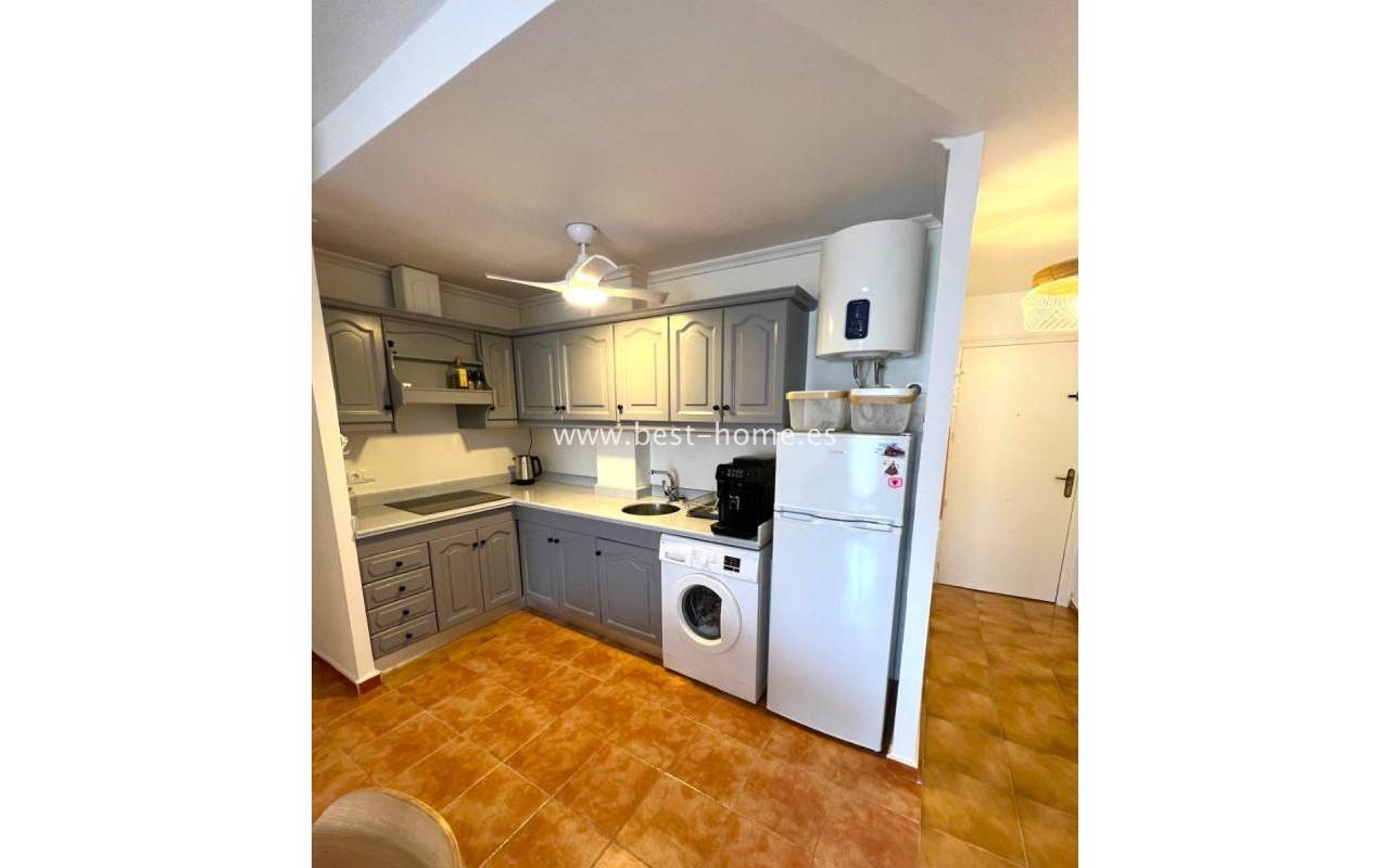 This attractive apartment is located in a charming Spanish development in Santa Pola. The property is on the second floor and comprises a fitted kitchen, one bedroom with a built-in wardrobe, a renovated bathroom, and a spacious living room with a dining area. The living room opens onto a sunny terrace. The apartment is well-maintained and furnished, and is equipped with ceiling fans and air conditioning. It also has a new electrical system. The development also boasts a communal swimming pool and tennis court.