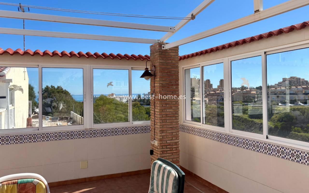 The property offers panoramic views of the Mediterranean Sea and is 800 meters from La Mata beach.