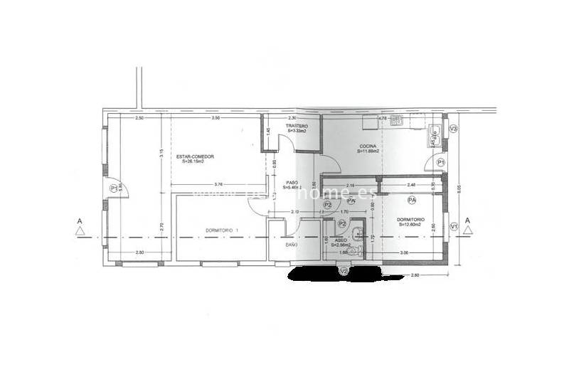 The single-level home has 80 m² of living space, including a spacious, fully equipped living-dining room, a separate kitchen, two large bedrooms, and two bathrooms. All rooms are exterior-facing, ensuring good ventilation and natural light.