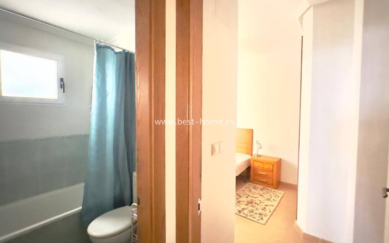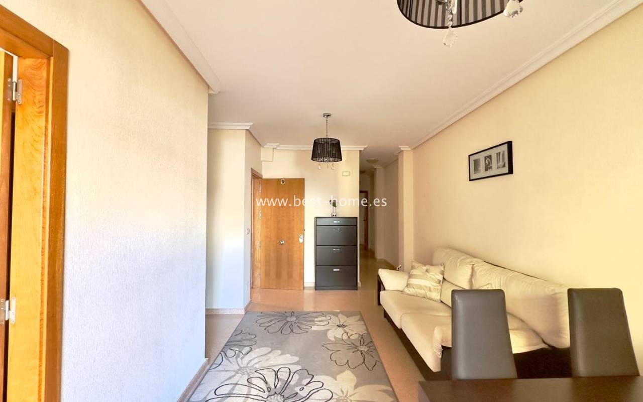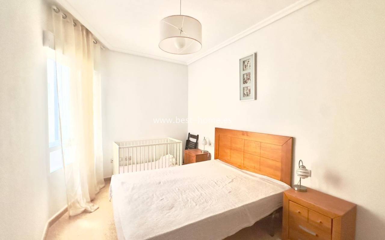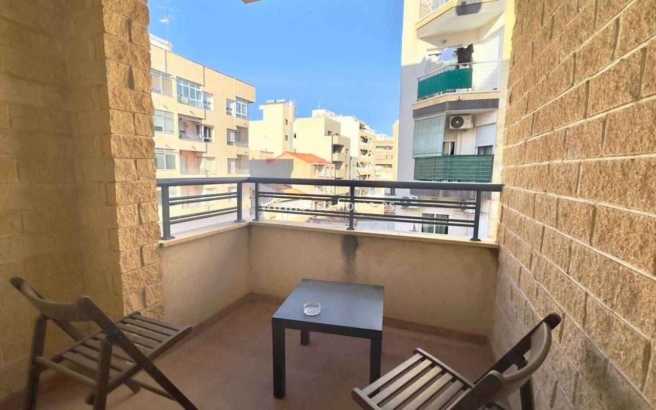 The apartment is on the second floor and consists of two bedrooms, a bathroom, a separate kitchen with a utility room, and a living room with a dining area and access to the terrace. The price includes furniture, appliances, and air conditioning. The city center is just 500 meters away.