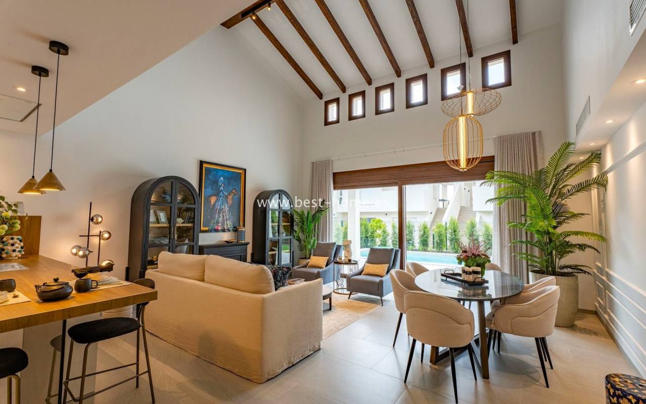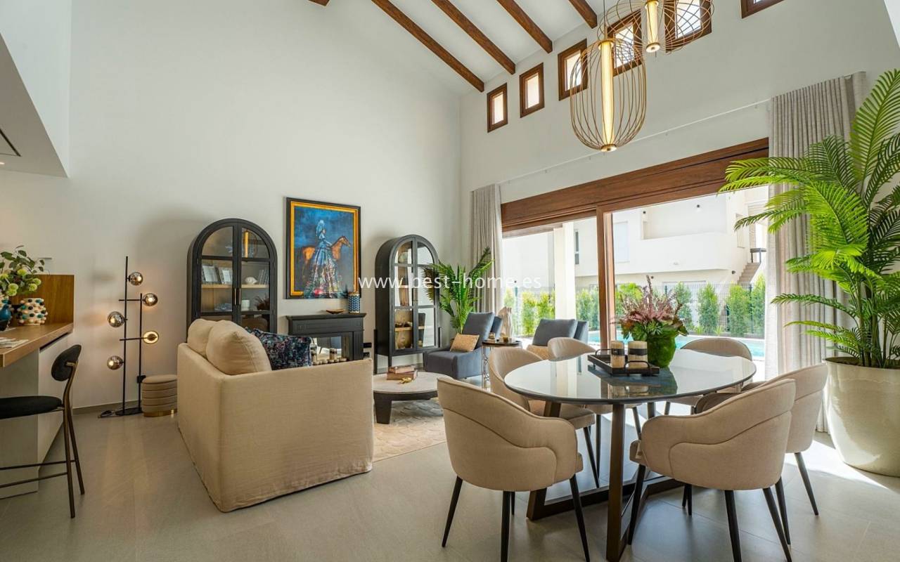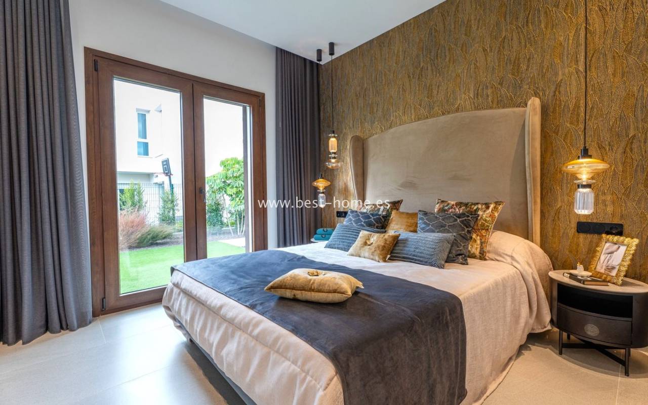This new, finished, fantastic villa is located in a prestigious location on the La Finca golf course. It comprises three bedrooms, two bathrooms, a fitted kitchen with a bar, a laundry room, and a magnificent, high-ceilinged living room with dining area. The master bedroom and living room open onto a terrace and private pool. The price includes a fitted kitchen, fully equipped bathrooms with underfloor heating, central hot/cold air conditioning, a landscaped garden, a parking space, and a private pool. The photos are of a show home. The property is sold unfurnished.