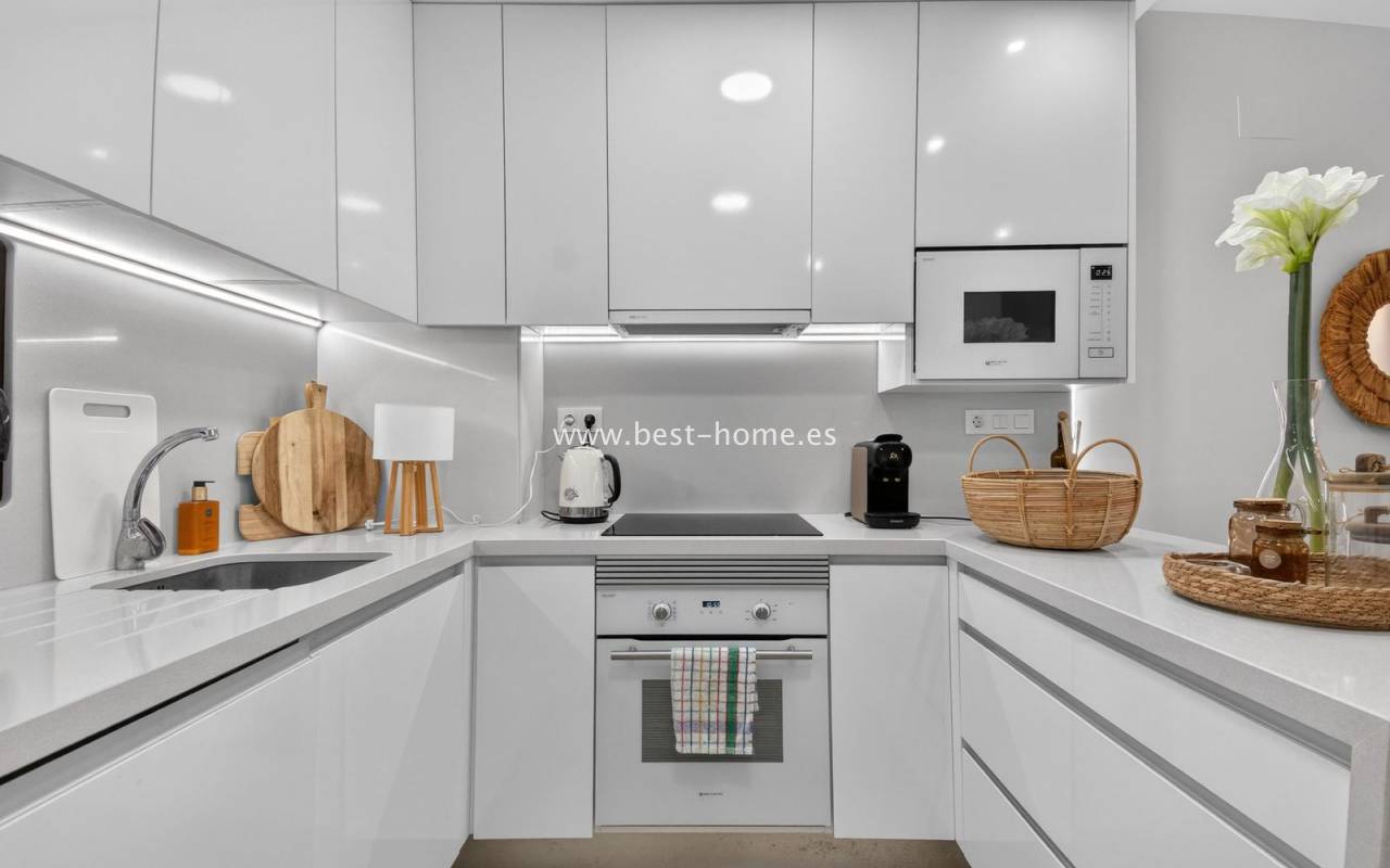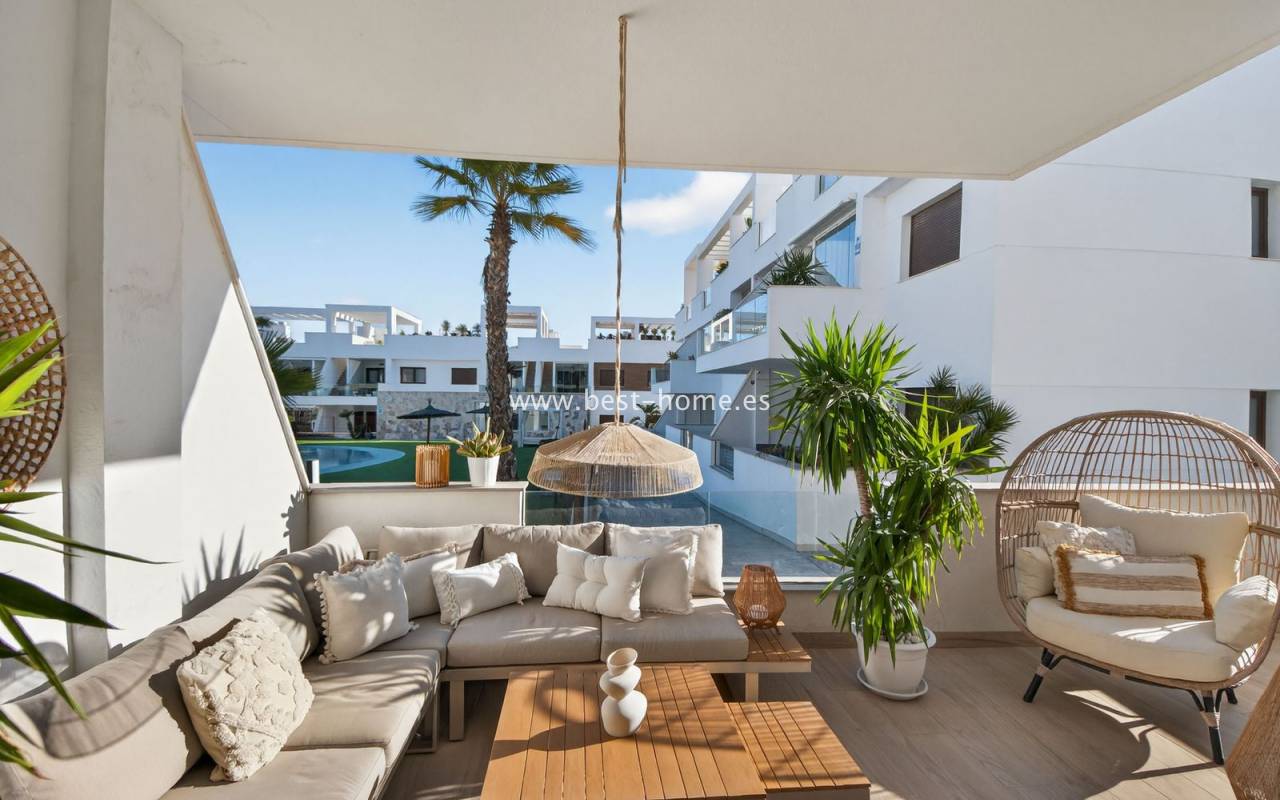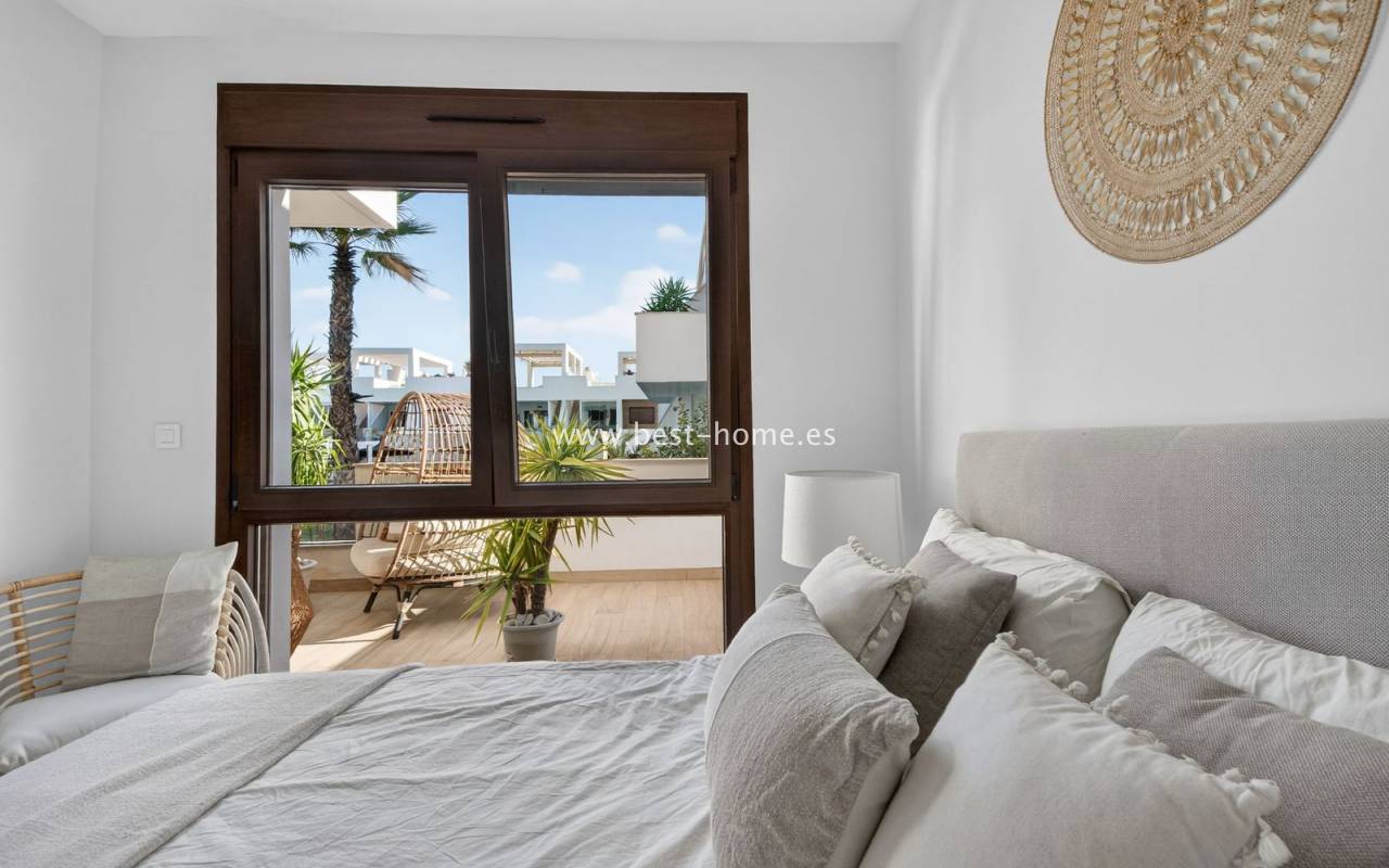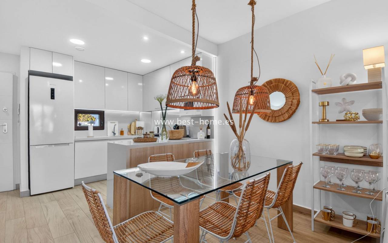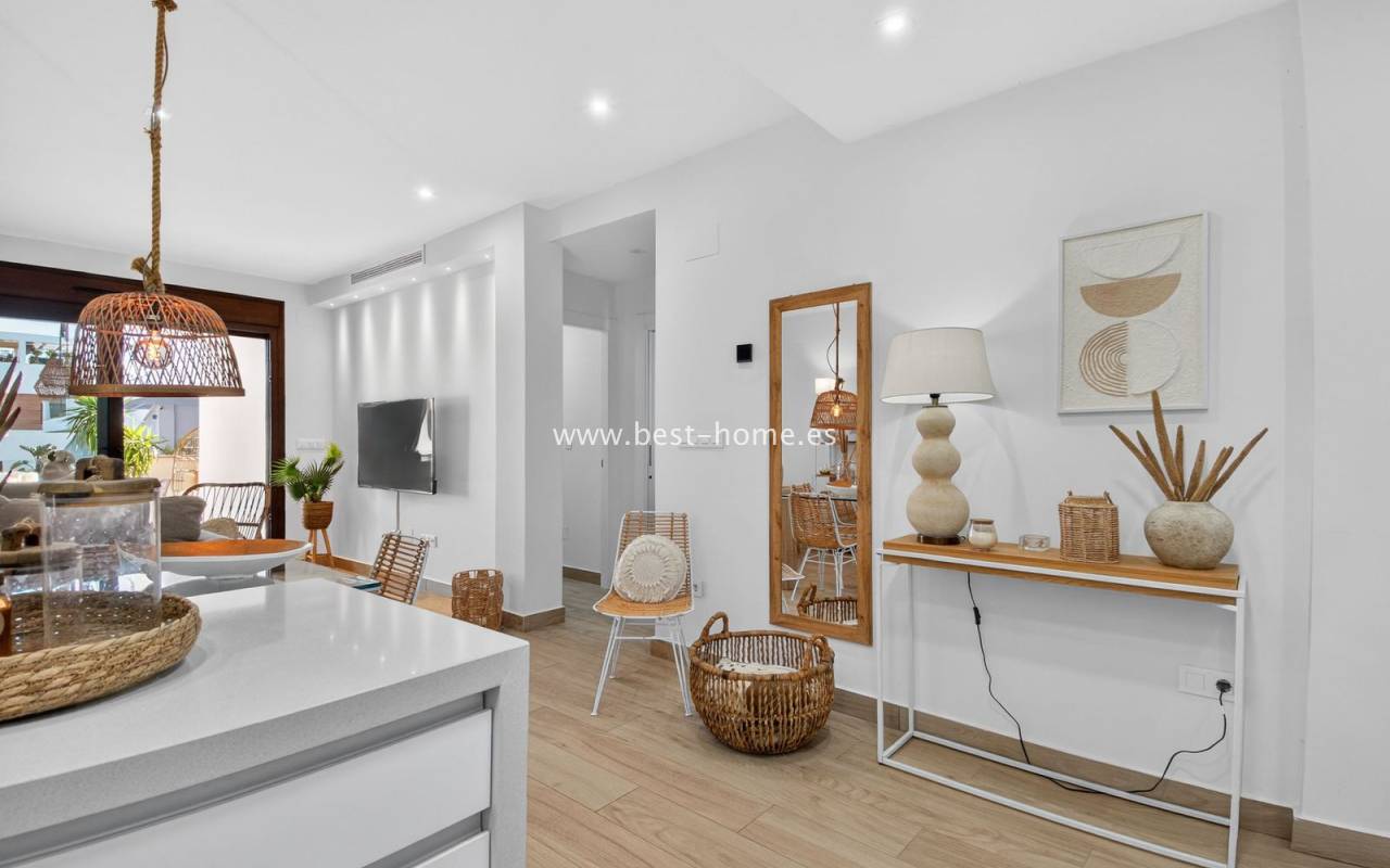 The location is highly convenient, with a small shopping center nearby. Within walking distance, you will find supermarkets, cafés, restaurants, and a bus stop providing easy access to the center of Torrevieja.