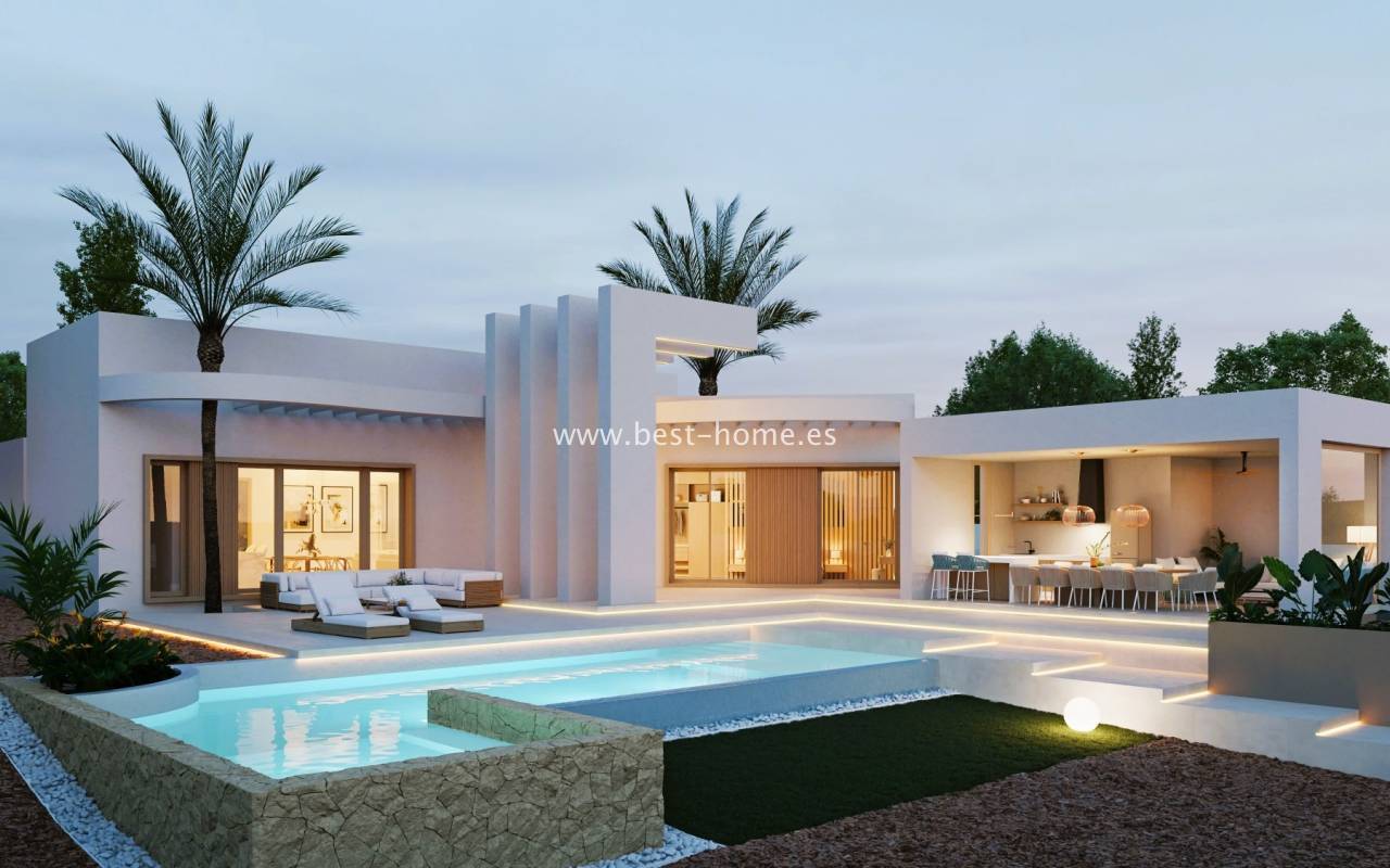 This fantastic property is being built next to the La Finca golf course. The ground floor will feature a master bedroom with a dressing room and en-suite bathroom (35 m²), three further bedrooms with fitted wardrobes, two bathrooms, a toilet, and a stunning entrance hall connected to a high, bright living room, dining room, and fitted kitchen with a utility room. A waterfall will be built between the living room and the master bedroom. A basement can be built, which will house a two-car garage, gym, wine cellar, and a fifth bedroom. The 10,000 m² property features a fantastic swimming pool with a jacuzzi (4 x 9 m), a summer kitchen with a bathroom, and a large garden with an orange orchard. The highest quality finishes include central hot/cold air conditioning, complete bathrooms, electric blinds, a Domotica system, a summer kitchen, a private pool, a finished garden, and much more. The area is full of restaurants, bars, supermarkets, and three 18-hole golf courses. The villa is under construction and will be ready by the end of the summer of 2026.