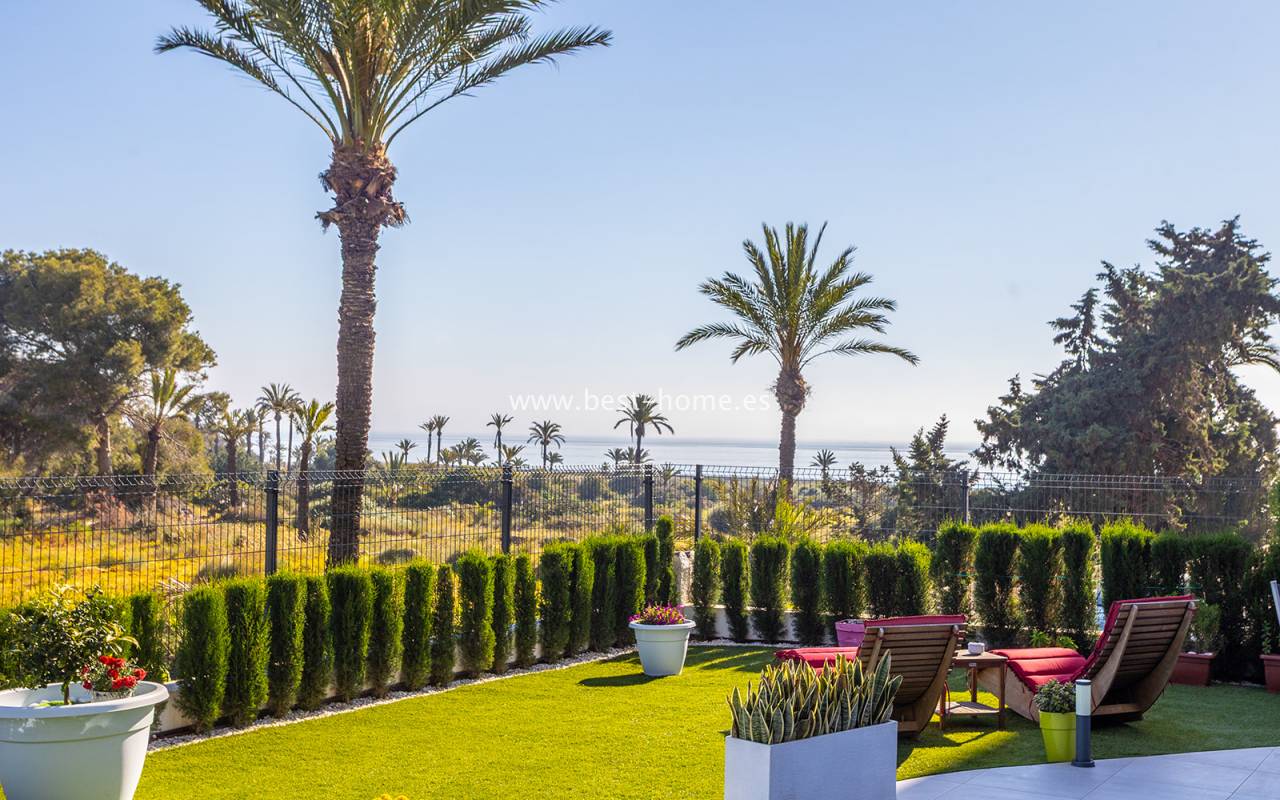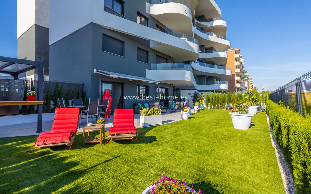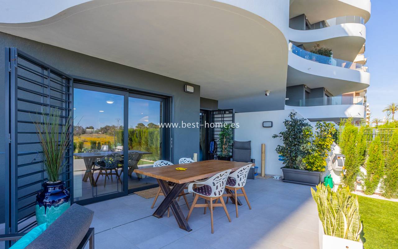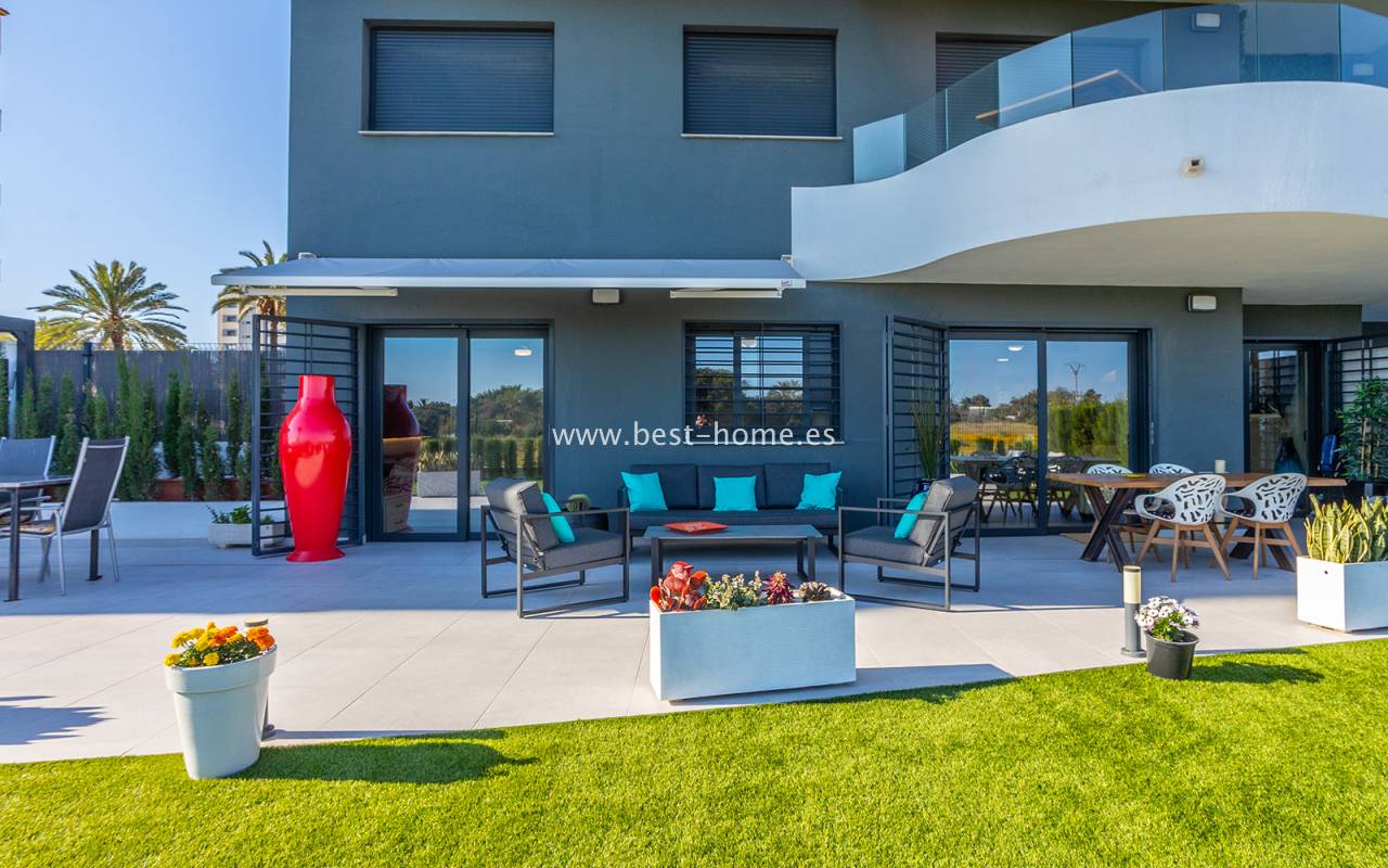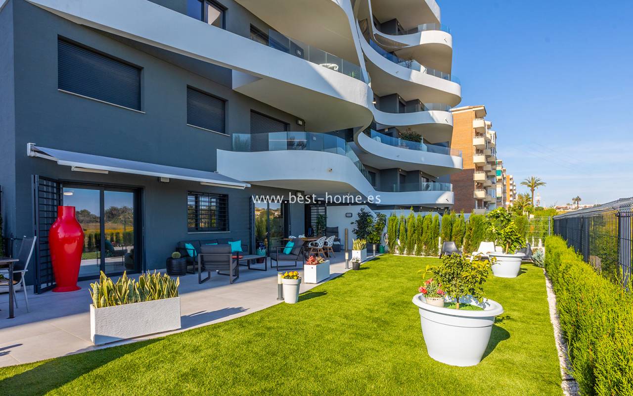 Modern ground floor apartment with private garden and sea views – exclusive gated community with infinity pool
