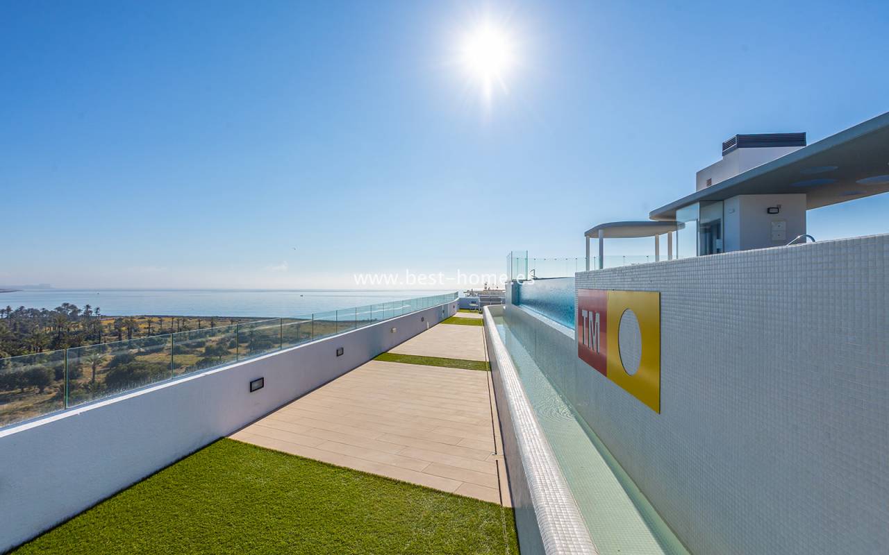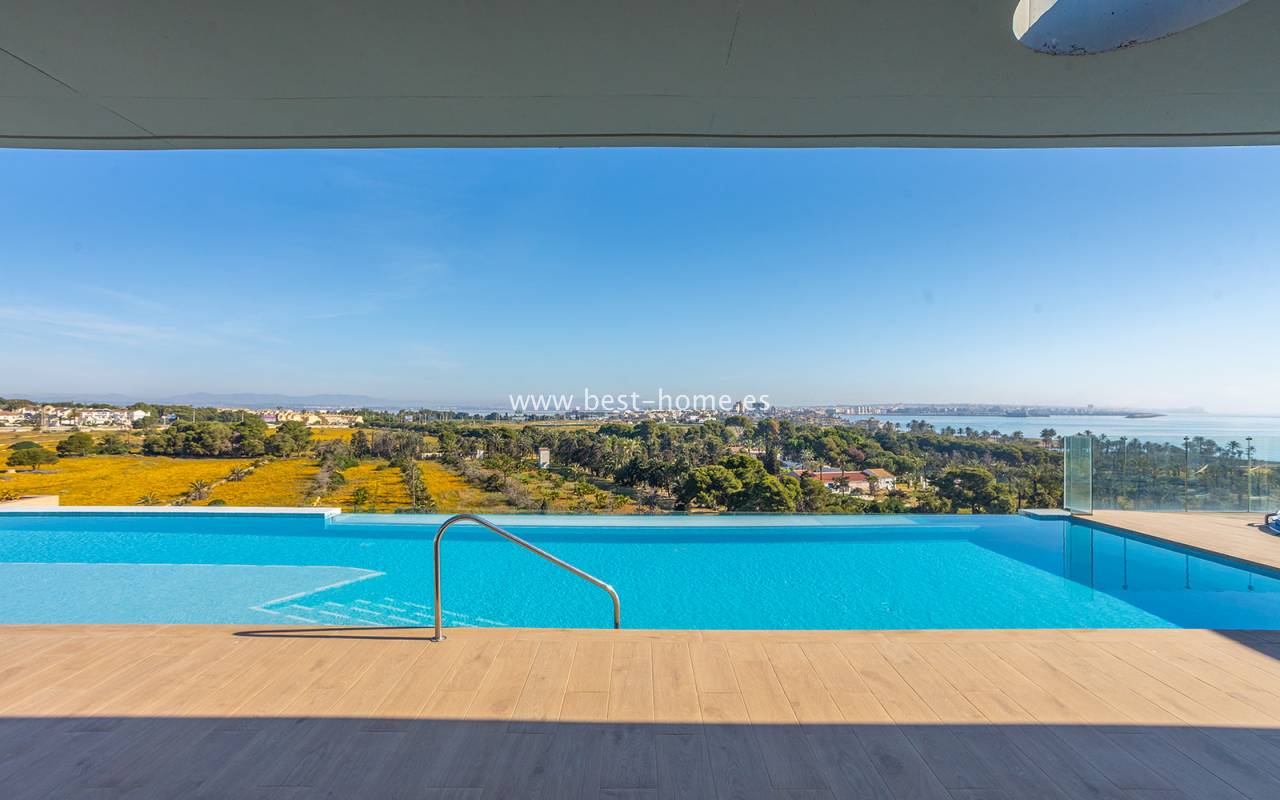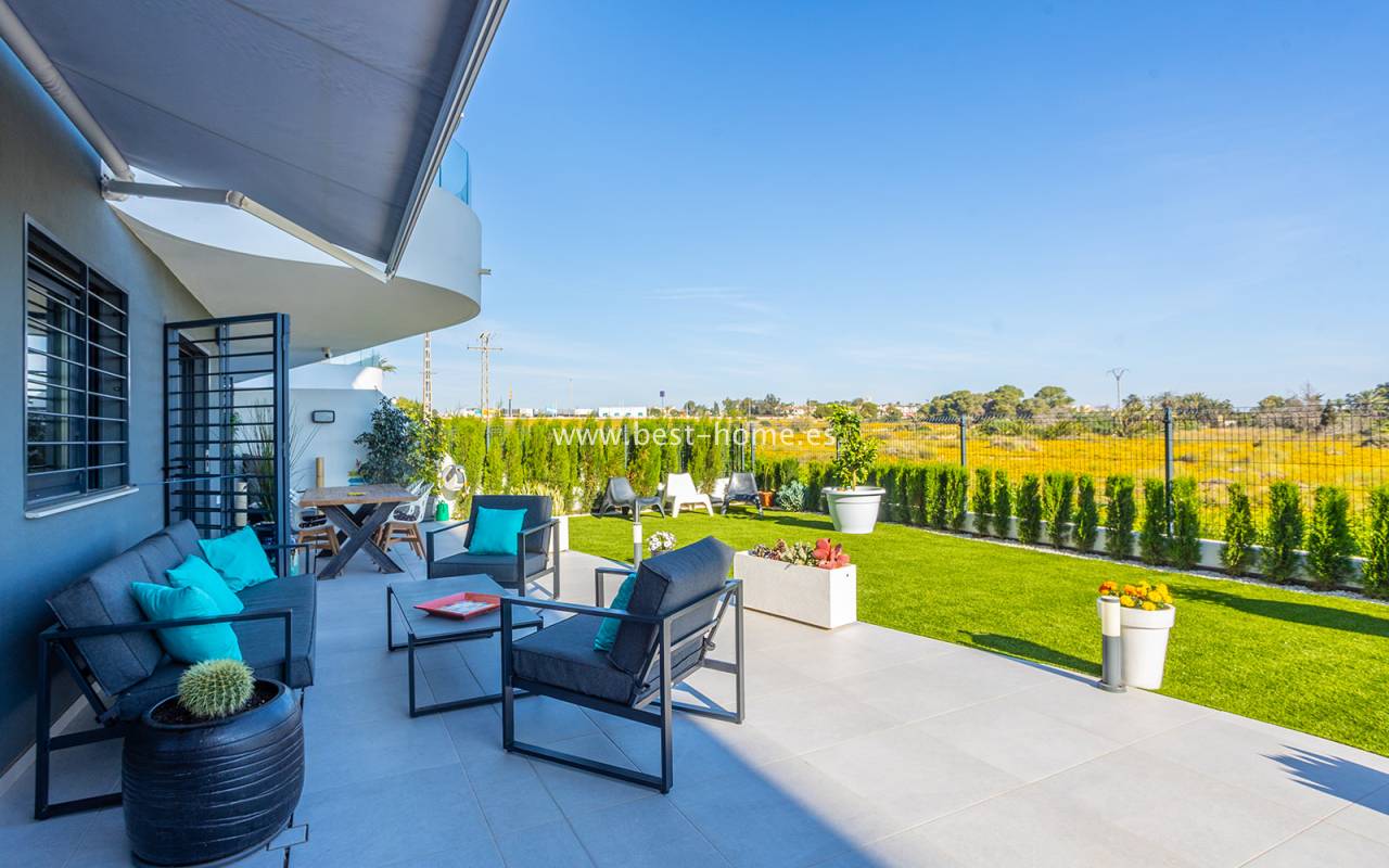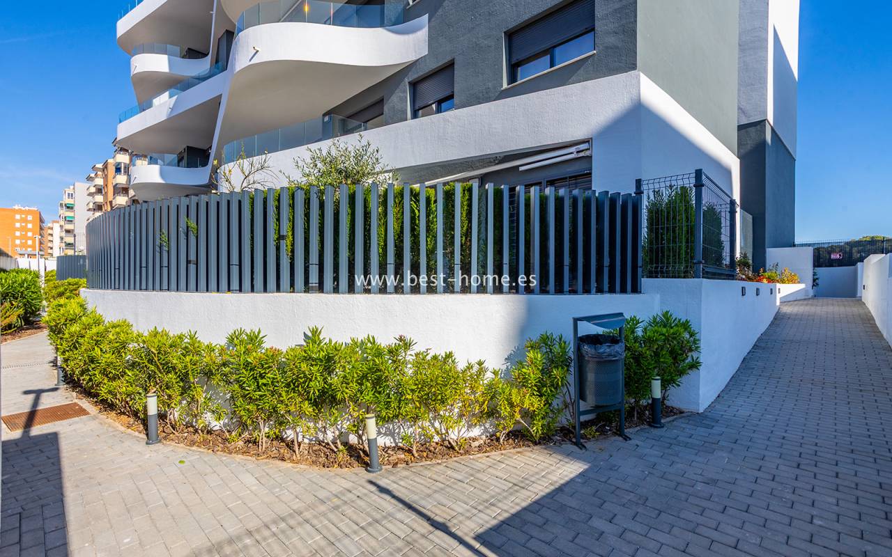 Modern ground floor apartment with private garden and sea views – exclusive gated community with infinity pool