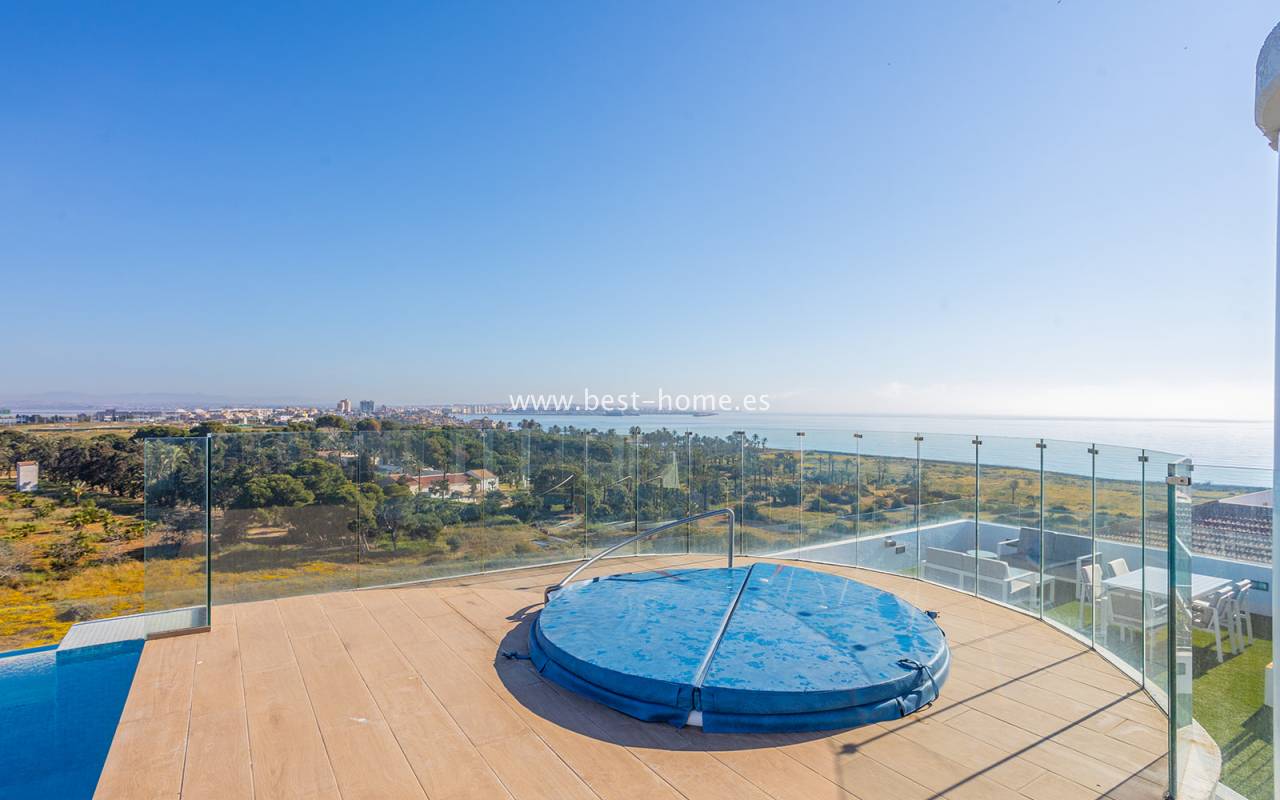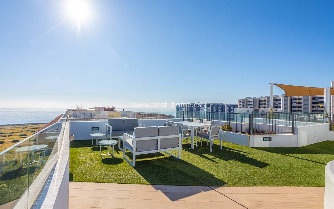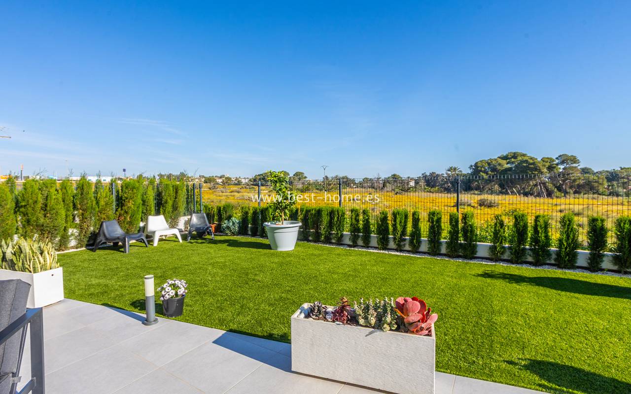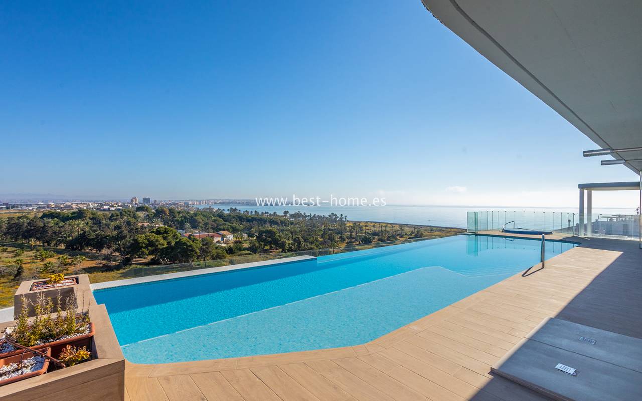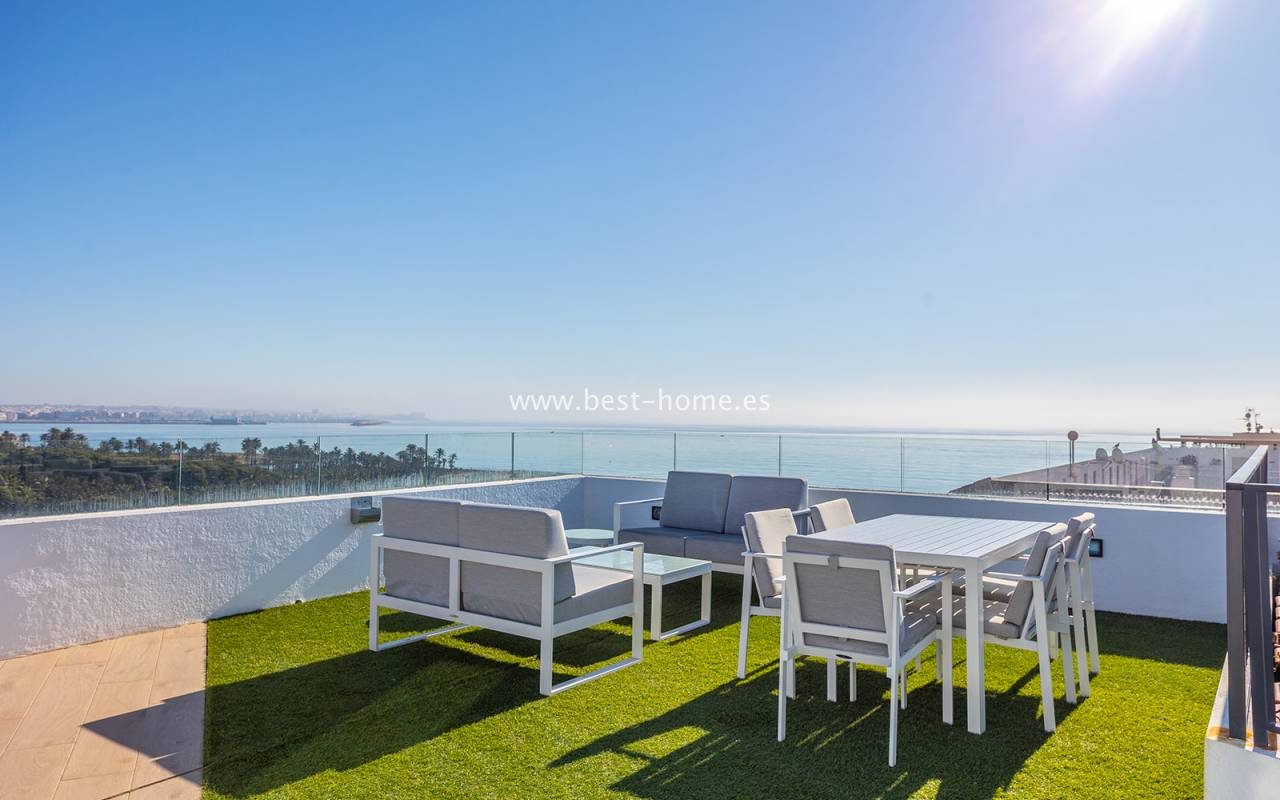 Modern ground floor apartment with private garden and sea views – exclusive gated community with infinity pool
