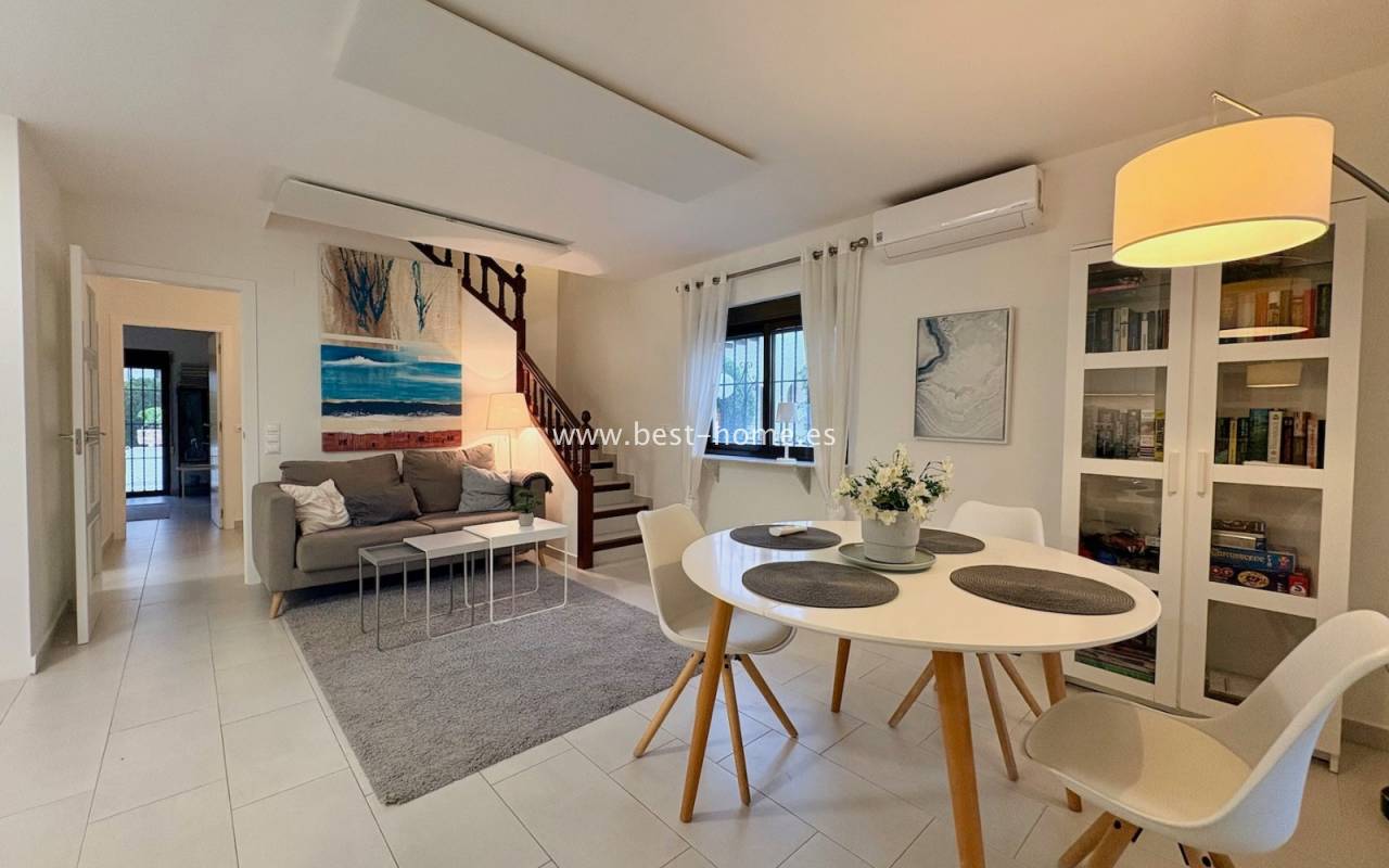 Corner duplex (chalet) located in the Cala del Capitán urbanization in Cabo Roig (Orihuela Costa), just a short walk from the beach. The property offers 4 bedrooms and 2 bathrooms spread over two levels. It includes a private garden and access to a communal swimming pool. The house is sold fully furnished, with a fitted kitchen and air conditioning. Suitable for permanent living or as a holiday home.