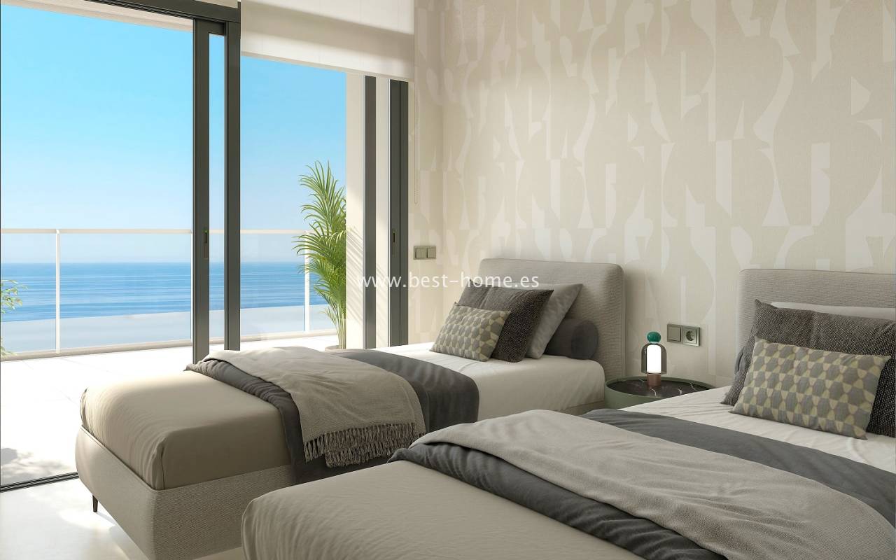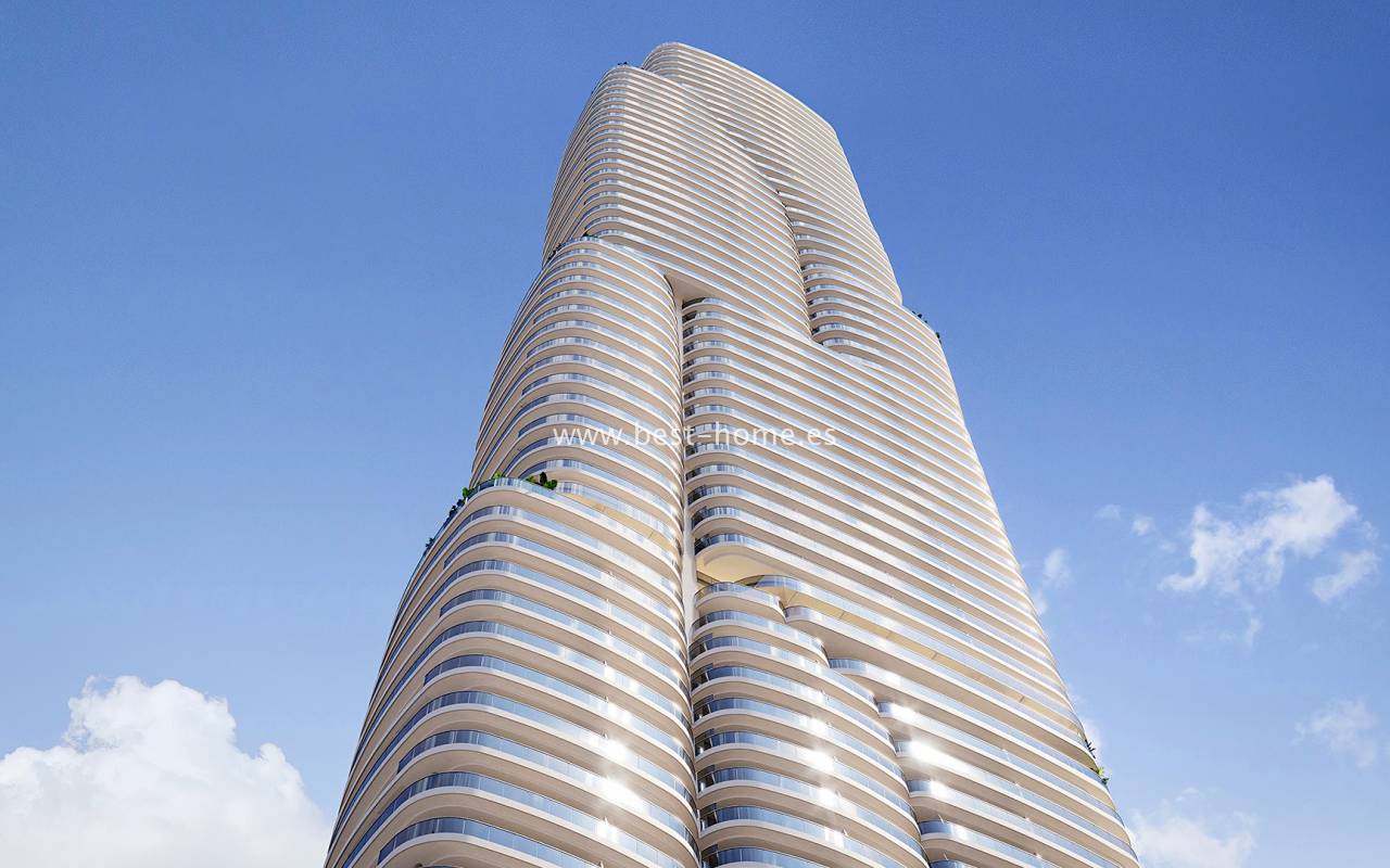 We are pleased to present a modern, unique apartment building located just 100 meters from the wide, sandy Poniente Beach in Benidorm. This residential complex boasts a tower complemented by spectacular communal areas, befitting a luxury resort. The building's appearance imitates a rock rising above the sea, designed to make you feel like you're part of it at all times.