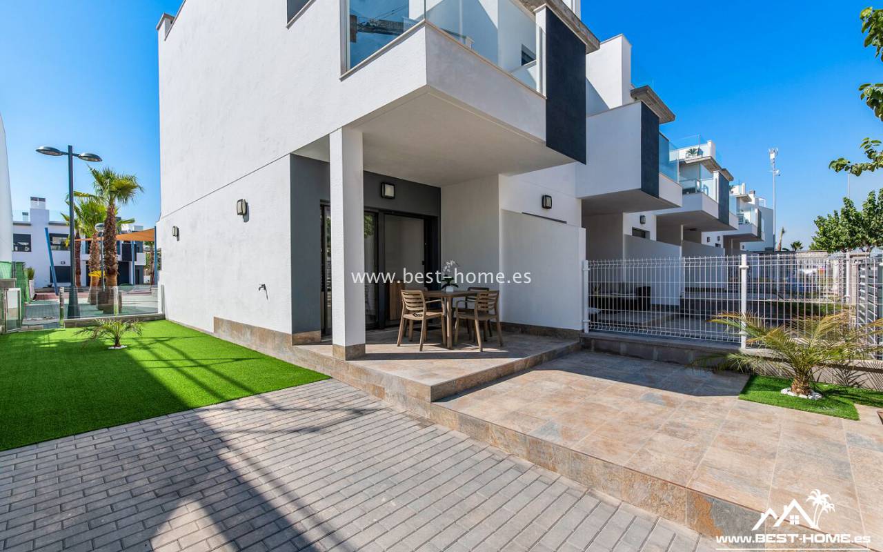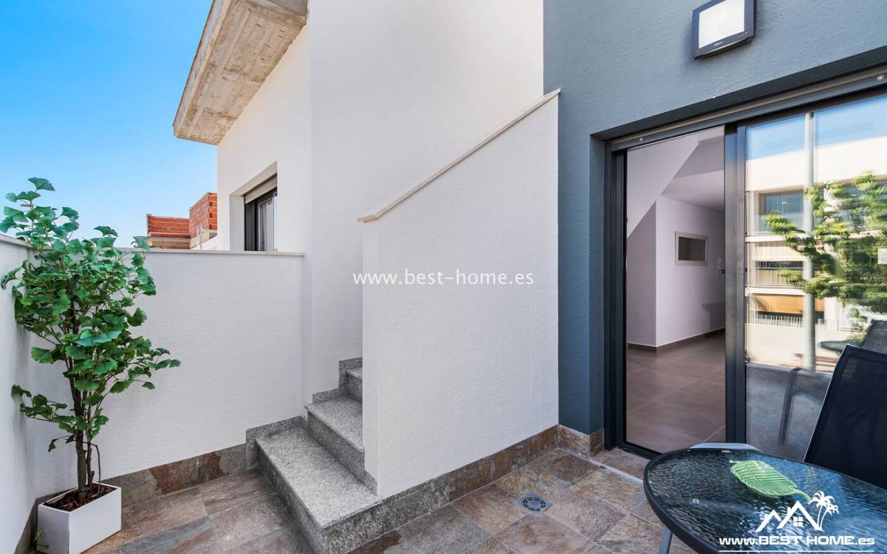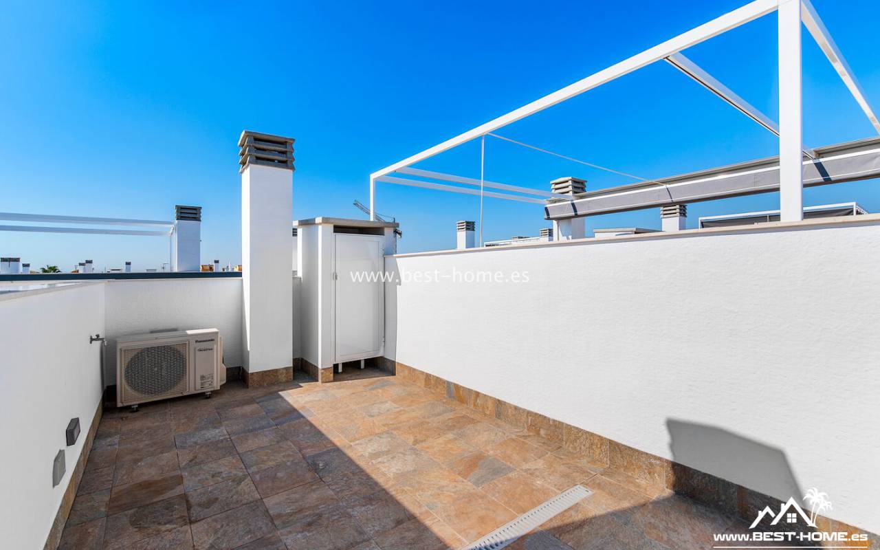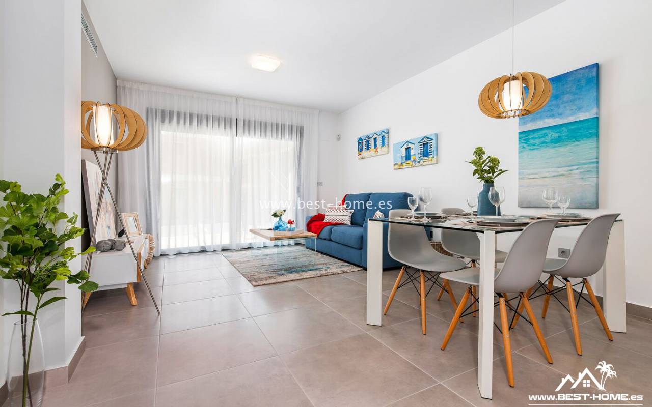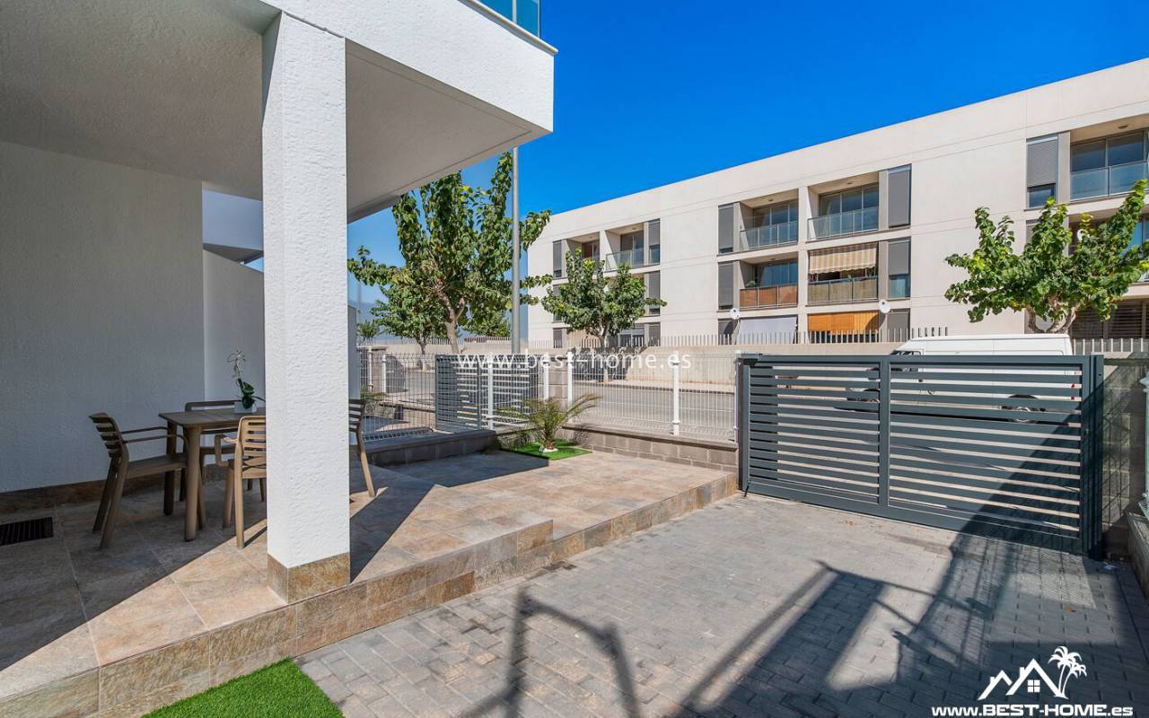 A new investment in Pilar de la Horadada, near all necessary amenities and about 3.5 km to the beautiful, sandy beaches of Costa Blanca. The developer offers a studio type apartments on the ground floor with a garden or on the first floor with a private roof terrace (solarium). The property will have one room with a kitchen and bathroom and a terrace between 6 and 8 m2 and a garden (11 m2) or a solarium (28 m2). In the price of the property is kitchen furniture and a complete bathroom with fittings. A housing estate with a swimming pool for residents.