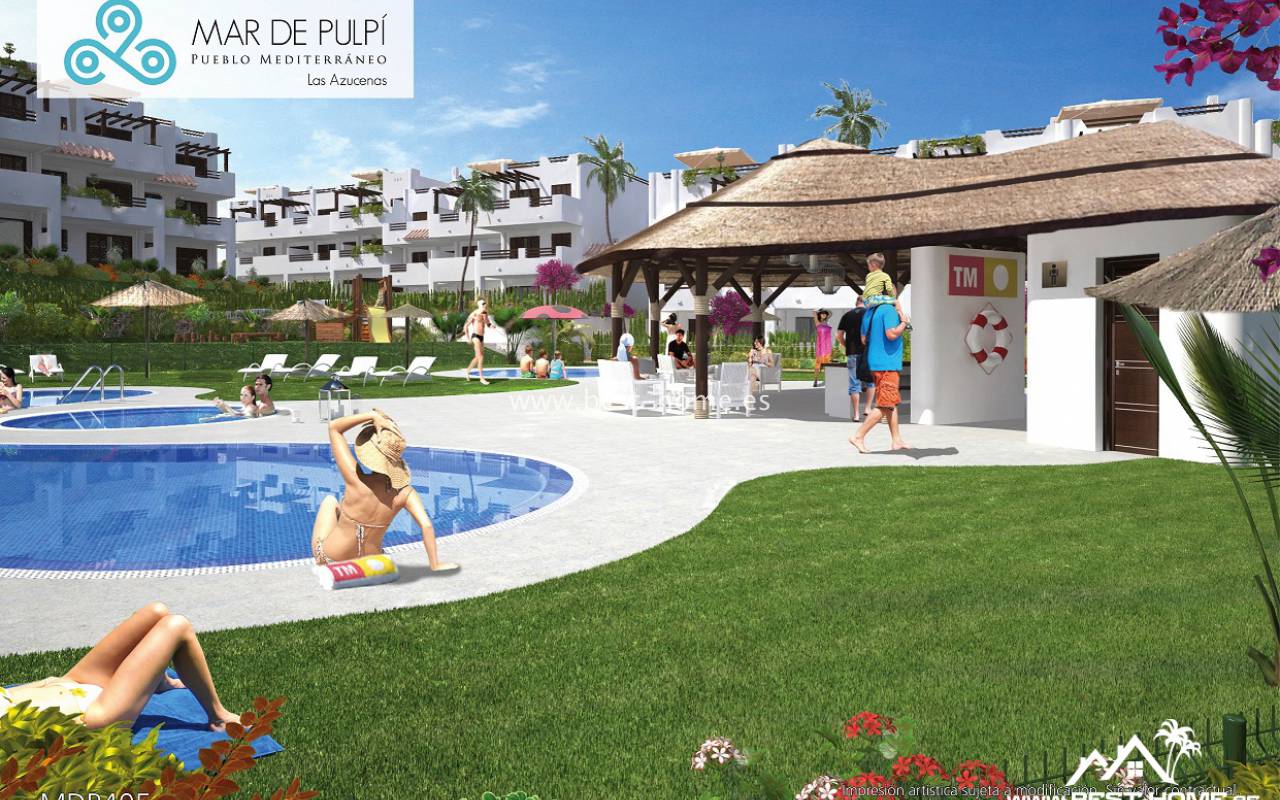 The project is situated between the azure, warm sea and the mountains, next to the shopping center of Mar del Pulpi with restaurants, a supermarket, shops and a gym, 500 meters from the town of San Juan de los Terreros, where you will find all the necessary services for everyday life, as well as several -minute drive to the town of Aguilas, which offers a cinema, a large shopping center, an observation tower from the sixteenth century, or promenades and the charming old town.