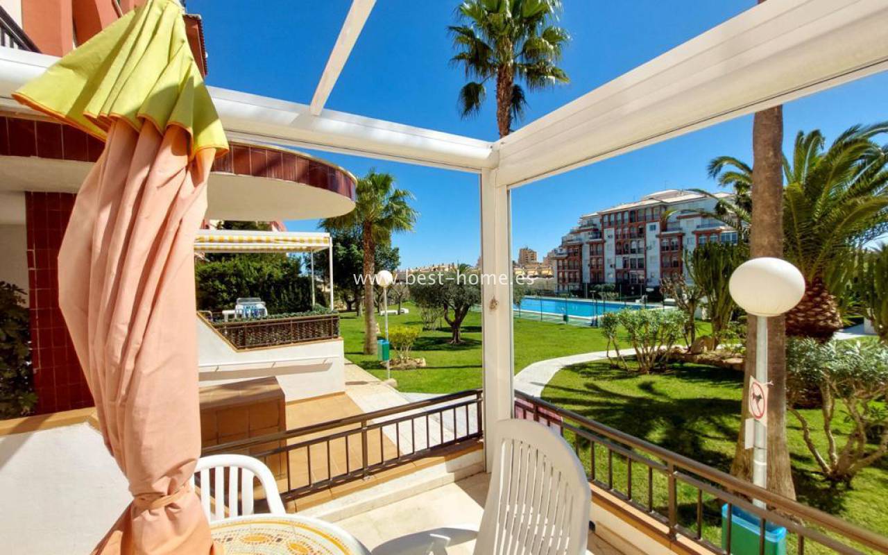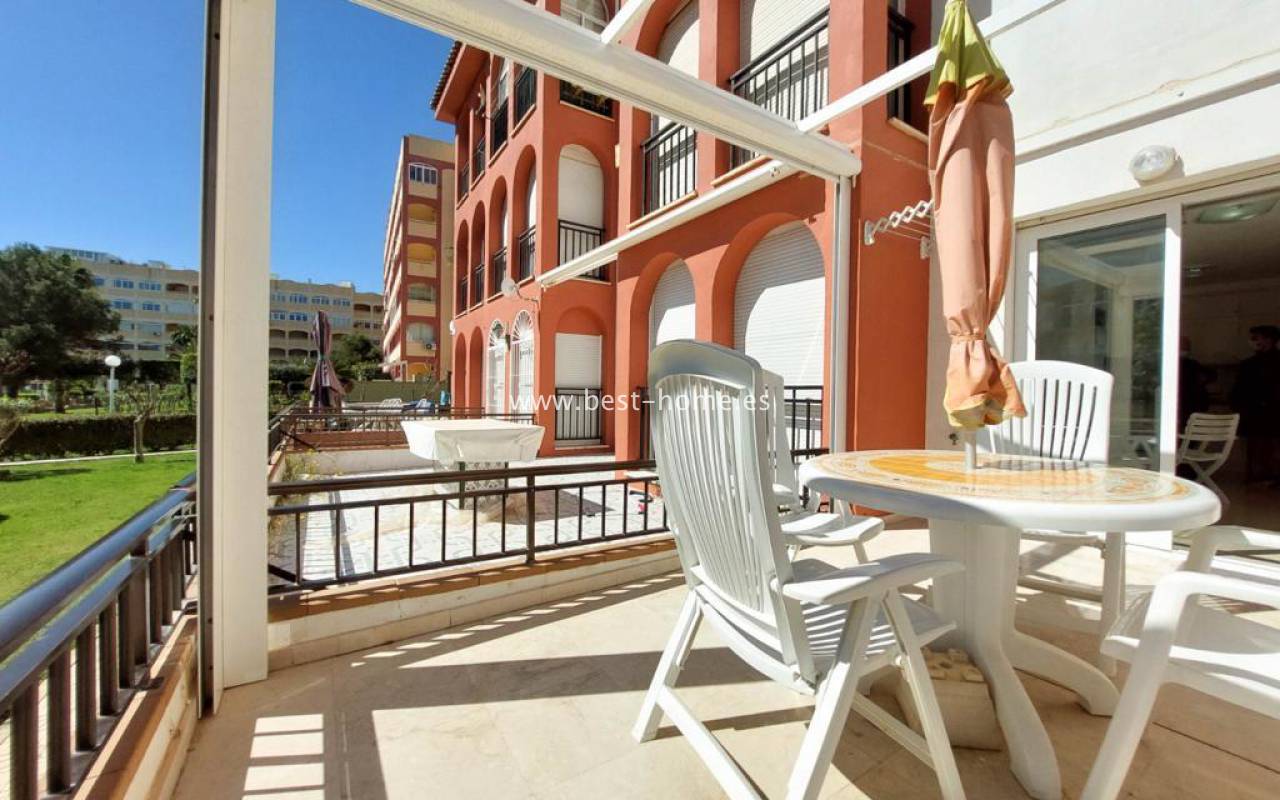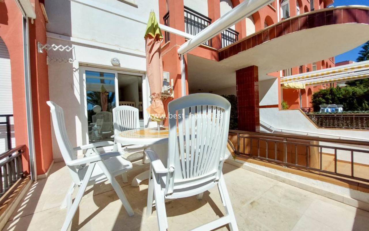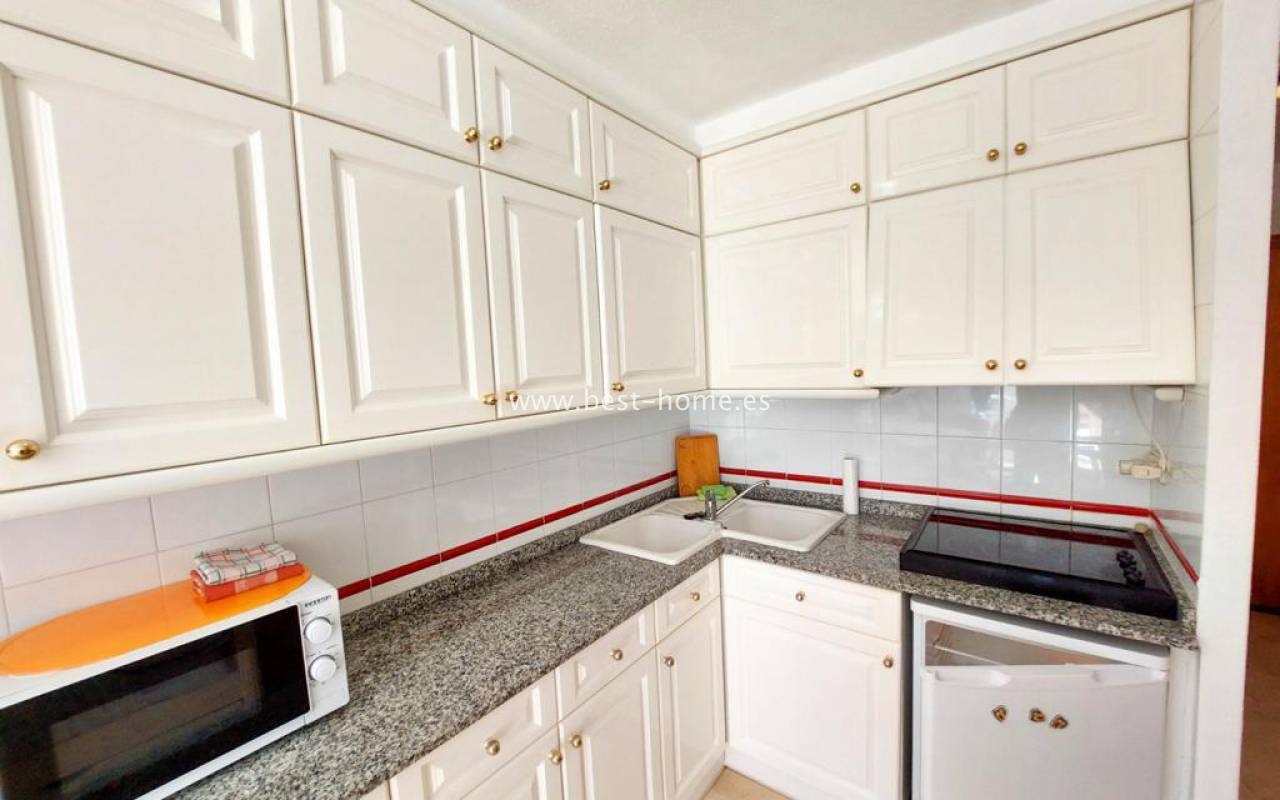 Studio na pięknym pełnym zieleni osiedlu z basenem dla mieszkańców. Nieruchomość posiada pokój z kuchnią, łazienkę i duży słoneczny taras z widokiem na części wspólne. Studio sprzedawane jest z pełnym umeblowaniem.