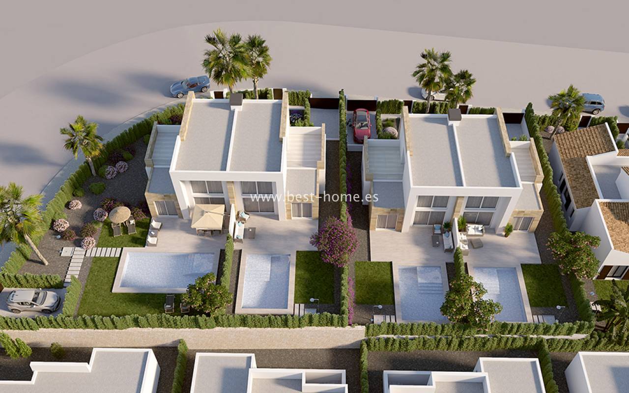 Nowe, bardzo atrakcyjne i przestronne bliźniaki budowane są w bardzo prestiżowym miejscu na polu golfowym w La Finca. Nieruchomości o powierzchni 106 m2 składać się będą z 3 sypialni, 2 łazienek, umeblowanej kuchni z pomieszczeniem gospodarczym i jasnego salonu. Z salonu i głównej sypialni będzie wyjście na taras i do ogrodu, gdzie będzie prywatny basen (6x3).
