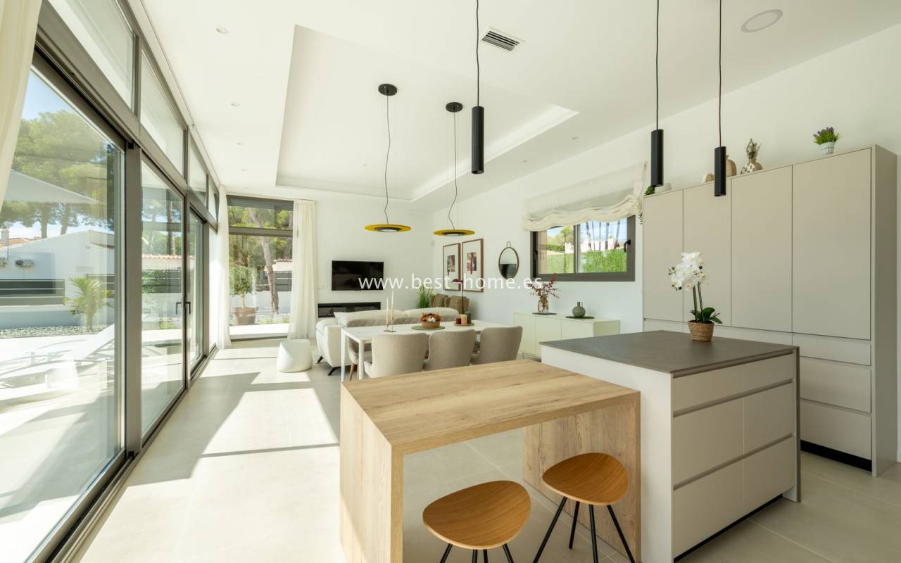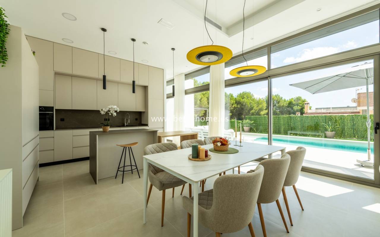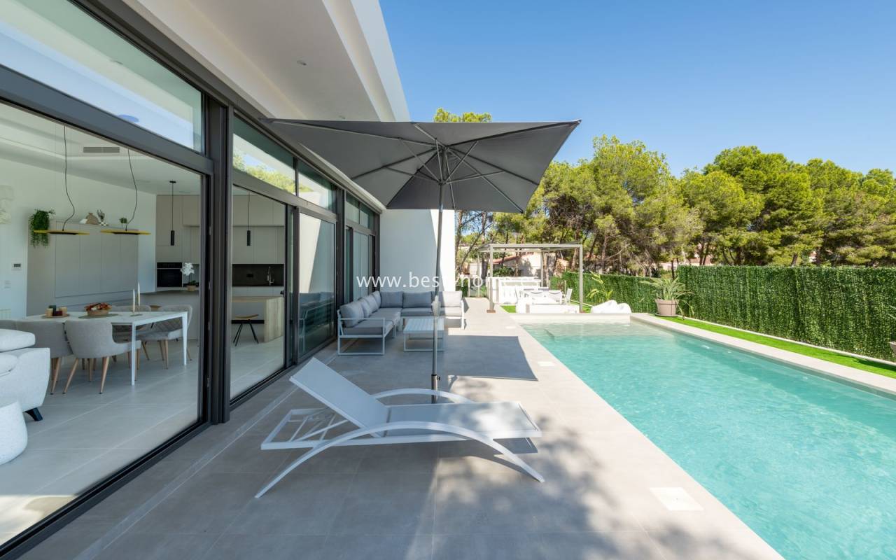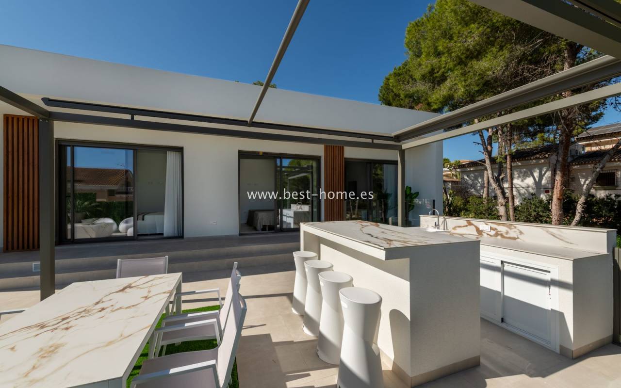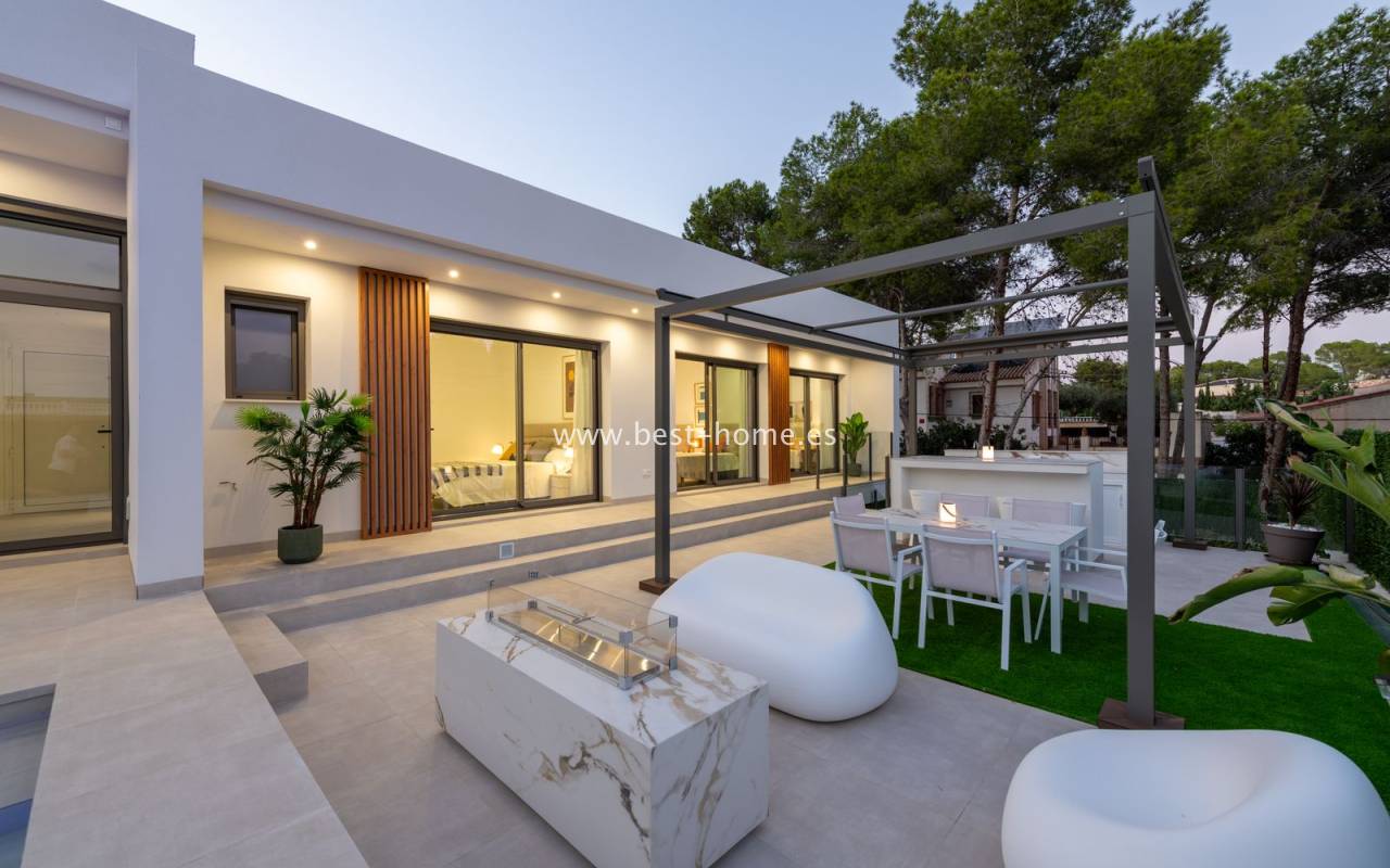 Nowe, fantastyczne wille parterowe budowane będą w bardzo atrakcyjnym, uroczym i pełnym zielni miasteczku Pinar de Campoverde. Domy o powierzchni 140 m2 składać się będą z dużego, jasnego i słonecznego salonu połączonego z jadalnią i umeblowaną kuchnią z wyspą, toalety, głównej sypialni z garderobą i łazienką, dwóch kolejnych sypialni, drugiej łazienki i prali/pomieszczenia gospodarczenia. Z salonu przed duże, przesuwne okna będzie wyjście na taras, do prywatnego basenu i ogrodu. Przy basenie odnajdziemy zonę chill-out oraz letnią kuchnię. Dodatkowo dom posiada podpiwnicznie/garaż o powierzchni 48 m2. W cenie zawiera się zabudowa kuchenna wraz ze sprzętem AGD, oświetlenie zewnętrzne i wewnętrzne, wbudowane szafy, kompletne łazienki, elektryczne rolety,