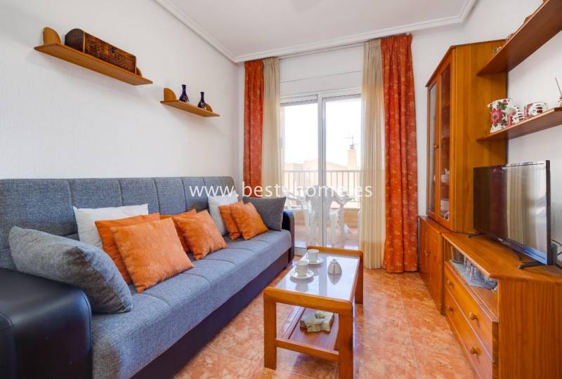 Fantastyczny apartament położony jest na pięknym osiedlu w śródziemnomorskim stylu. Nieruchomość jest na 1 piętrze składa się z dwóch sypialni, jednej łazienki, oddzielnej kuchni z pomieszczeniem gospodarczym i słonecznego salonu. Z głównej sypialni i salonu jest wyjście na słoneczny taras, z którego jest widok wspólny dziedziniec. W cenie klimatyzacja, częściowe umeblowanie. Na terenie osiedle jest basen dla mieszkańców. Do morza jest zaledwie 300 m.