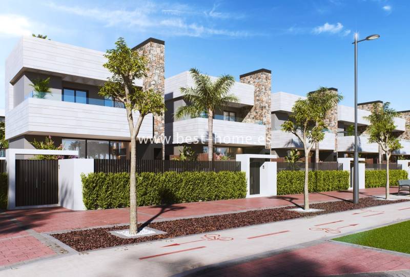 Nowe, luksusowe wille budowane (4 faza) są w tym niesamowitym miejscu. Domy na parterze posiadać będą przestronny i jasny salon połączony z umeblowaną kuchnią, jedną dwuosobową sypialnię i łazienkę. Z salonu przez duże, przesuwne okna będzie wyjście na taras, do ogrodu z prywatnym basenem. Na piętrze odnajdziemy główną, dużą sypialnię z garderobą, łazienką i wyjściem na dwa tarasy oraz drugą sypialnię z łazienką (również z wyjściem na taras). Na kolejnym piętrze odnajdziemy solarium/taras na dachu (45 m2) z możliwością zamontowania jacuzzi. Z salonu schodami w dół dostaniemy się do podpiwniczenia z oknami (51m2), gdzie można zrobić salę kinową, siłownię lub dodatkowe sypialnie. W cenie zabudowa kuchenna wraz ze sprzętem AGD, centralna klimatyzacja ciepło/zimno, wykończone łazienki, elektryczne rolety, oświetlenie LED zewnętrzne i wewnętrzne, dekoracyjne oświetlenie, tapeta w salonie, podgrzewane podłogi w łazienkach, system domotica, prywatny basen (możliwość zamontowania pompy ciepła) oraz grill przy basenie. Wille budowane będą w drugiel linii od laguny. Działki od 233 m2 do 248 m2.