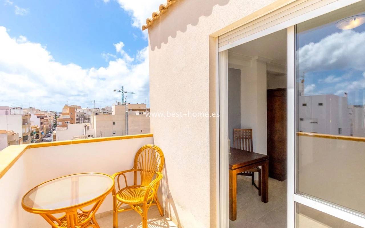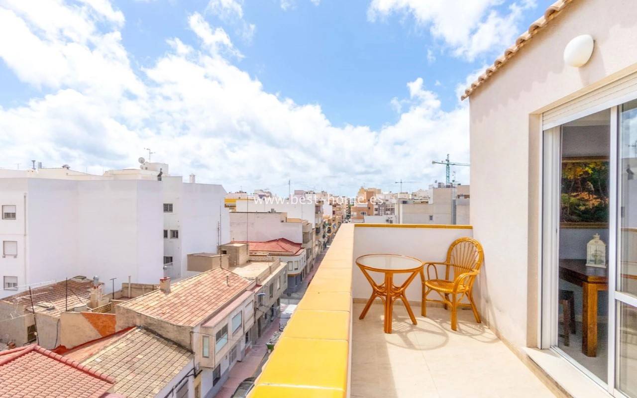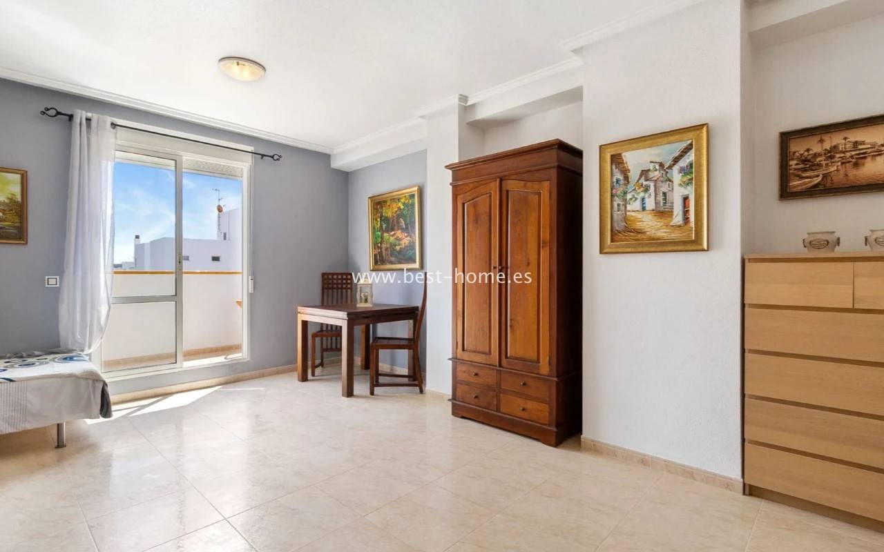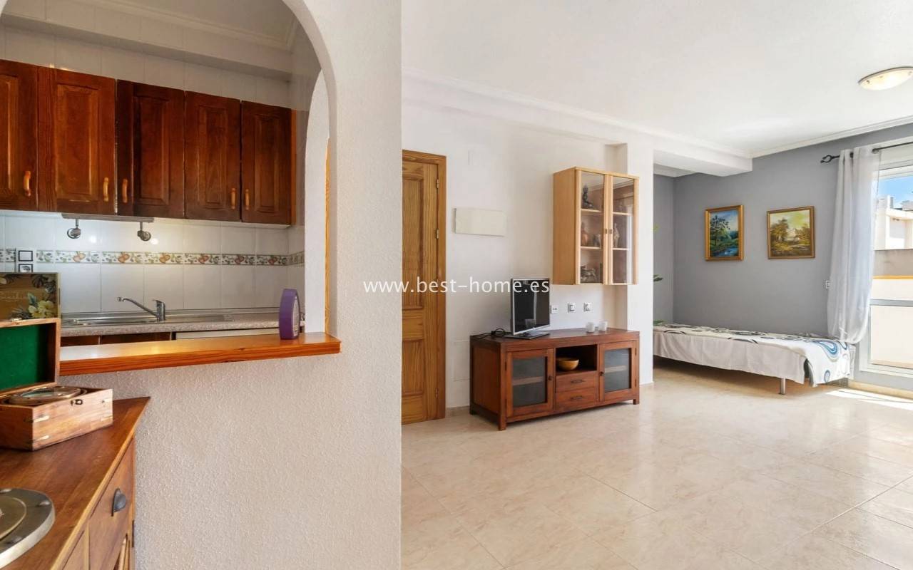 Przytulne słoneczne studio na najwyższym piętrze z widokiem na miasto w Torrevieja. Posiada jasny salon z miejscem wydzielonym do spania, z którego wychodzimy na taras, kuchnię w stylu amerykańskim wyposażoną w sprzęt AGD, łazienkę. Mieszkanie sprzedawane jest wraz z meblami. Idealne nieruchomość dla osób, szukajacych mieszkania pod najem wakacyjny lub długoterminowy. W pobliżu znajdziemny mnóstwo knajp, pubów, restauracji i kawiarni.