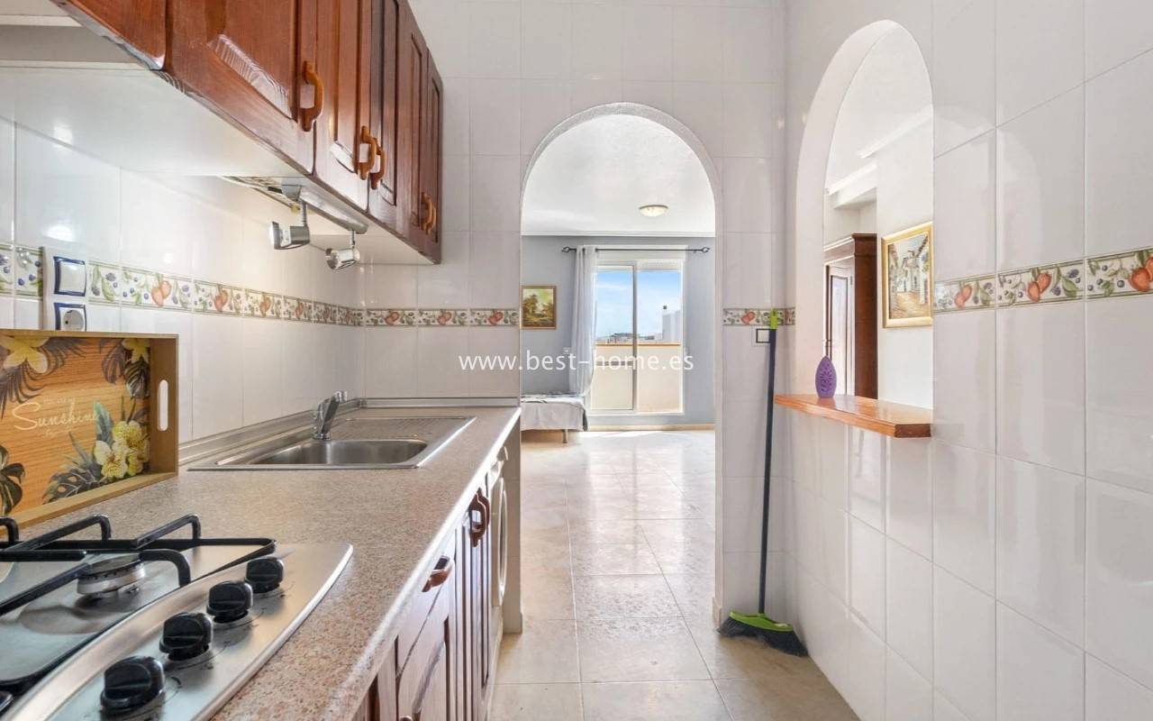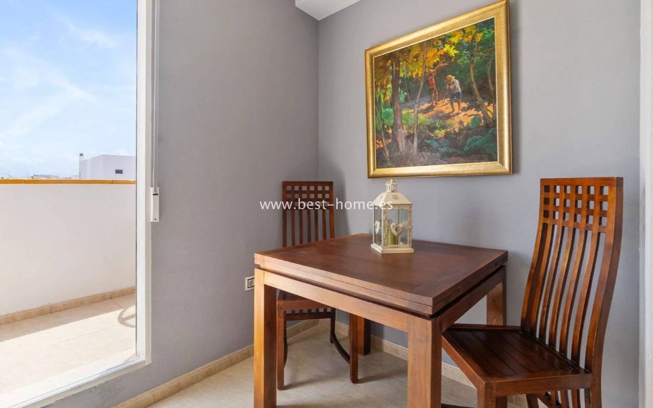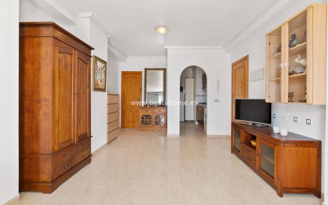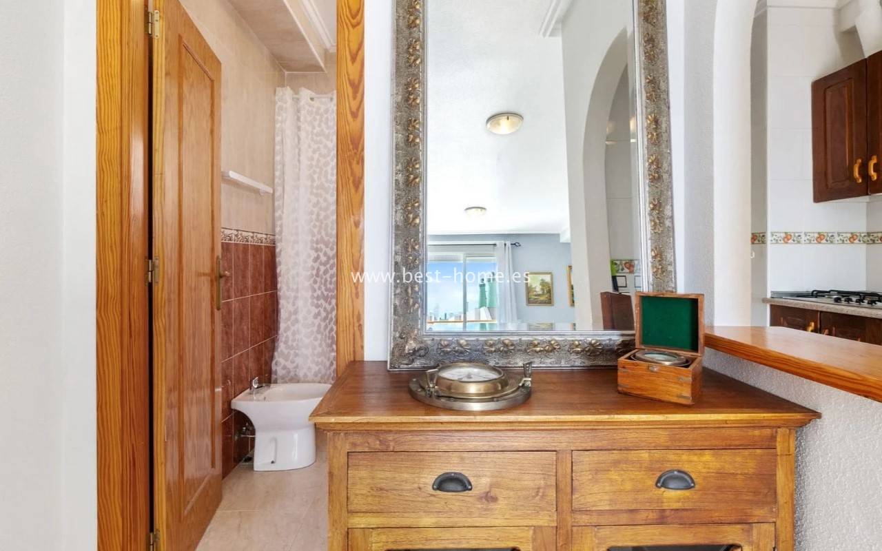 Przytulne słoneczne studio na najwyższym piętrze z widokiem na miasto w Torrevieja. Posiada jasny salon z miejscem wydzielonym do spania, z którego wychodzimy na taras, kuchnię w stylu amerykańskim wyposażoną w sprzęt AGD, łazienkę. Mieszkanie sprzedawane jest wraz z meblami. Idealne nieruchomość dla osób, szukajacych mieszkania pod najem wakacyjny lub długoterminowy. W pobliżu znajdziemny mnóstwo knajp, pubów, restauracji i kawiarni.