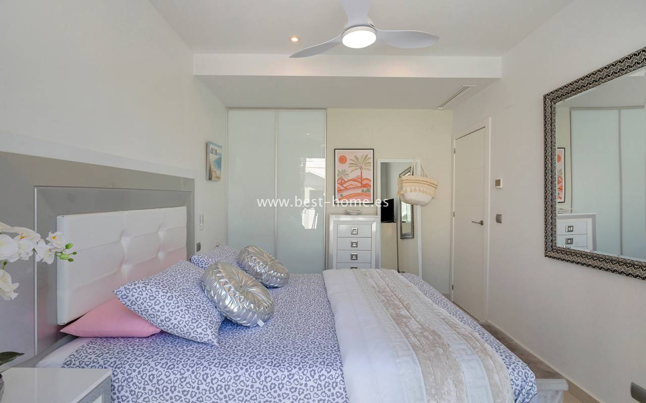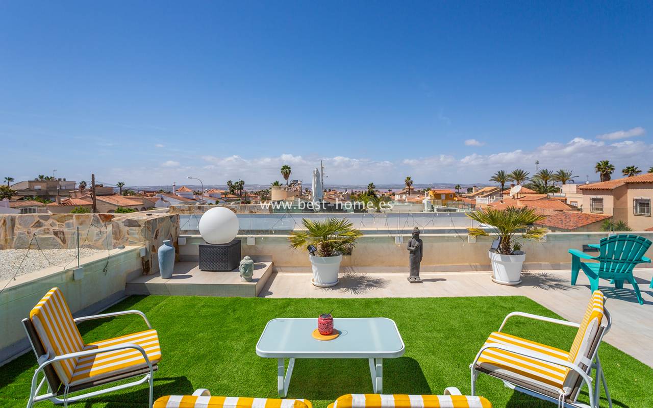 Nowoczesna willa z ogrodem, prywatnym basenem i solarium z widokiem na góry w miejscowości Torrevieja. Na działce o powierzchni 400m2 znajduje sie ogród, prywatny basen w rozmiarze 8x4 m, kuchnia letnia, duża ilość kwiatów. W domu znajdziemy jasny salon, 3 dwuosbowe sypialnie z wbudowanymi szafami, kuchnię wyposażoną w sprzęt AGD, 2 łazienki. Na górze willi znajduje sie solarium/taras ze strefą wypoczynkową i pięknym widokiem na góry i okolice. Dom jest umeblowany i wyposażony w klimatyzację.