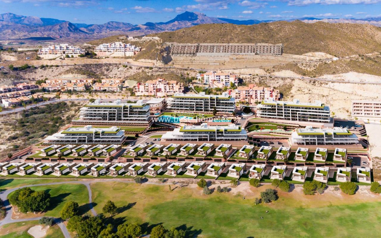 Nowe, atrakcyjne osiedle budowane jest przy polu golfowym Bonalba Golf. Na zamkniętym osiedlu będą 3 bloki, każdy po 4 piętra i łącznie 208 apartamentów z 3 lub 2 sypialniami. Dostępne są przestronne penthousy 2 sypialniami, 2 łazienkami, umeblowaną kuchnią połączoną z jadalnią i salonem. Z salonu i sypialni będzie wyjście na słoneczny taras (37 m2), z którego rozciągać się będą panoramiczne widoki na morze, pole golfowe i okolicę. Nieruchomość posiada dodatkowo taras wejściowy o powierzchni 37 m2 Na terenie osiedla odnajdziemy wspólny basen z leżakami, plac zabaw i tereny zielone. W cenie zabudowa kuchenna (płyta indukcyjna, okap, piekarnik), wykończone łazienki, centralna klimatyzacja ciepło/zimno oraz miejsce parkingowe i komórka lokatorska w podziemiach budynku. Do barów i restauracji jest 750 m.