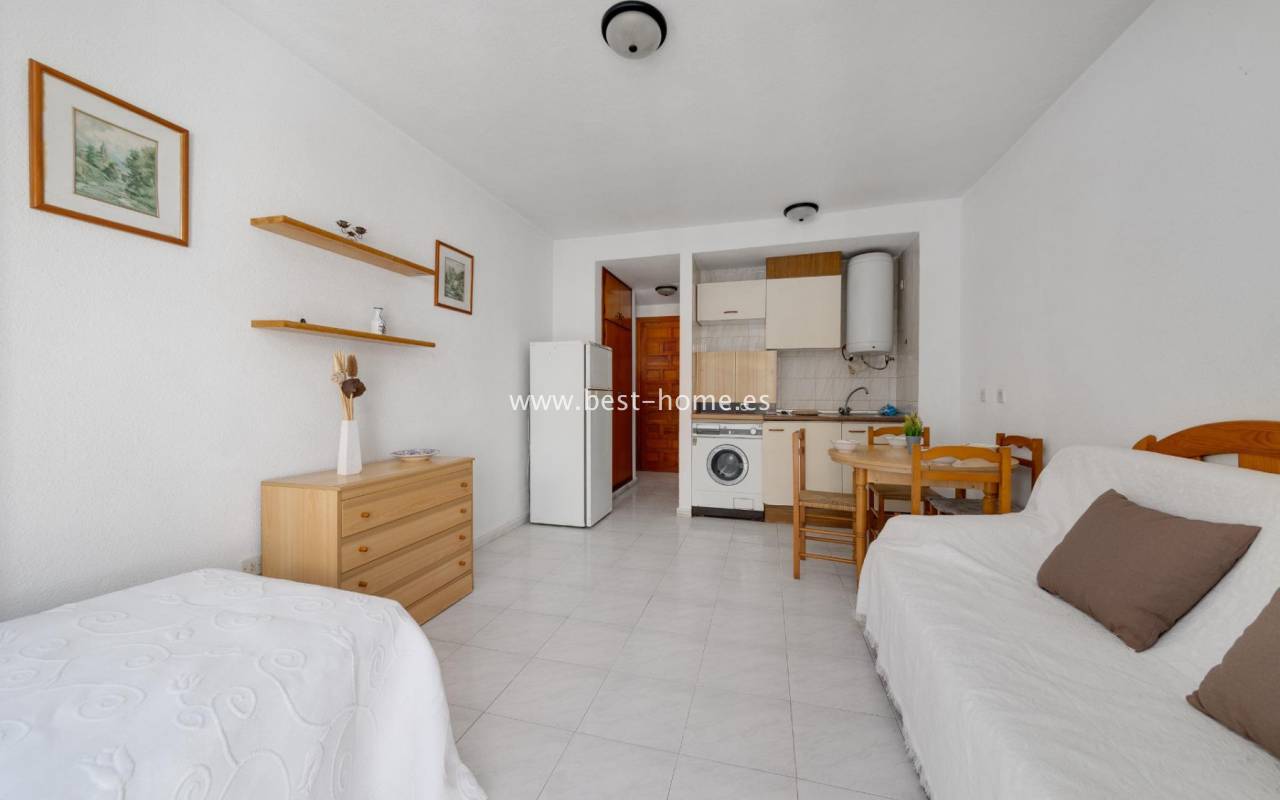 Studio w dobrej cenie, blisko plaży Playa del Cura. Posiada salon z wyjściem na taras, małą kuchnię otwartą do salonu, łazienkę. Idalane mieszkanie na wakacje, pod najem turystyczny lub długoterminowy. W pobliżu znajdziemy dużą ilość knajp, pubów, kawiarni, restaueracji i market spożywczy Consum.