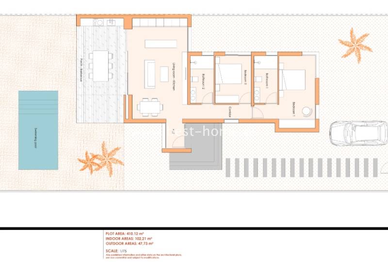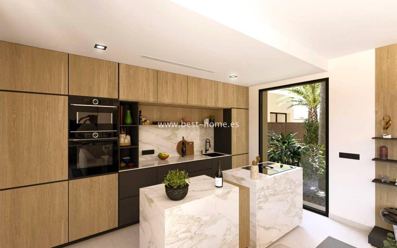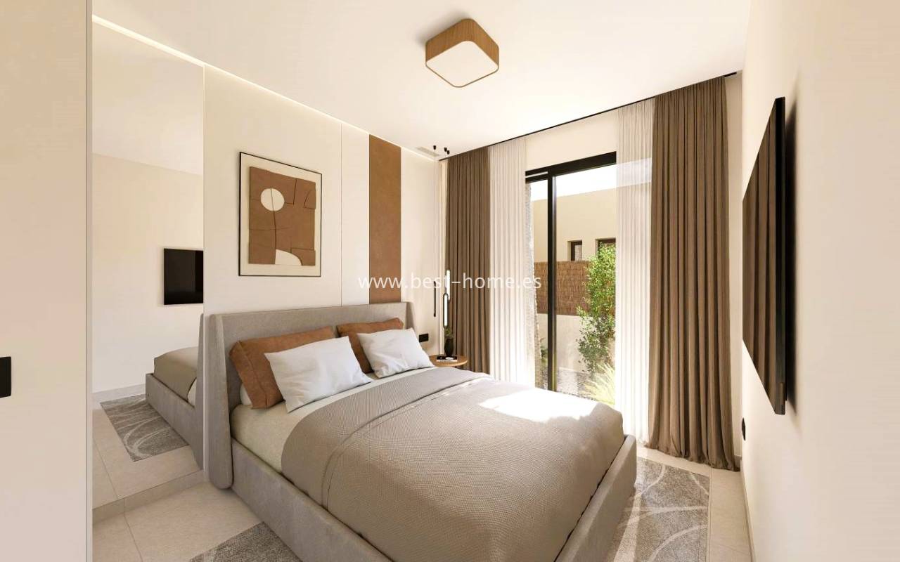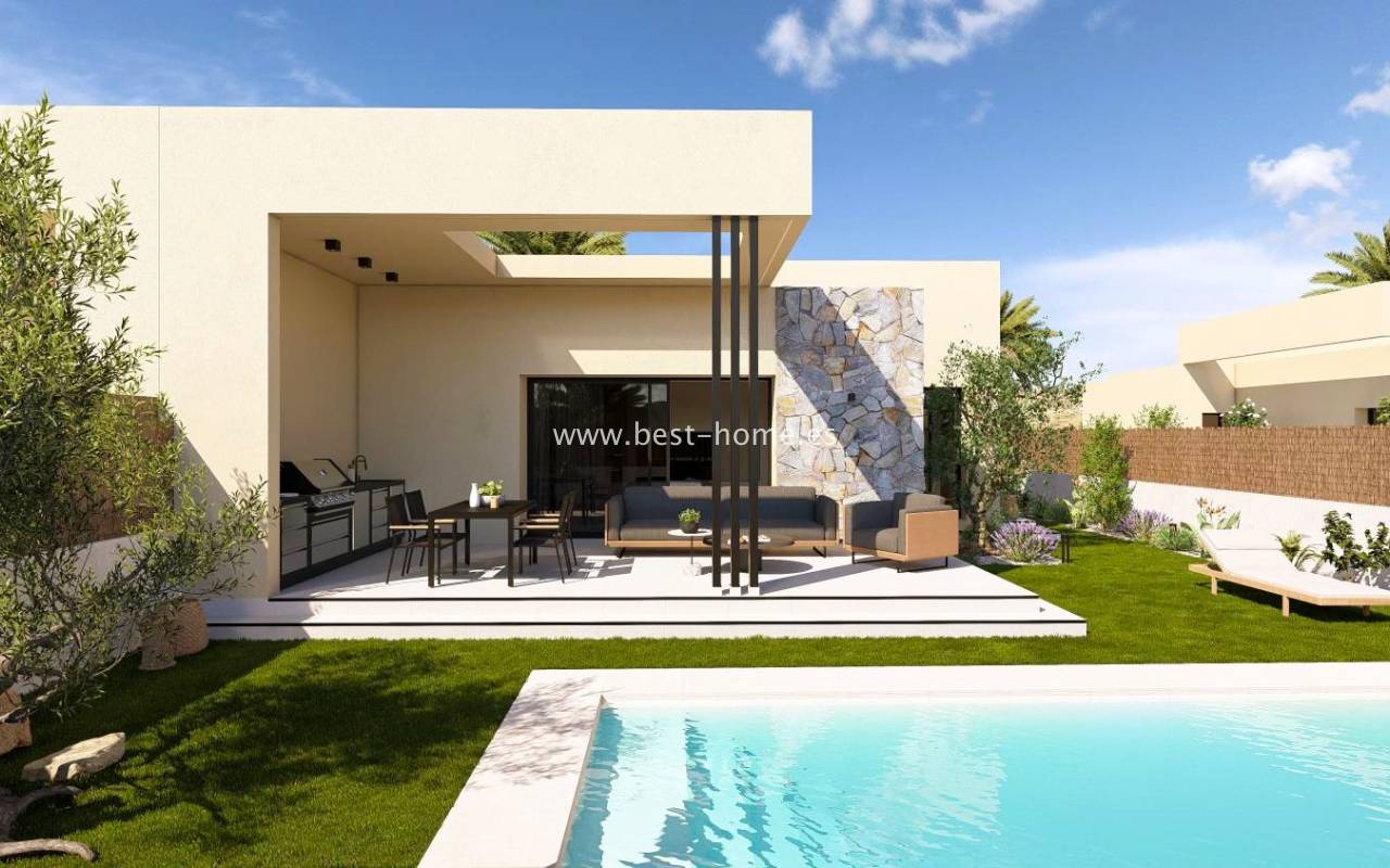 Nowe, fantastyczne wille budowane są w świetnej lokalizacji na zamkniętym i strzeżonym terenie przy 18 dołkowym polu golfowym. Parterowe wille (bliźniaki) składać się będą korytarza wejściowego 2 dużych sypialni z wbudowanymi szafami, 2 łazienek, przestronnego i jasnego salonu połączonego z jadalnią i kuchnią z wyspą. Z salonu wyjdziemy na taras (40 m2) oraz do ogrodu, gdzie odnajdziemy prywatny basen (3x6m). W cenie kompletne łazienki, zabudowa kuchenna (okap i płyta indukcyjna), centralna klimatyzacja ciepło/zimno, oświetlenie led zewnętrzne i wewnętrzne, prywatny basen i wykończony ogród. Na terenie urbanizacji odnajdziemy małe centrum handlowe, restauracje, bary, place zabaw, ścieżki do jazdy na rowerze oraz centrum sportowe z laguną do pływania na deskach surf, siłownię, miejsce do yoga, korty do gry w padel i tenisa oraz wiele więcej. Jest to idealne miejsce do zamieszkania na stałe. Do wspaniałego, hiszpańskiego miasta Murcia jest zaledwie 15 minut drogi.