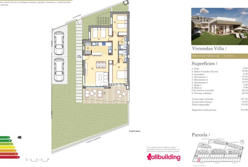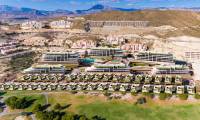 Nowe, atrakcyjne osiedle budowane jest przy polu golfowym Bonalba Golf. Na zamkniętym osiedlu w 1 fazie budowanych będzie 12 willi parterowych. Domy składać się będą z 3 przestronnych sypialni, 2 łazienek, umeblowanej kuchni z pomieszczeniem gospodarczym i przestronnego jasnego salonu z jadalnią. Z salonu będzie wyjście na taras i do ogrodu, gdzie można zrobić prywatny basen. W cenie zabudowa kuchenna (okap, płyta indukcyjna, piekarnik), kompletne łazienki, centralna klimatyzacja ciepło/zimno i elektryczne rolety. Na terenie osiedla odnajdziemy wspólny basen z leżakami, plac zabaw, tereny zielone i klub socjalny/spotkań. Działki od 300 m2 do 344 m2.