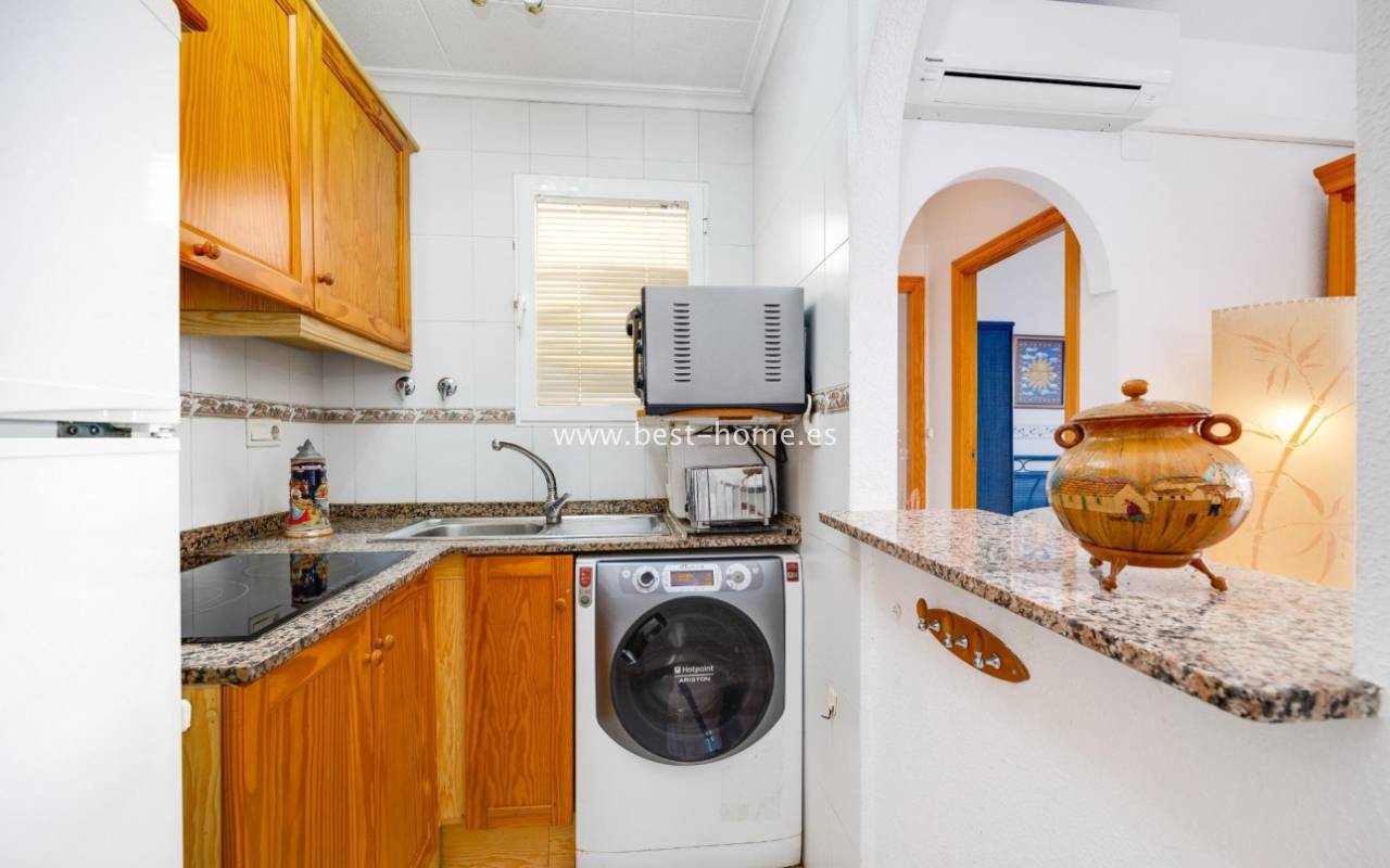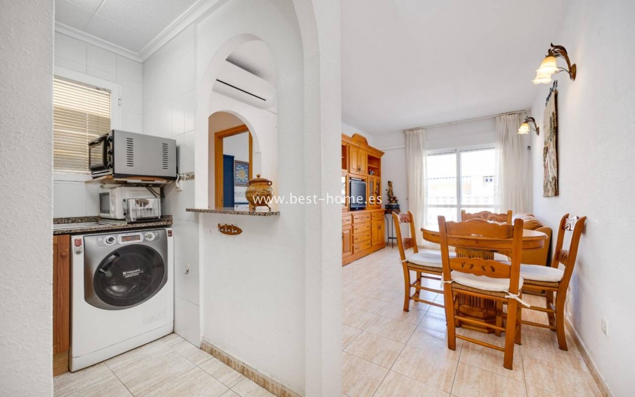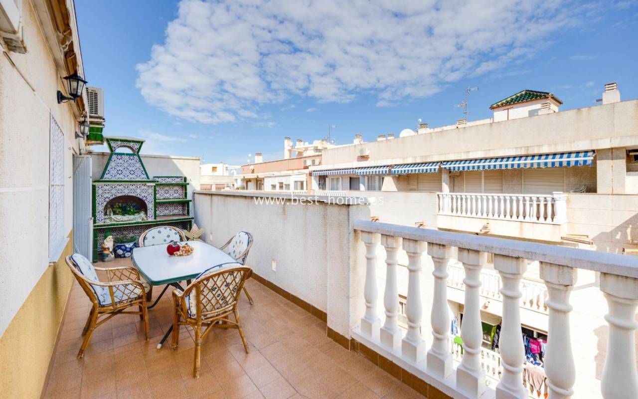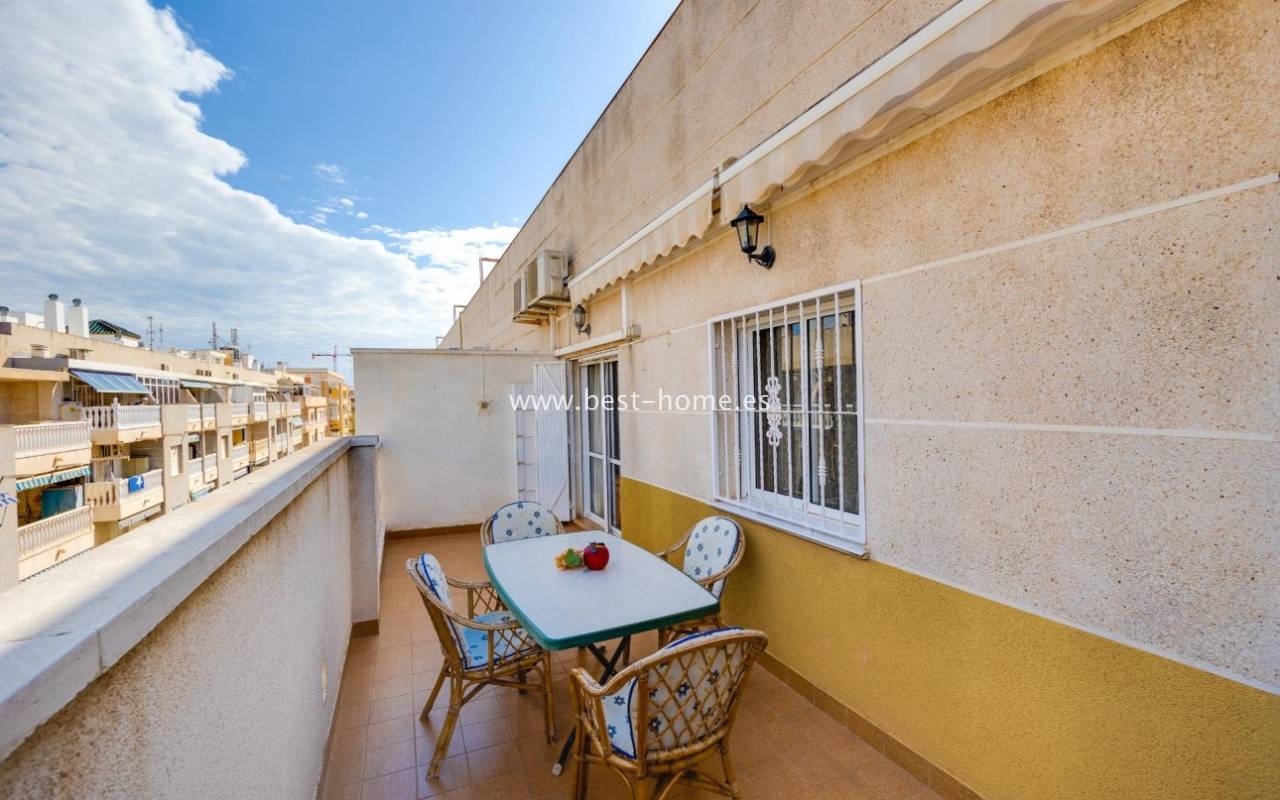 Penthouse z dużym tarasem, blisko centrum w Torrevieja. Posiada salon z wyjściem na taras, 2 dwuosobowe sypialnie, w tym główna z zabudowaną szafą, kuchnie w stylu amerykańskim wyposażona w sprzet AGD, łazienkę. Na terenie osiedla znajduje się basen przeznaczony dla mieszkańców. Mieszkanie wyposażone jest w klimatyzację i sprzedawane wraz z meblami. W pobliżu znajdziemy mnóstwo udogodnień w postacji sklepów, aptek, barów, cukierni i restauracji.
