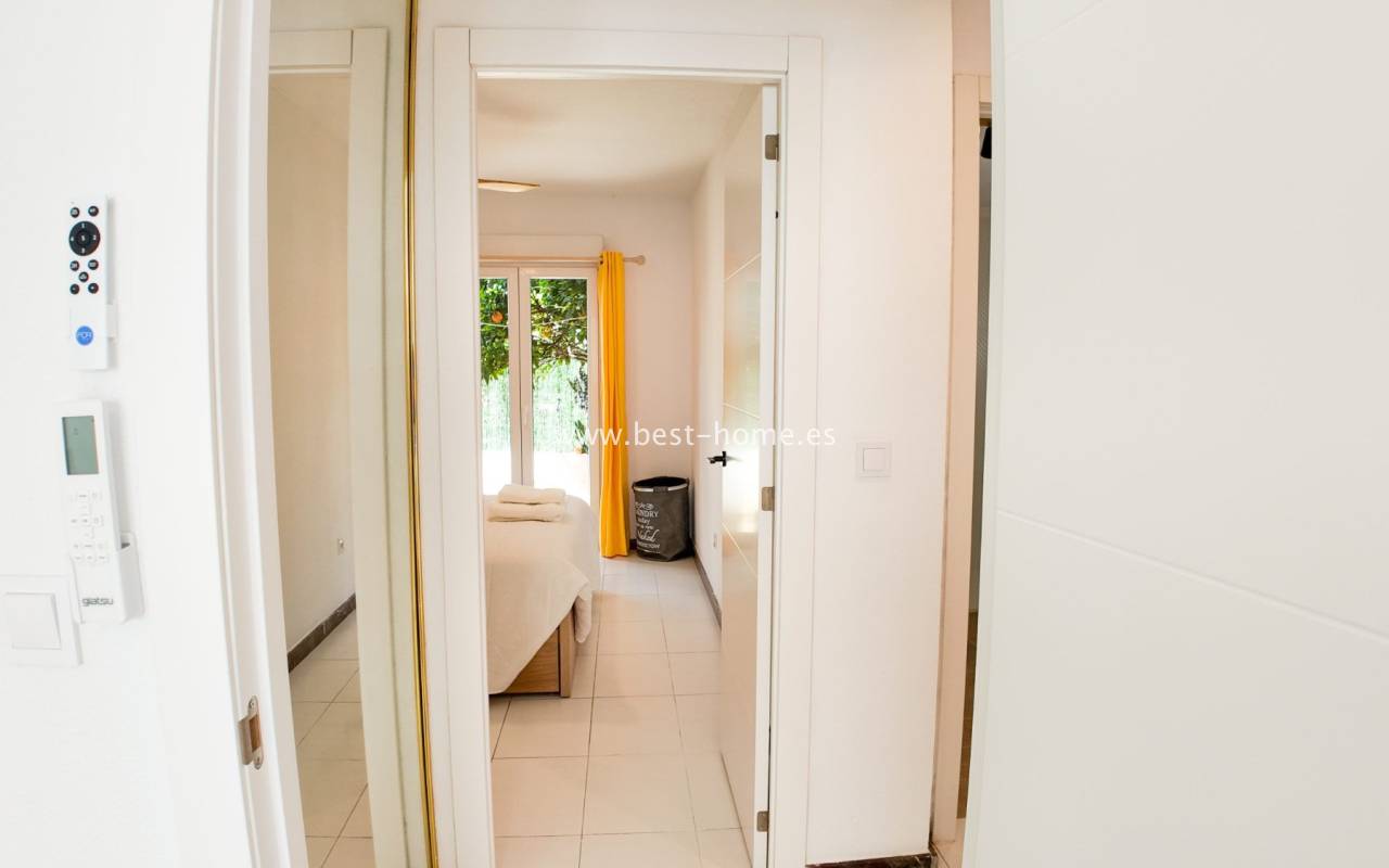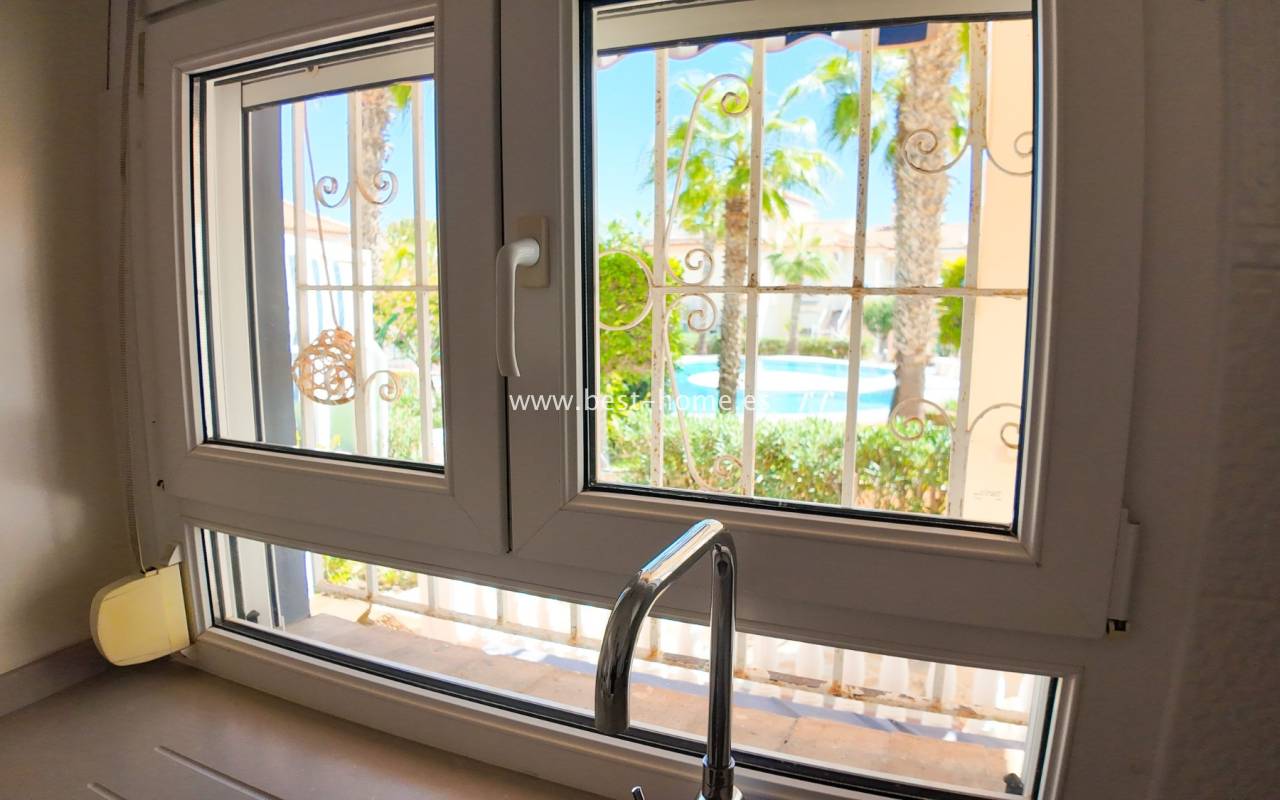 Atrakcyjny bungalow położony jest pięknym, pełnym bujnej zieleni osiedlu. Nieruchomość składa się z dwóch sypialni, jednej łazienki (wyremontowana), umeblowanej kuchni połączonej z salonem. Z głównej sypialni jest wyjście na oranżerię. Dodatkowo nieruchomość posiada przedni i tylny ogródek (taras). Bungalow po remoncie ładnie i gustownie umeblowany wyposażony w nowe klimatyzacje i kominek. Bezpośrednie wyjście do wspaniałego basenu i ogrodów.