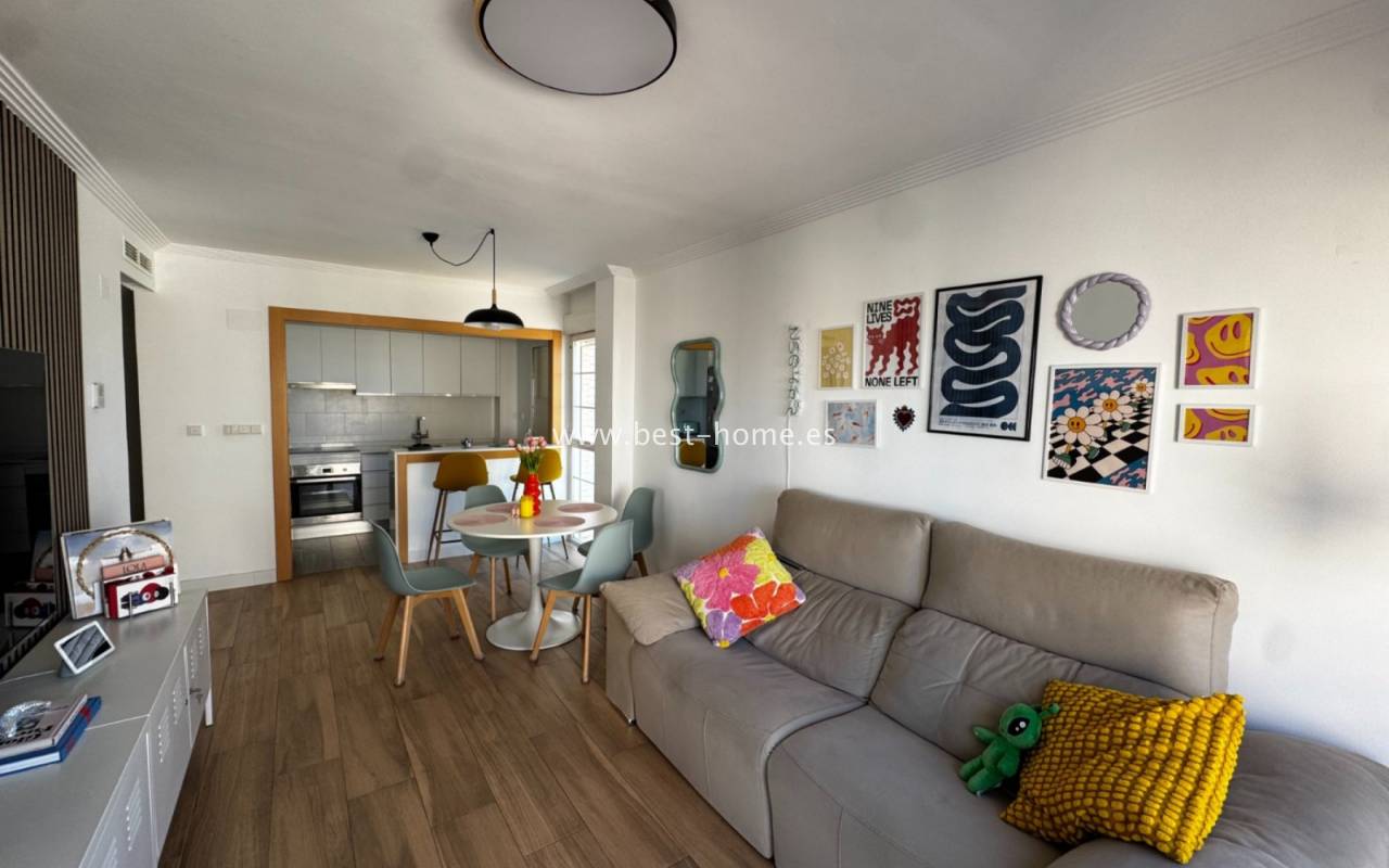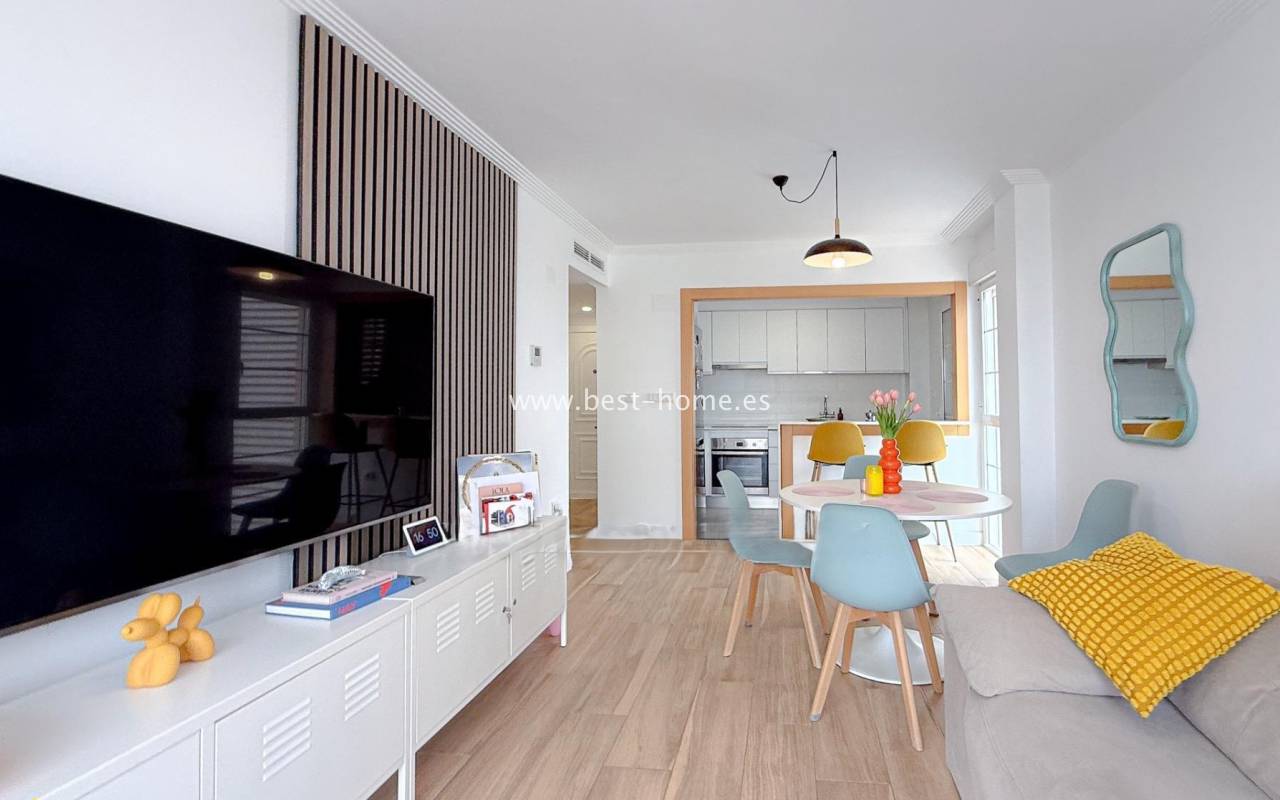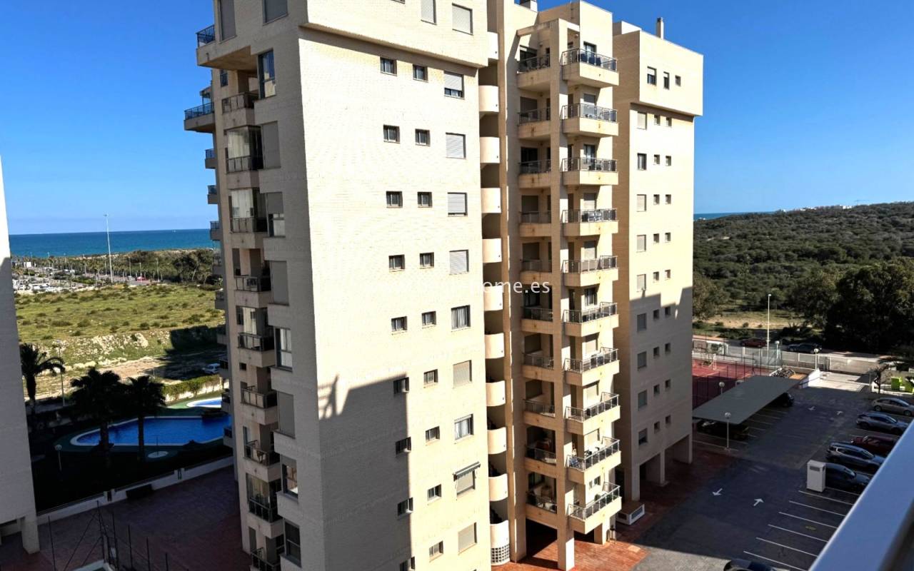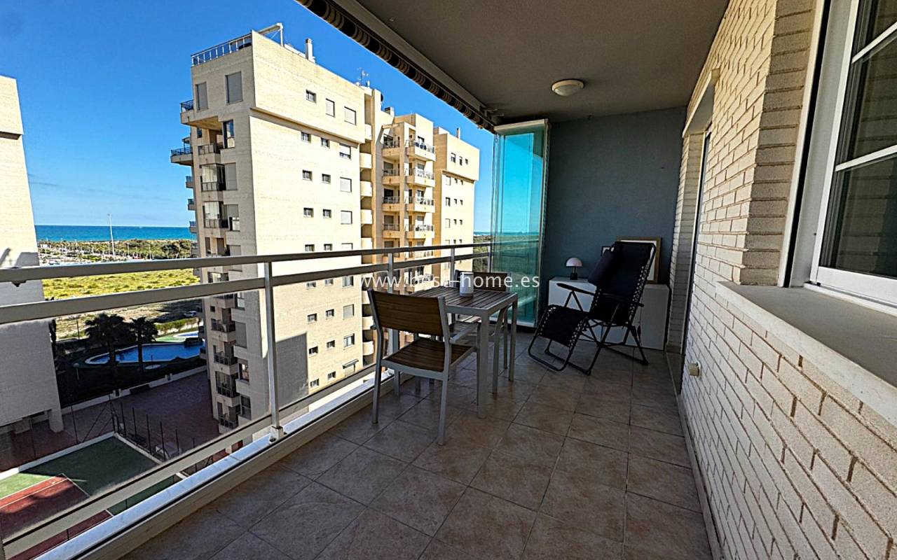 Fantastyczny apartament na 7 pietrze z widokiem na morze i rzekę, z basenem osiedlowym, placem zabaw i miejscem garażowym w miejscowości Guardamar del Segura. Posiada jasny salon z wyjściem na słoneczny taras, z którego rozciąga się piękny widok na morze, las piniowy, rzekę. Dodatkowo w apartamencie znajdziemy dwie dwuosobowe sypialnie, kuchnię w stylu amerykańskim wyposażona w sprzęt AGD, łazienkę. W cenie apartamentu jest miejsce parkingowe w garażu podziemnym. Na terenie osiedla znajuje sie basen i plac zabaw przeznaczony dla mieszkańców. Idealne miejsce dla osób, które szukaja ciszy, spokoju i pięknego hiszpańskiego miasta.