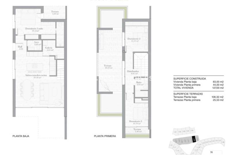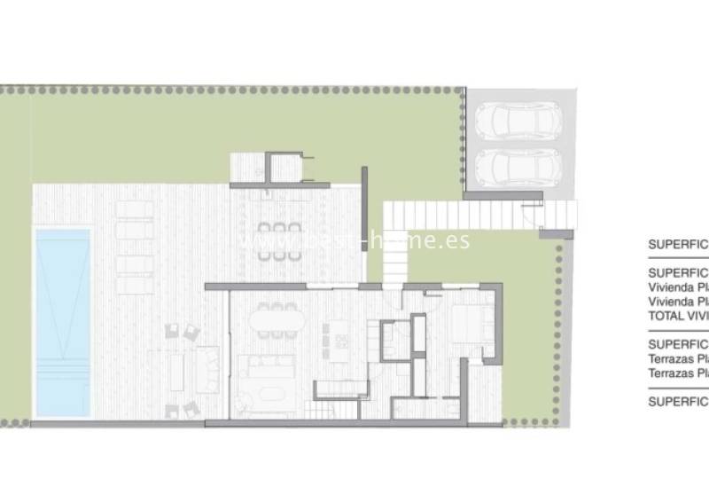 Nowe, atrakcyjne domy (bliźniaki) budowane są w prestiżowym, urokliwym miejscu na polu golfowym Las Colinas. Nieruchomości na parterze posiadać będą przestronny i jasny salon połączony z jadalnią i umeblowaną kuchnią z wyspą, pomieszczenia gospodarczego, toalety i sypialni łazienką en-suit. Z salonu będzie wyjście na taras, do ogrodu i prywatnego basenu. Na piętrze odnajdziemy 2 sypialnie, łazienkę i 2 tarasy. W cenie zabudowa kuchenna wraz ze sprzętem AGD, centralna klimatyzacja ciepło/zimno, kompletne łazienki z ogrzewaniem podłogowym, oświetlenie, prywatny basen i wykończony ogród.