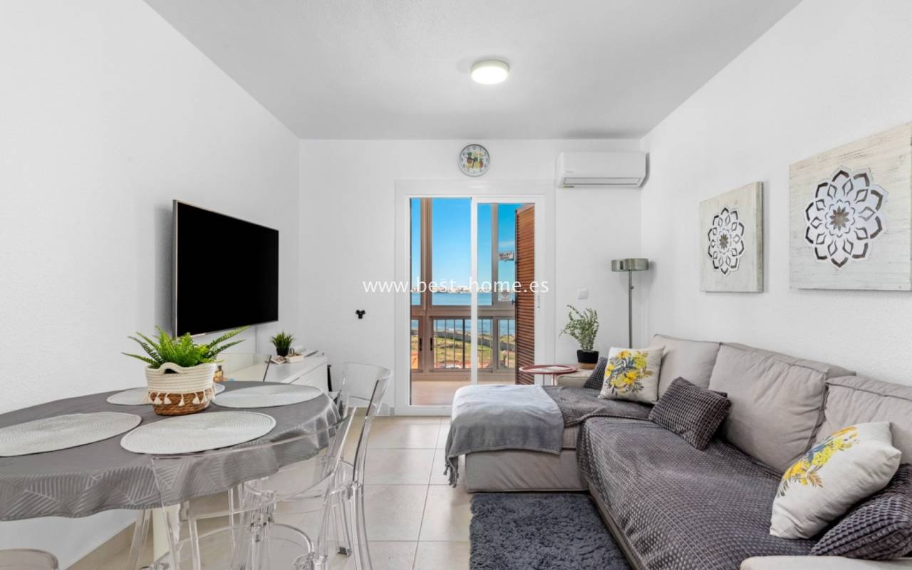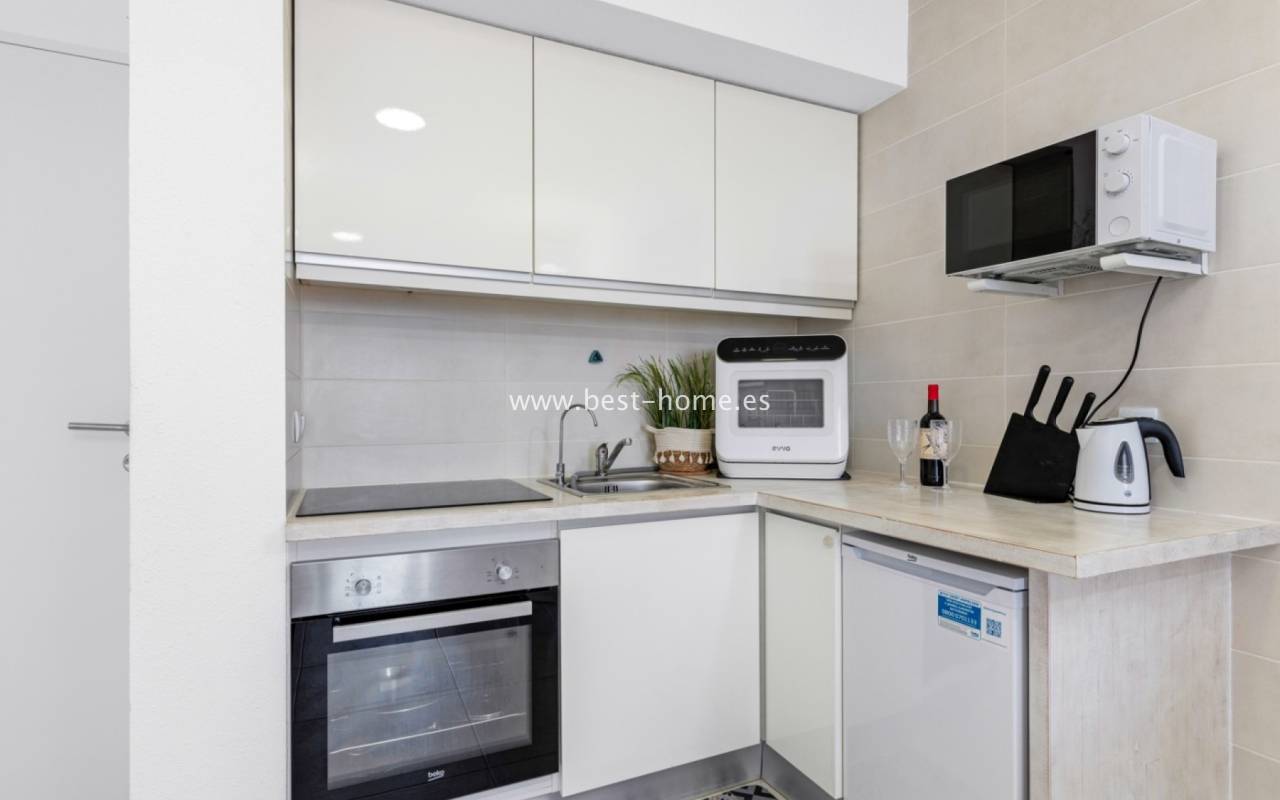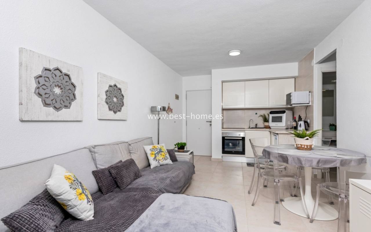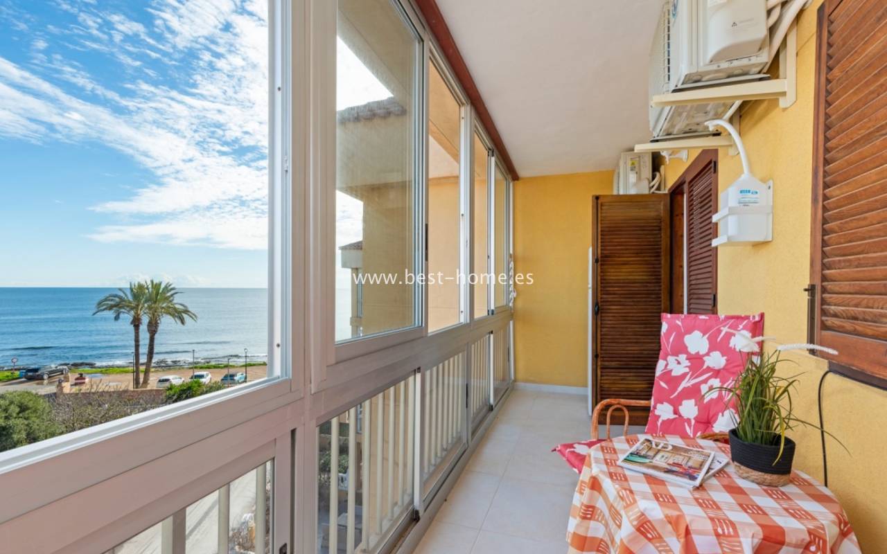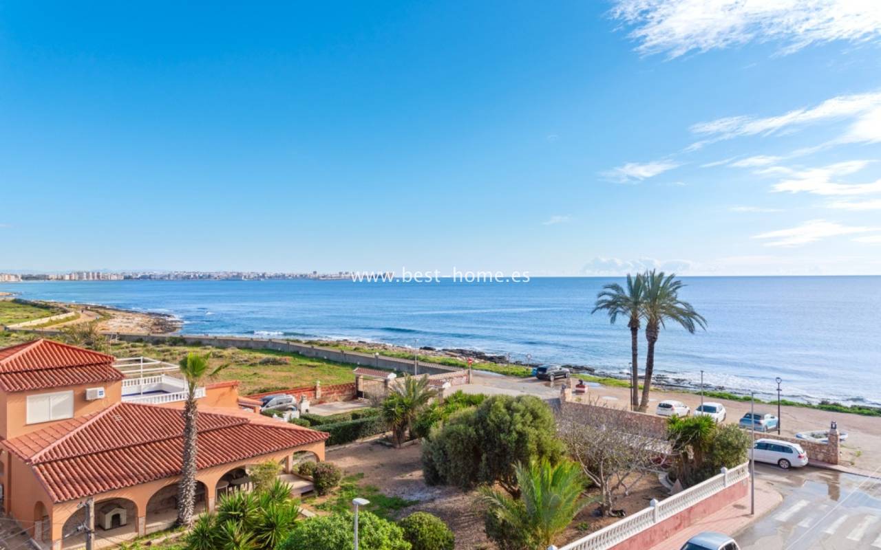 Fantastyczny apartament położony jest w 1 linii brzegowej w Punta Prima. Nieruchomość jest na 3 pietrze (brak widny), składa się z jednej sypialni z łazienką, umeblowanej kuchni i salonu i tarasu, z którego jest piękny widok na morze i tereny zielone. Na terenie osiedla jest wspólny basen.