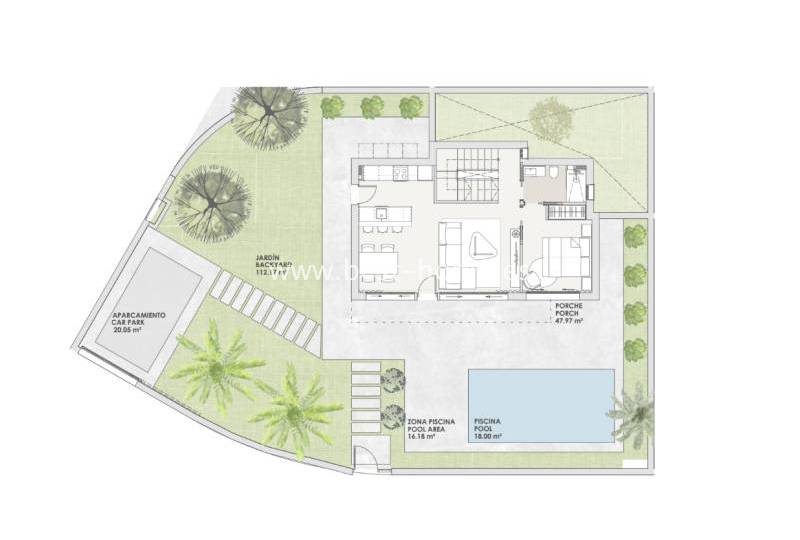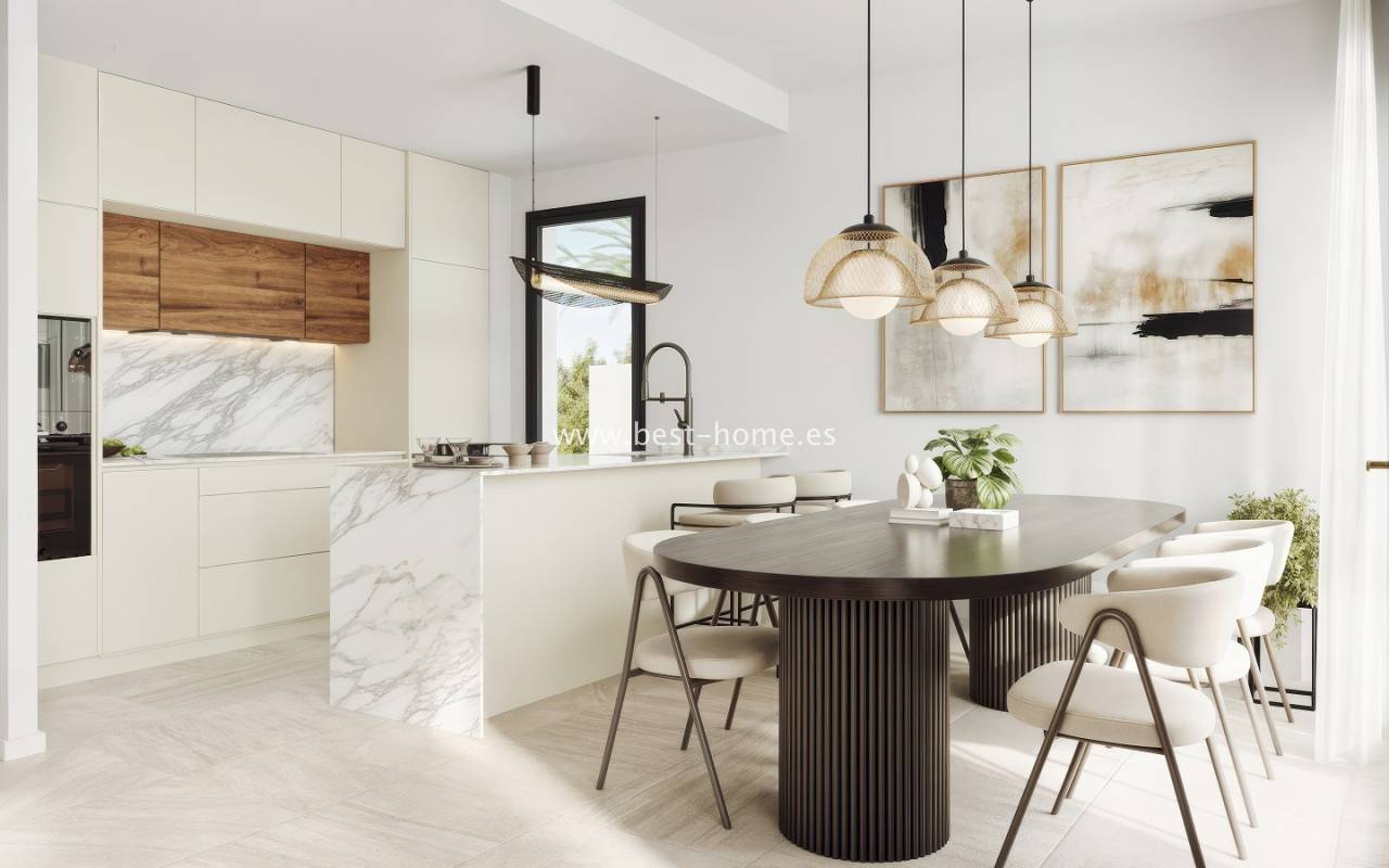 Na sprzedaż oferujemy nowoczesne wille położone w prestiżowej lokalizacji w Santa Rosalia, tuż obok nadmorskiej miejscowości Los Alcázares na słonecznym wybrzeżu Costa Cálida. Ceny nieruchomości wynoszą od 760 000 do 790 000 euro, w zależności od wielkości działki, które mają powierzchnię od 229 do 315 m². Każda z willi posiada prywatny basen oraz miejsce postojowe znajdujące się bezpośrednio na terenie posesji. Domy wyróżniają się nowoczesnym designem, wysokim standardem wykończenia oraz funkcjonalnymi układami pomieszczeń. Całość znajduje się na zamkniętym, ekskluzywnym osiedlu, którego największą atrakcją jest największa w Europie sztuczna laguna o powierzchni 16 000 m², otoczona 8 000 m² piaszczystych plaż dostępnych wyłącznie dla mieszkańców. To wyjątkowe miejsce oferuje połączenie luksusu, komfortu i natury, tworząc idealne warunki do życia i wypoczynku przez cały rok.