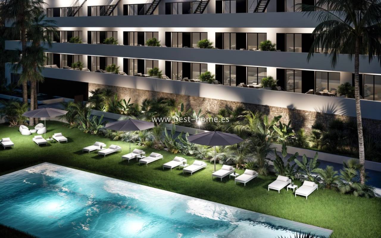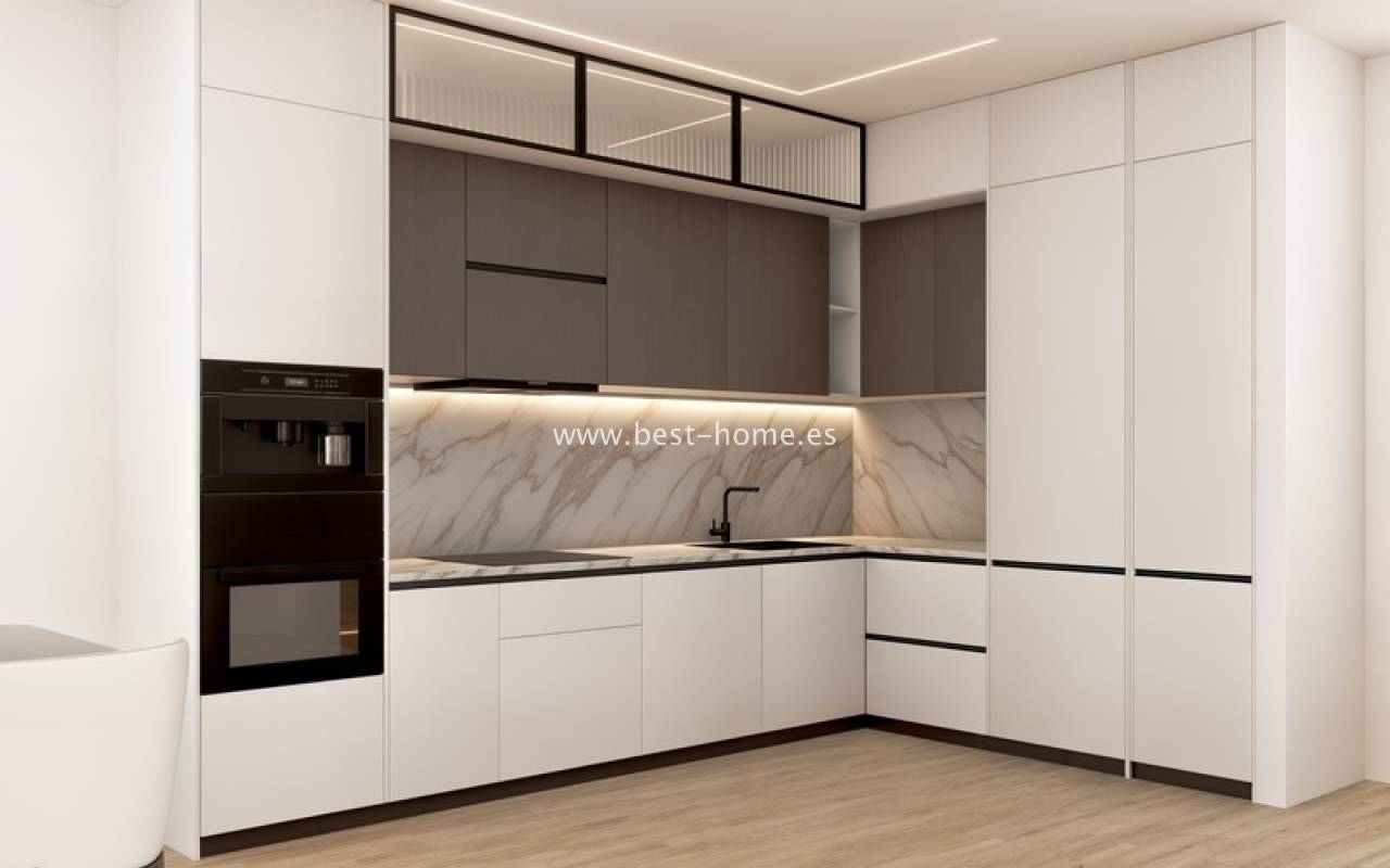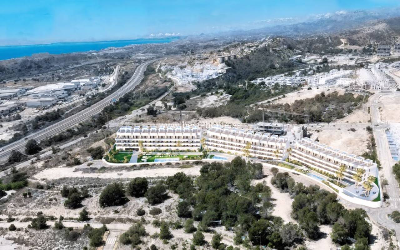 Nowe atrakcyjne osiedle składają się z 99 apartamentów budowane jest w świetnej lokalizacji w Finestrat. Dostępne są przestronne apartamenty z 2 sypialniami, 2 łazienkami i umeblowaną kuchnią połączona z jadalnią i salonem. Z głównej sypialnia i salonu będzie wyjście na taras (21 m2), z którego będą widoki na części wspólne, baseny, wieże w Benidorm i morze. W cenie zabudowa kuchenna, kompletne łazienki, oświetlenie LED, centralna klimatyzacja ciepło/zimno. Na terenie zamkniętego i kamerowanego osiedla odnajdziemy 3 baseny, zewnętrzną siłownię, boisko do gry w padel oraz dla place zabaw dla dzieci. Do centrum handlowego jest zaledwie 1,2 km, a do plaży 3 km.
