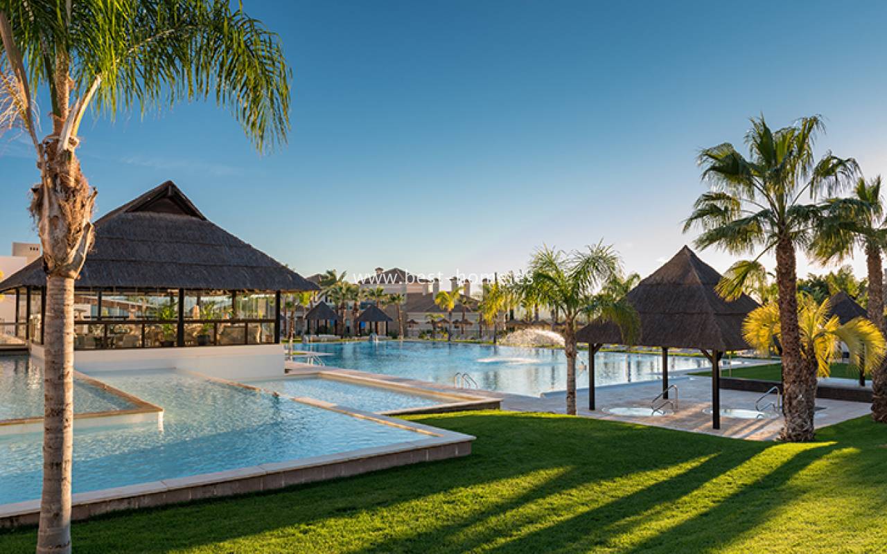 Nowe, fantastyczne wille budowane są na zamkniętym resorcie golfowym Hacienda del Alamo. Dostępnych jest 39 willi parterowych na działkach od 453 m2 do 717 m2. Domy o powierzchni 133 m2, składać się będą z korytarza wejściowego, głównej sypialni z łazienką en-suit, dwóch kolejnych sypialni, drugiej łazienki, pomieszczenia gospodarczego, przestronnego salonu i wysokiej, umeblowanej kuchni z wyspą i jadalnią. Ze wszystkich pokoi będzie wyjście na taras i do ogrodu. W cenie zabudowa kuchenna wraz ze sprzętem AGD, centralna klimatyzacja ciepło/zimno, kompletne łazienki i prywatny basen 2,6x6m. Zewnętrznymi schodami dostaniemy się na solarium/taras na dachu o powierzchni 66 m2. Na terenie resortu jest centrum sportowe, hotel 4 gwiazdkowy, wiele restauracji i barów.