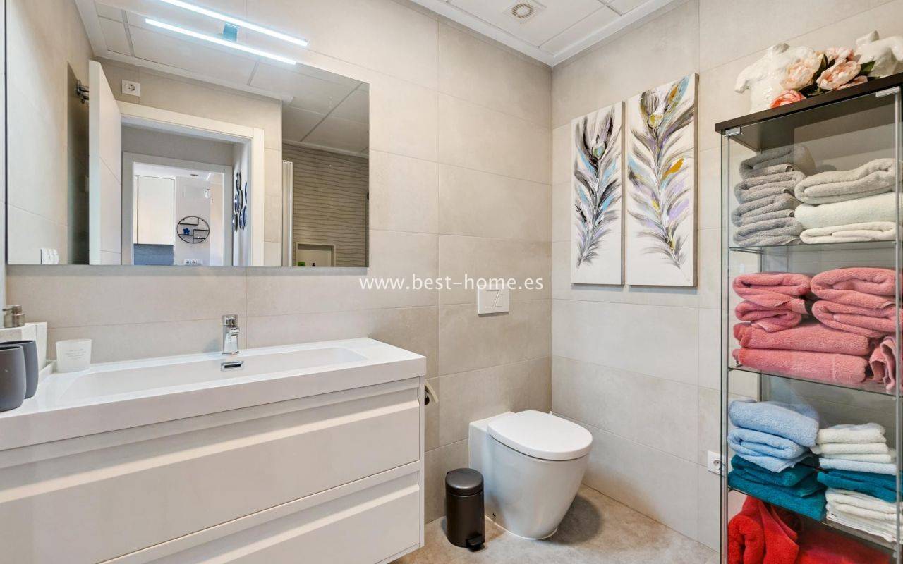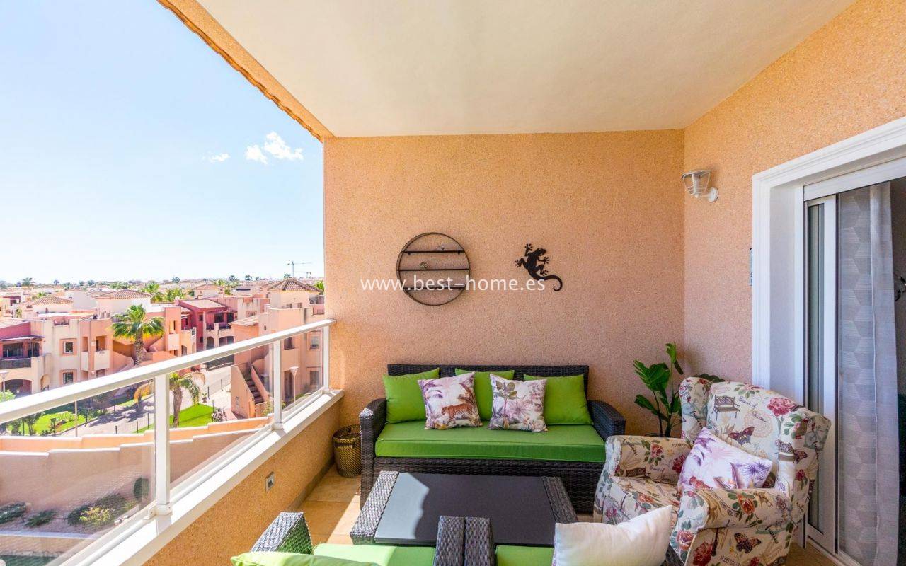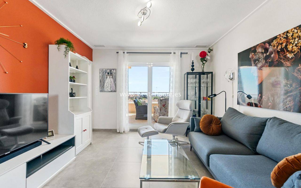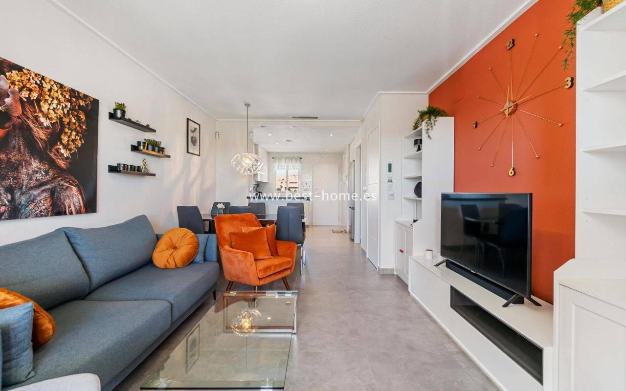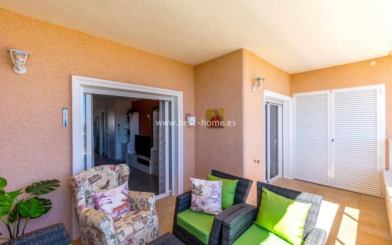 Atrakcyjny apartament położony jest na zamkniętym osiedlu w Punta Prima. Nieruchomość jest na 2 piętrze, składa się z dwóch sypialni, dwóch łazienek, umeblowanej kuchni kuchni połączonej z jadalnią i salonem. Z salonu i głównej sypialni jest wyjście na taras, z którego jest otwarty widok na osiedle i morze. W cenie umeblowanie, sprzęt AGD, centralna klimatyzacja, podgrzewane podłogi w łazienkach oraz miejsce parkingowe. Na terenie osiedla są dwa baseny, w tym jeden z podgrzewaną wodą, sauna, plac zabaw dla dzieci i boisko do gry w bule.