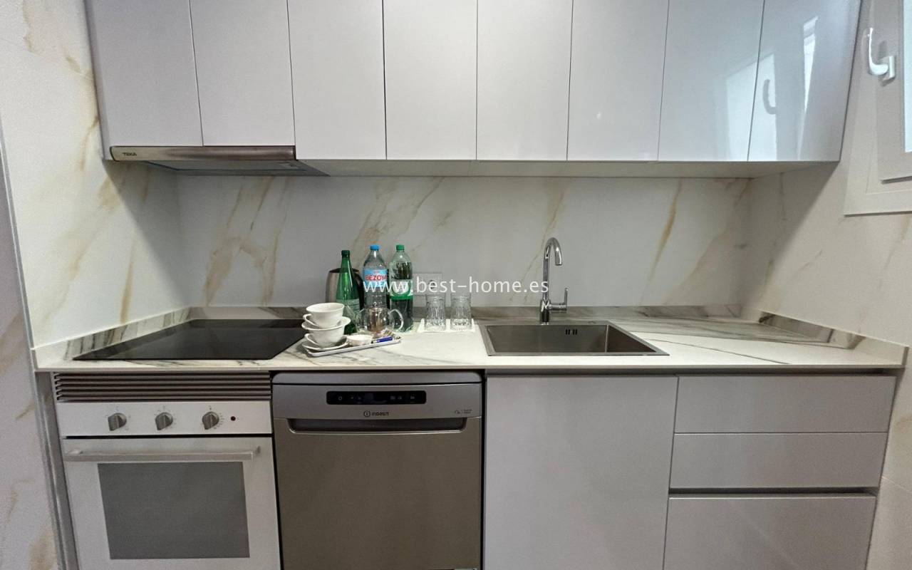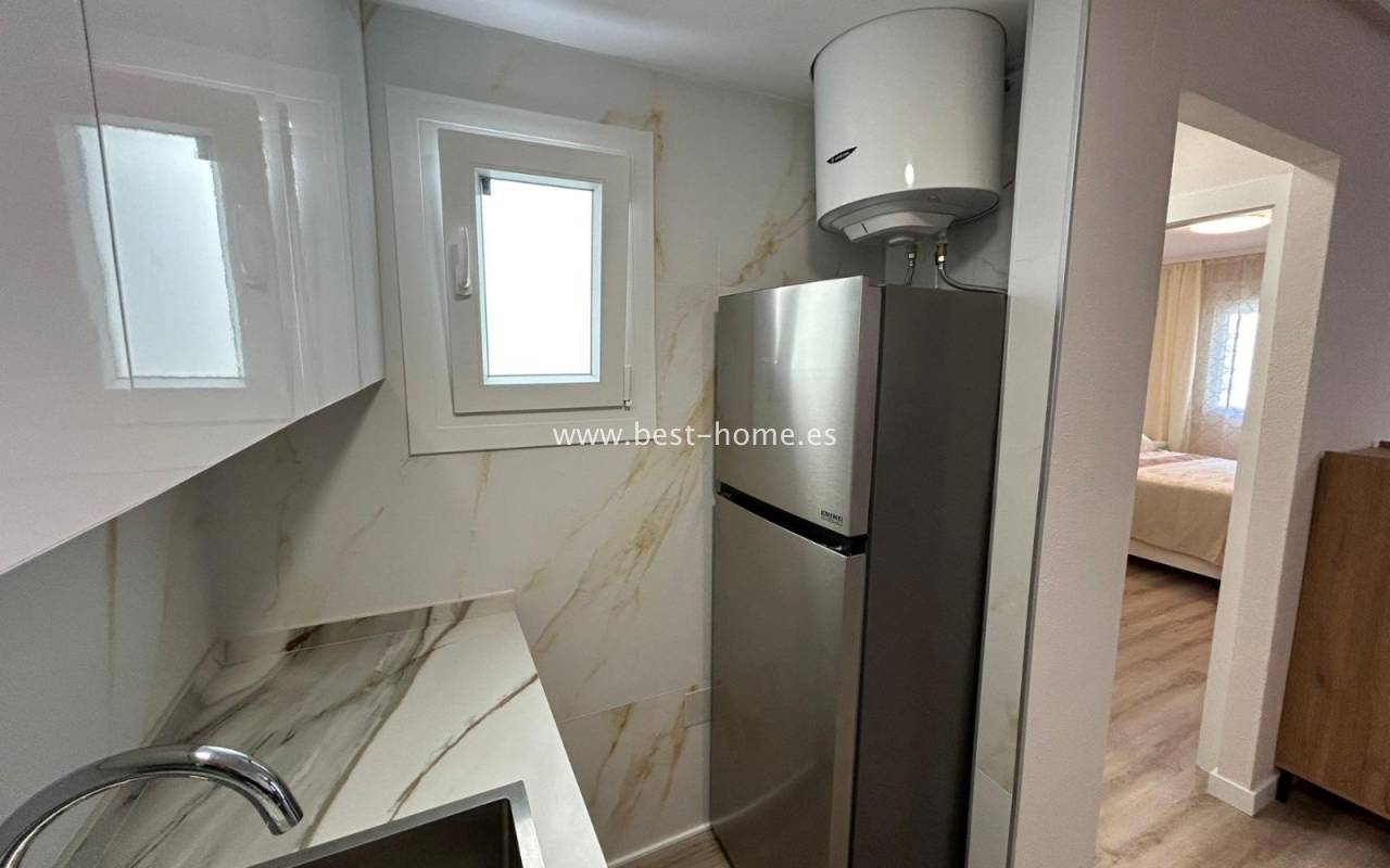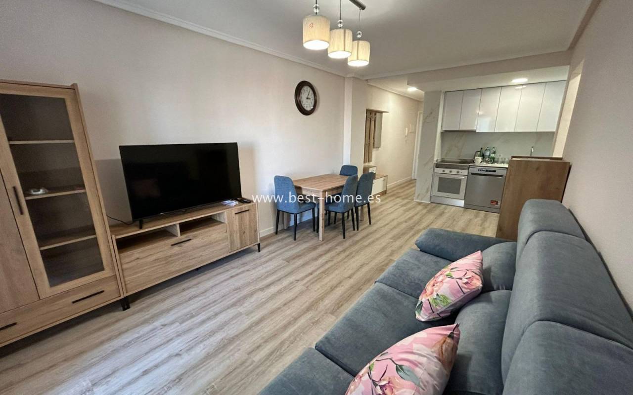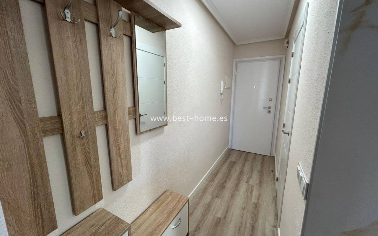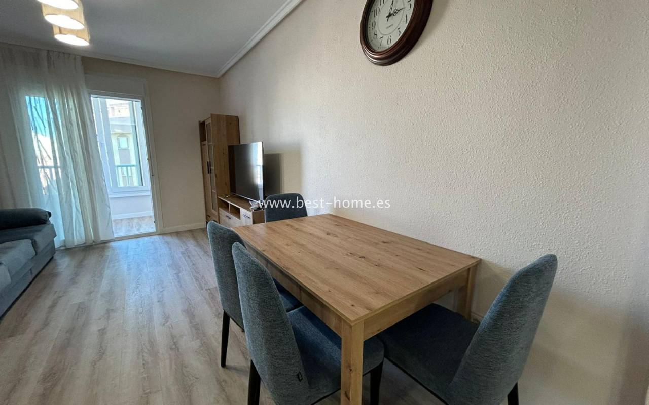 Ładnie urządzony apartament z widokiem na park Nacional w Torrevieja. Posiada jasny salon z wyjściem na zamknięty taras, kuchnię wyposażoną w sprzęt AGD, 2 dwuosobowe sypialnie, w tym główna z zabudowaną szafą, łazienkę. Mieszkanie jest umeblowane i wyposażone w sprzęt AGD. W pobliżu nieruchomości znajdziemy park, sklepy, apteki, dużą ilość restauracji oraz port jachtowy.