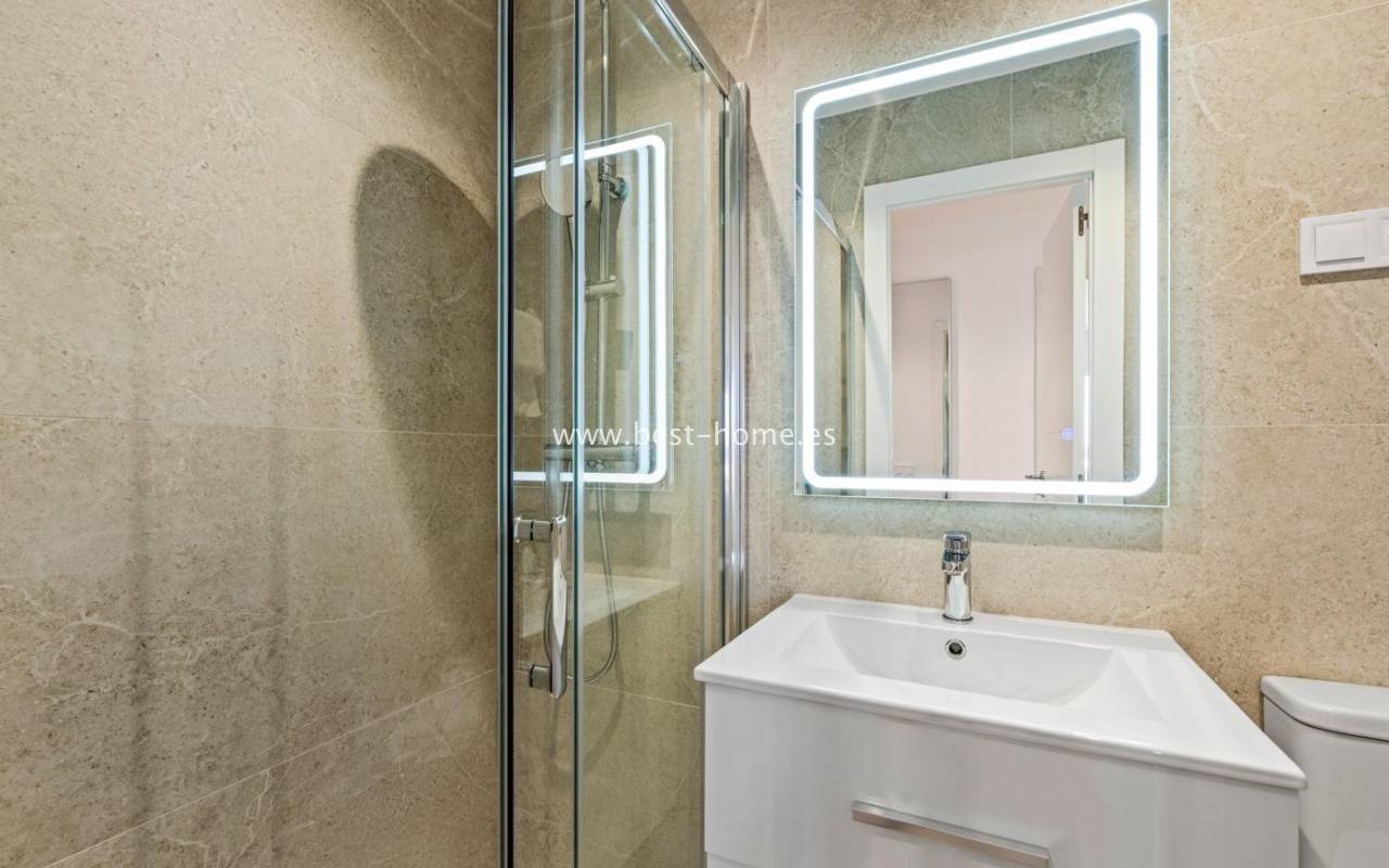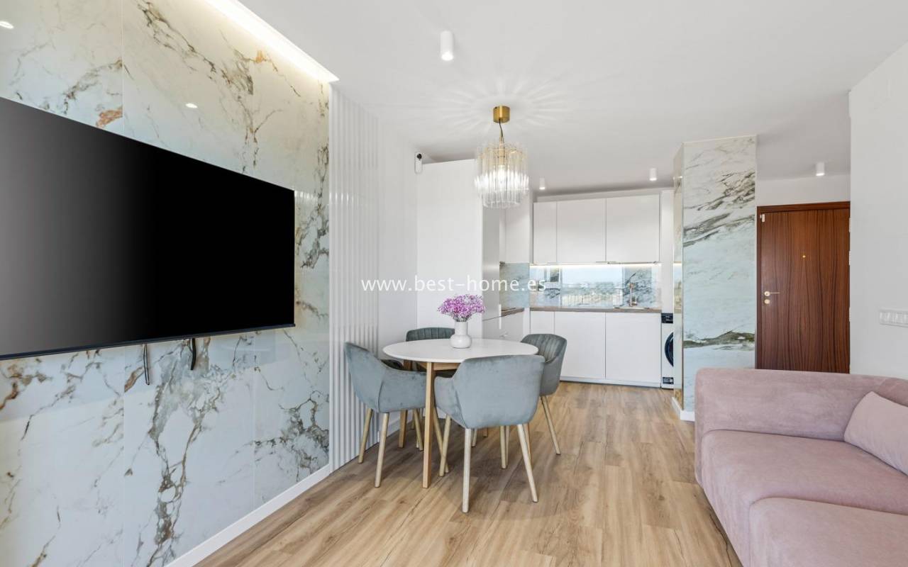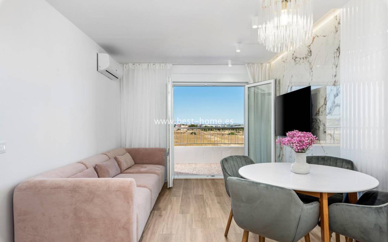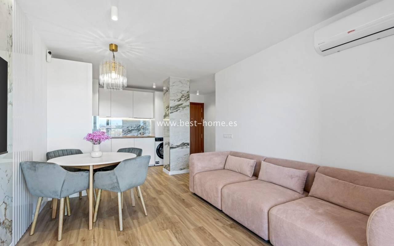 Fantastyczny apartament, całkowicie odnowiony, dobrzez zaaranżowany z widokiem bocznym na morze w Punta Prima. Posiada salon z wyjściem na duży taras, z którego rozciąga sie boczny widok na morze, otwartą kuchnię do salonu wyposażoną w sprzęt AGD, 2 dwuosobowe sypialnie i łazienkę. Mieszkanie jest po remoncie, wyposażone w klimatyzacje i sprzedawane wraz z mebalami. Idealne pod najem wakacyjny lub długoterminowy. Na terenie osiedla znajduje sie basen przeznaczony dla mieszkańców. W pobliżu znajdziemy dużą ilość restauracji, pubów, kawiarni i cukierni.