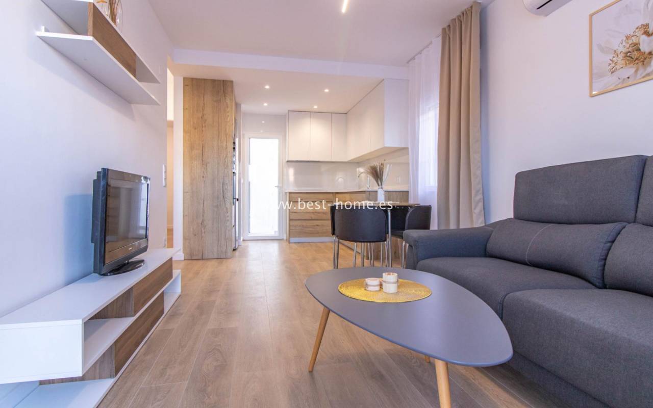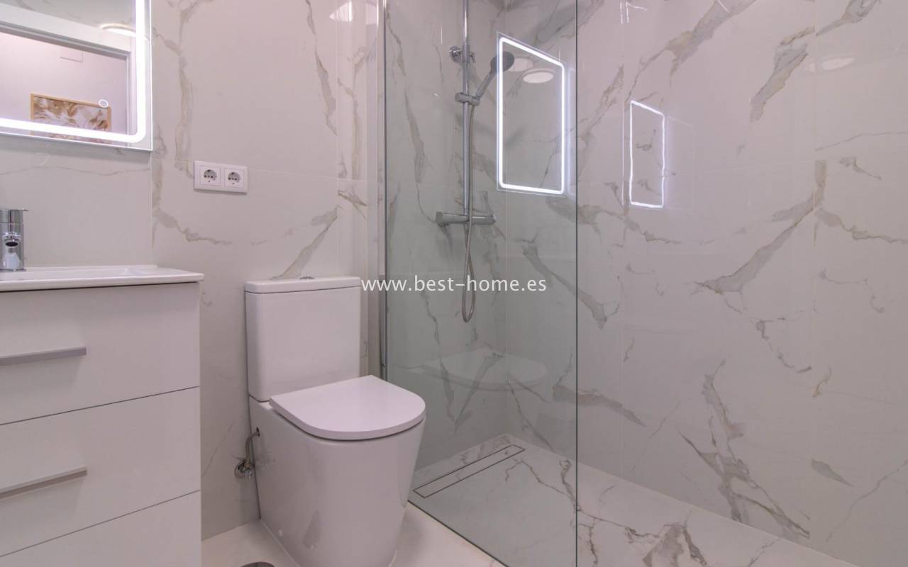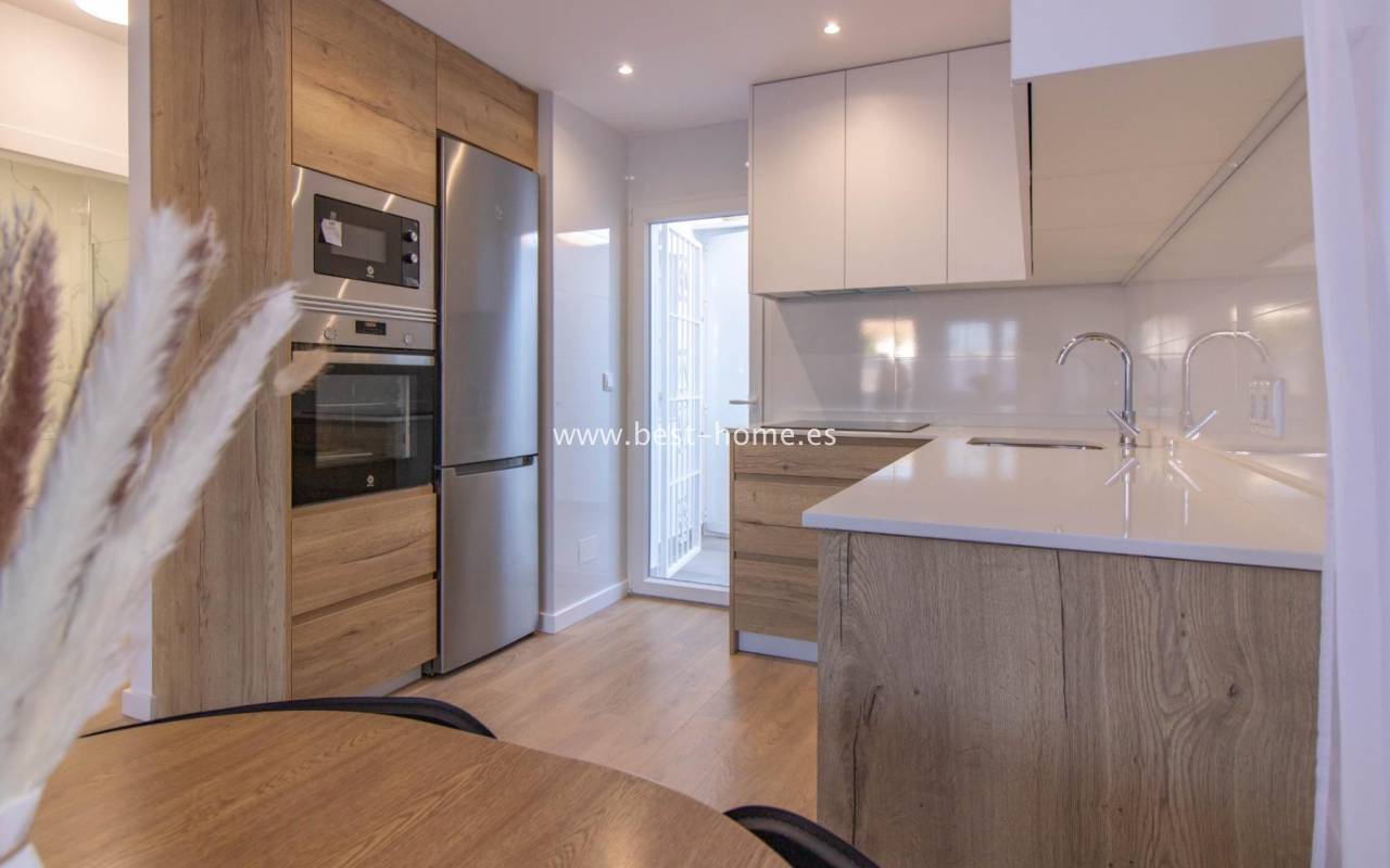Parterowy bungalow z dużym prywatnym ogrodem w spokojnej, cichej urbanizacji El Chaparral w Torrevieja. Przez ogród i zewnętrzny taras dostaniemy się do środka mieszkania, gdzie znajdzuje się salon, jadalnia, otwarta kuchnia do salonu wyposażona w nowoczesny sprzęt AGD, 2 sypialnie, w tym główna dwuosobowa z wbudowaną szafą, odnowiona łazienka z kabiną natryskową. Z kuchni wyjdziemy dodatkowo na patio z letnia kuchnia, gdzie znajdziemy miejsce do grillowania i stworzenia małego ogrodu. Mieszkanie jest ładnie zaaranżowane, przestronne, wyposażone w klimatyzację i sprzedawane wraz z meblami. Orientacja nieruchomości na wschód zapewnia, że bungalow otrzymuje światło słoneczne wczesnym rankiem, zapewniając przyjemną jasność we wszystkich pokojach. Idealna nieruchomość dla osób, które szukaja własnej prywatnej przestrzeni, spokojnego miejsca i dużo udogodnień blisko osiedla.