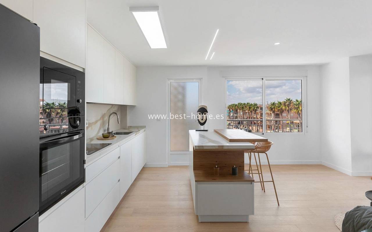 Fantastyczna nieruchomość w I linii brzegowej położona przy Playa de los Náufragos z ogromnym basenem i widokiem na morze. Mieszkanie nowocześnie wyremontowane z dobrej jakości materiałów. Posiada jasny przestronny salon z którego wychodzimy na ogromny ładnie zaaranżowany taras o powierzchni 20 m², następnie znajdziemy 3 dwuosobowe sypialnie, 2 łazienki i kuchnię z wyspą zaprojekowaną przez architekta, wyposażoną w dobrej jakości sprzęt AGD, integruje się z jasnym salonem, który jest klimatyzowany, aby zapewnić komfortowe środowisko przez cały rok. Światła iluminatorowe w korytarzu i salonie dodają przestrzeni odrobinę wyrafinowania i ciepła.