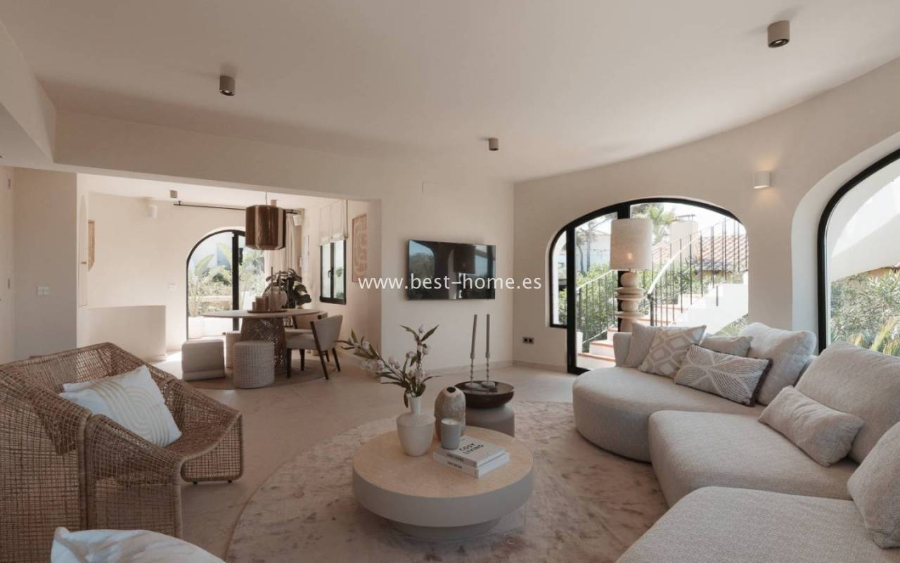 Luksusowa, gotowa do zamieszkania willa położoną w prestiżowej dzielnicy Balcón al Mar w Jávea. Całkowicie odnowiona i umeblowana nieruchomość łącząca w sobie nowoczesną elegancję z najwyższym ekskluzywnym komfortem. Z rezydencji roztacza się wspaniały widok na Montgó, dolinę i morze, idealna, aby korzystać ze słońca przez cały rok, dzięki licznym tarasom i starannie zaprojektowanym przestrzeniom zewnętrznym.