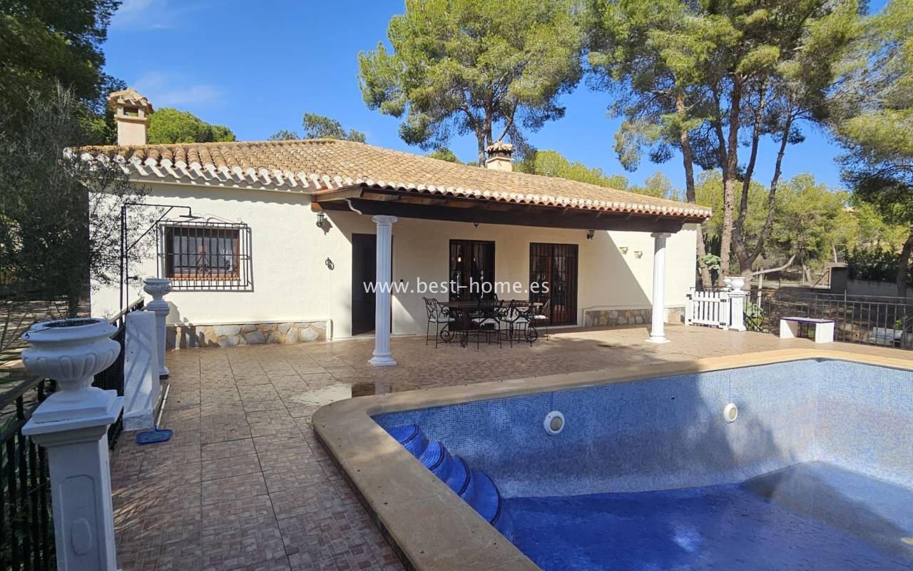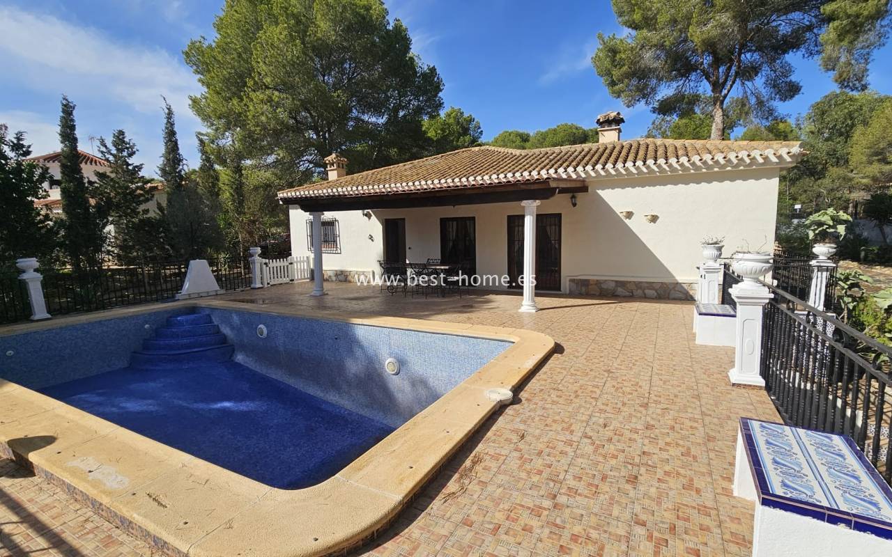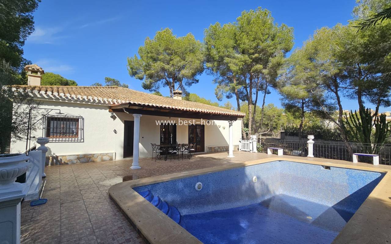 Parterowa willa posiada przestronny i jasny salon z jadalnią i kominkiem, oddzielną, w pełni wyposażoną kuchnię z pomieszczeniem gospodarczym, trzy sypialnie i dwie łazienki. Sypialnia małżeńska posiada łazienkę en-suite i dużą garderobę. Na zewnątrz odnajdziemy wspaniały ogród z dojrzałą roślinnością, mnóstwo zakątków do wypoczynku, duży prywatny basen, a także miejsca parkingowe.