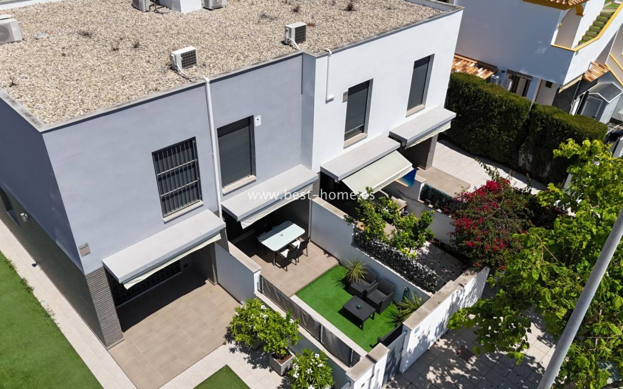 Szeregówka w Torre de la Horadada to idealne miejsce dla osób szukających komfortowego i spokojnego zakątka blisko morza. Nieruchomość oferuje dwie jasne sypialnie oraz jedną funkcjonalną łazienkę. Wnętrze zostało zaprojektowane z myślą o wygodzie codziennego życia, a dodatkowym atutem jest przytulny ogródek, który doskonale sprawdzi się jako przestrzeń do relaksu lub wspólnych posiłków na świeżym powietrzu. Dom położony jest w cichej, przyjaznej okolicy, zaledwie 750 metrów od piaszczystej plaży. W bezpośrednim sąsiedztwie znajdują się wszystkie niezbędne udogodnienia – sklepy, restauracje, kawiarnie oraz apteki – co sprawia, że jest to doskonałe miejsce zarówno na wakacyjny wypoczynek, jak i do całorocznego zamieszkania.