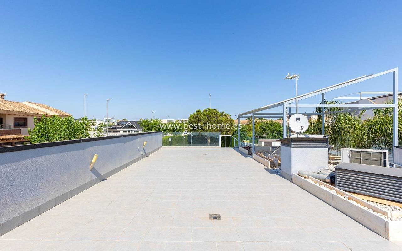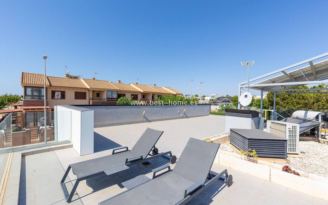Luksusowa narożna willa z solarium, malowniczym ogrodem, parkingiem, basenem osiedlowym w malowniczej miejscowości Pilar de la Horadada. Dom posiada jasny, przestronny salon, 3 sypialnie, w tym główna z łazienką i garderobą, 2 łazienki oraz duża kuchnię wyposażoną w sprzęt AGD, z której dostaniemy sie do pomieszczenia gospodarczego. Dodatkowo na samej górze otrzymamy duży taras/solarium o powierzchni 80m2 ze strefą wypoczynku i widokiem na okolicę. Willa posiada ogród ze sztuczna trawą, miejsce do grillowania, da miejsca parkingowe. Nieruchomość posiada panele słoneczne, dzięki którym staje się bardzo ekonomicznym miejscem. Na terenie osiedla znajduje sie basen, przeznaczony dla mieszkańców. Willa jest umeblowana, wyposażona w centralna klimatyzację. Idealne miejsce dla dużej rodziny w cichym, spokojnym miejscu pełnym zieleni i klimatu śródziemnomorskiego.
