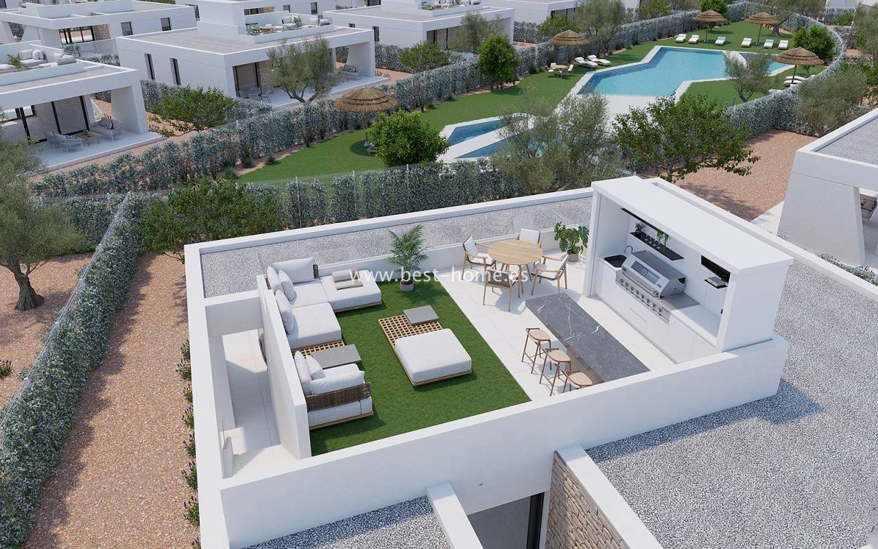 Nowe, fantastyczne wille budowane są na zamkniętym resorcie golfowym Hacienda del Alamo. Dostępnych sa 23 wille parterowe na działkach od 397 m2 do 556 m2. Domy o powierzchni 80 m2, składać się będą głównej sypialni z łazienką en-suit, dwóch kolejnych sypialni, drugiej łazienki, pomieszczenia gospodarczego i przestronnego salonu połączonego z jadalnią i umeblowana kuchnią. W cenie zabudowa kuchenna wraz ze sprzętem AGD, pre-instalacja centralnej klimatyzacji ciepło/zimno, kompletne łazienki, prywatny basen 3x6m oraz wykończony ogród. Zewnętrznymi schodami dostaniemy się na solarium/taras na dachu o powierzchni 33 m2. Na terenie resortu jest centrum sportowe, hotel 4 gwiazdkowy, wiele restauracji i barów.